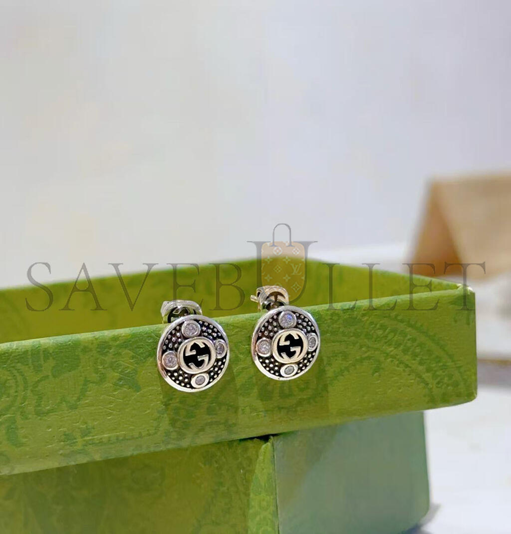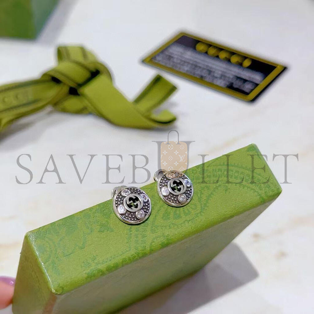 GUCCI DOUBLE C SILVER ROUND BUTTON EARRINGS