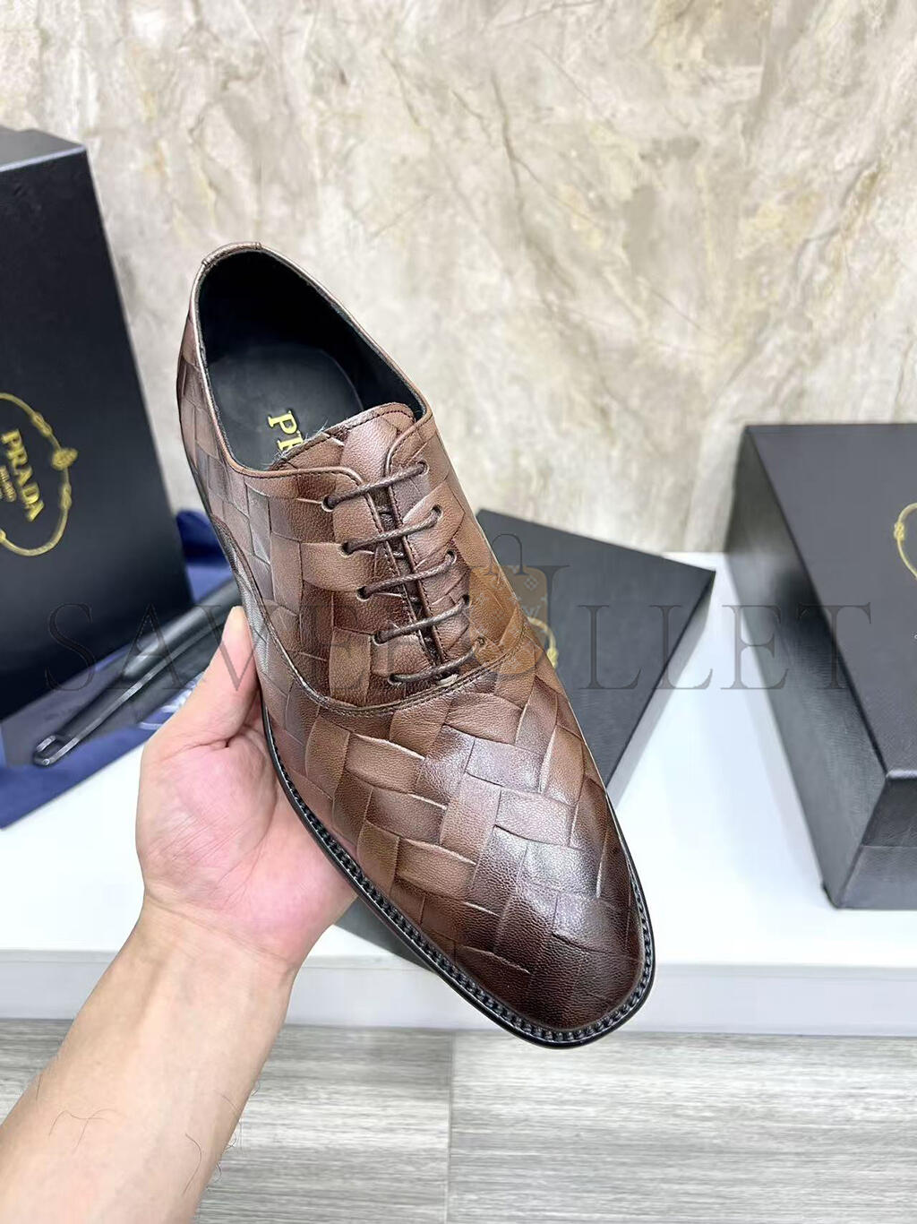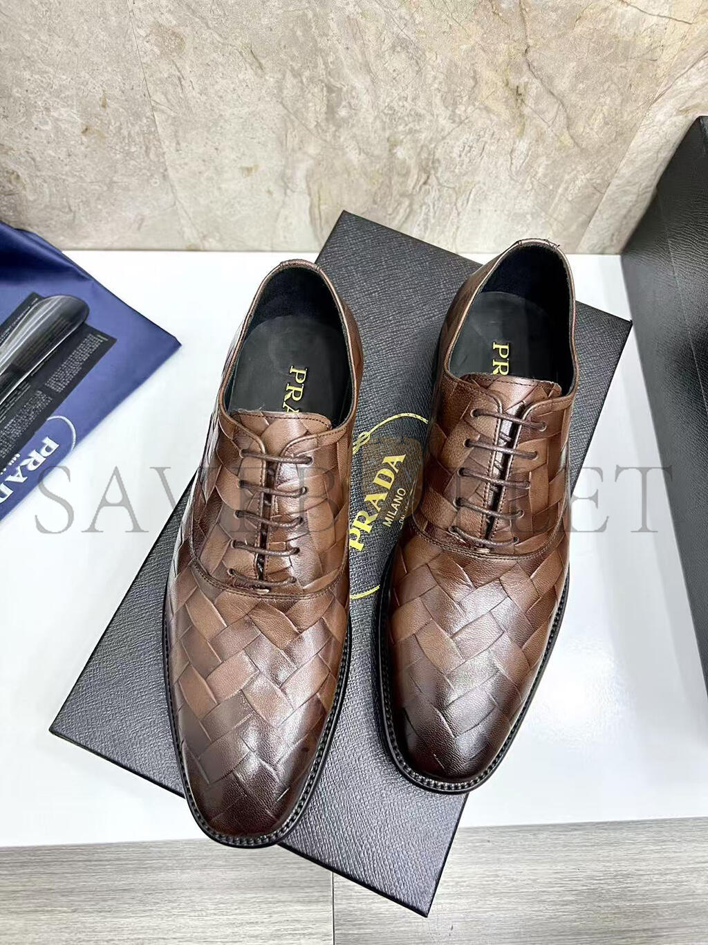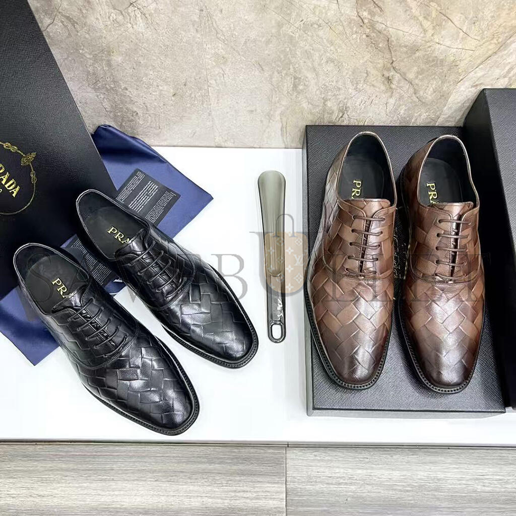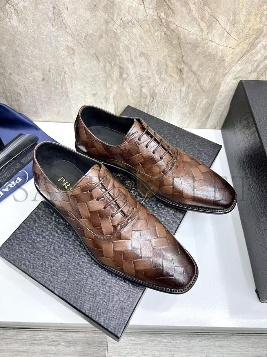 PRADA MEN'S BROWN WOVEN LEATHER SHOES