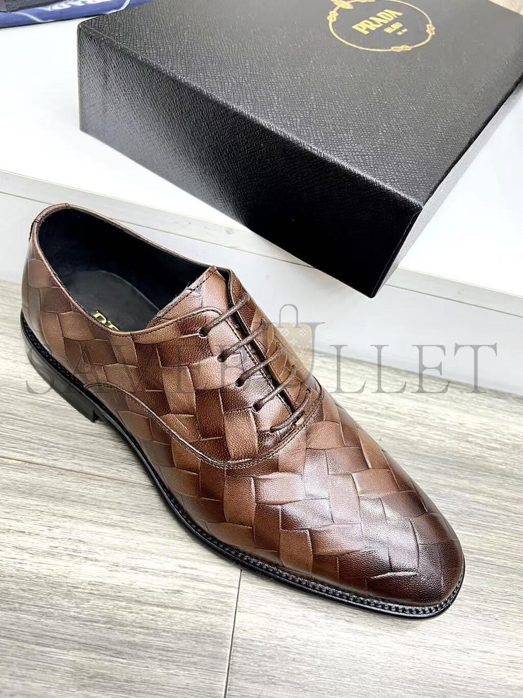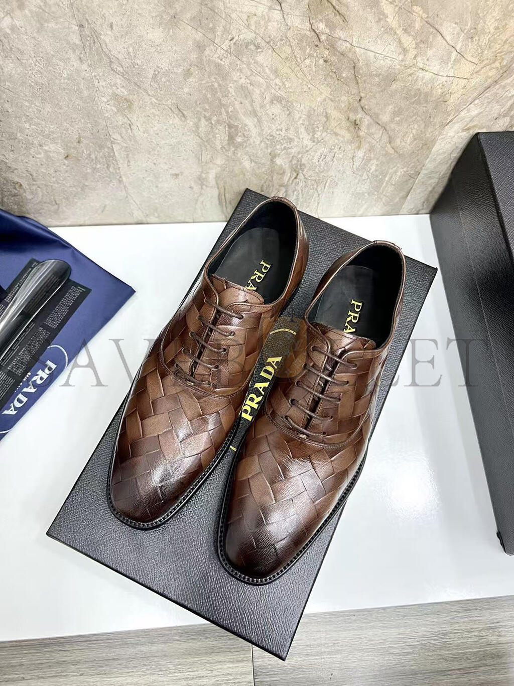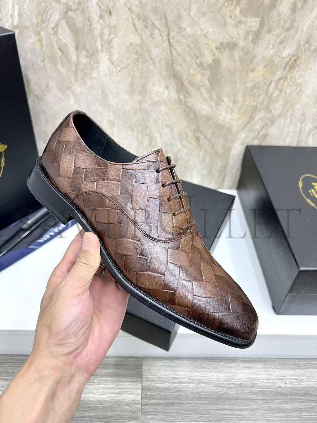 PRADA MEN'S BROWN WOVEN LEATHER SHOES