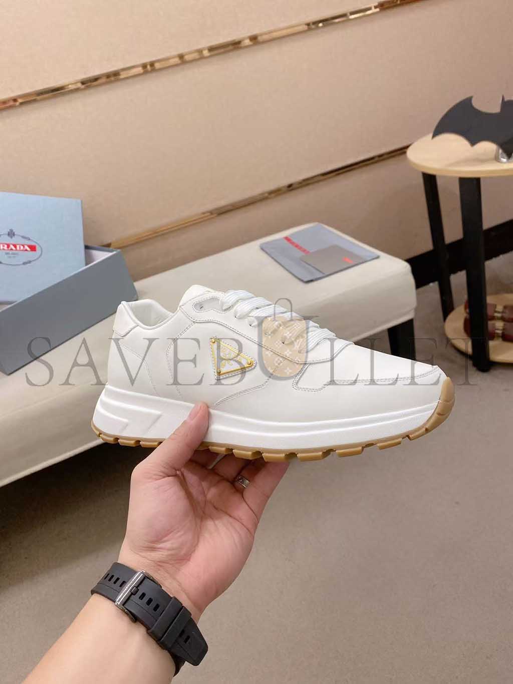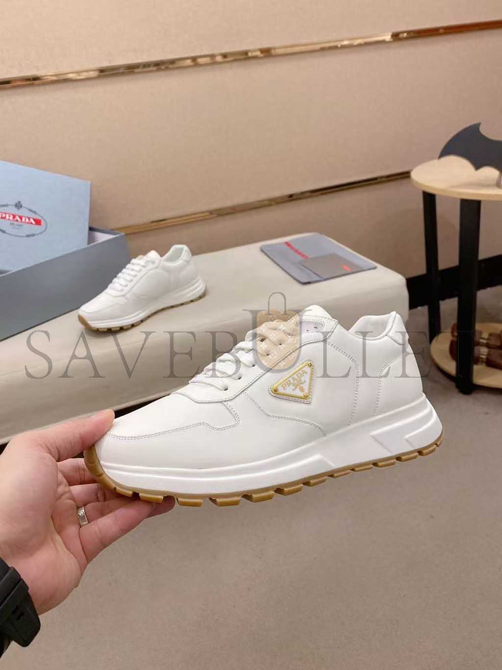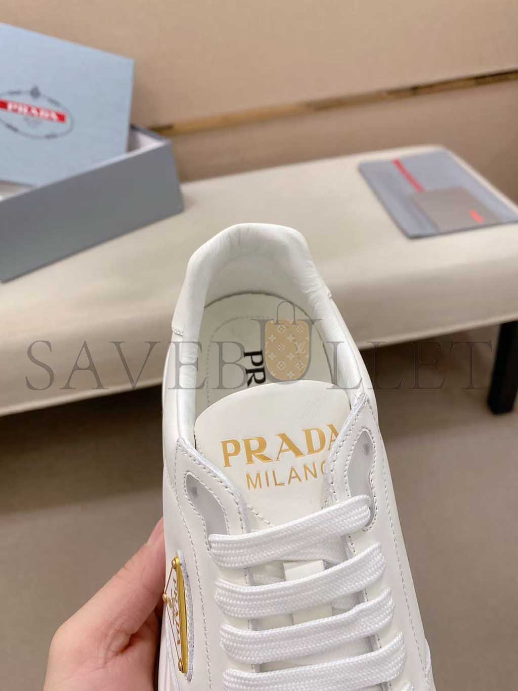 PRADA TRIANGLE-LOGO LEATHER SNEAKERS 1E804M