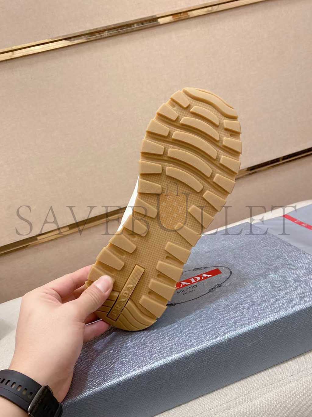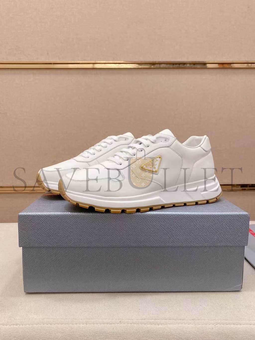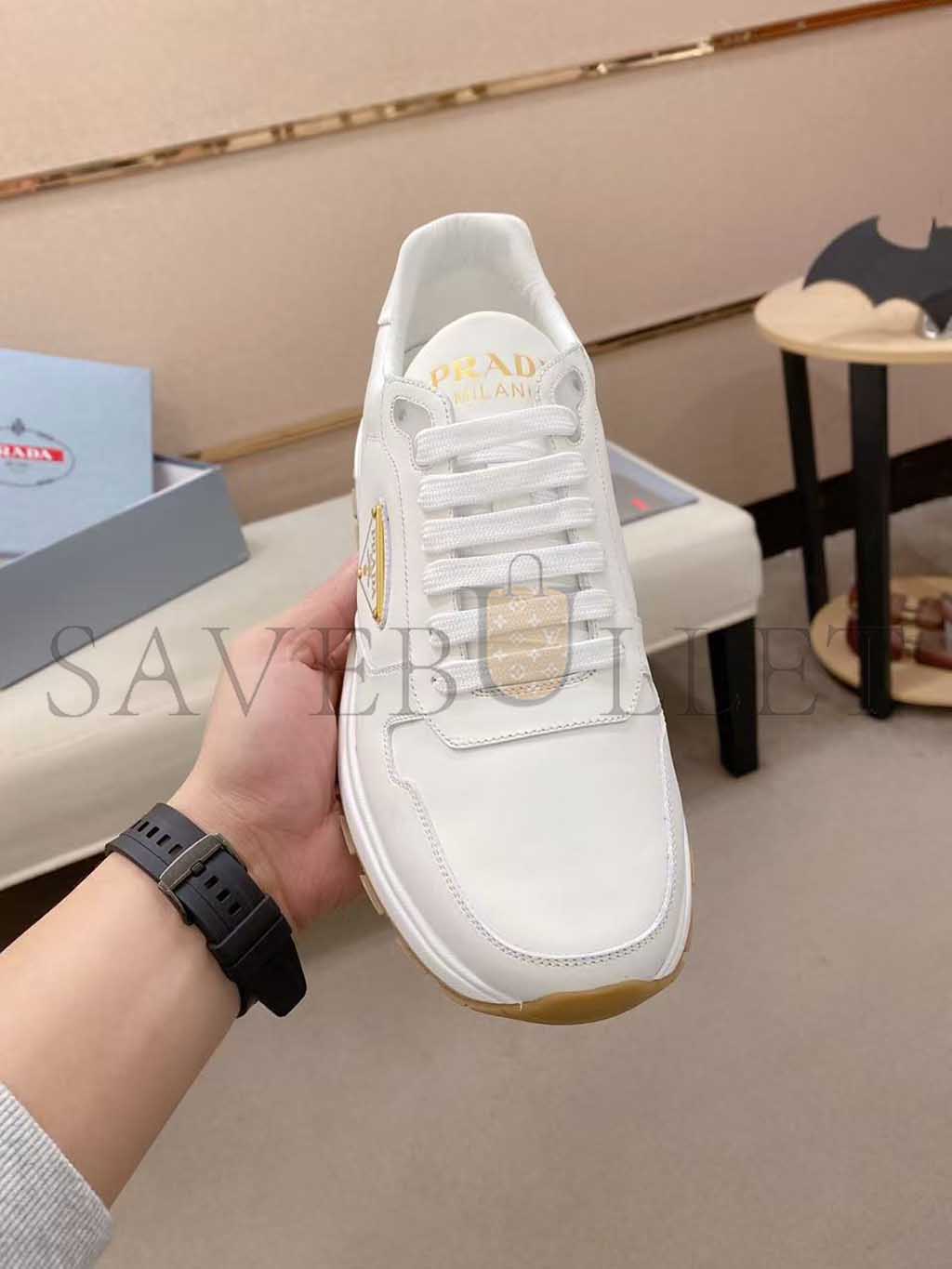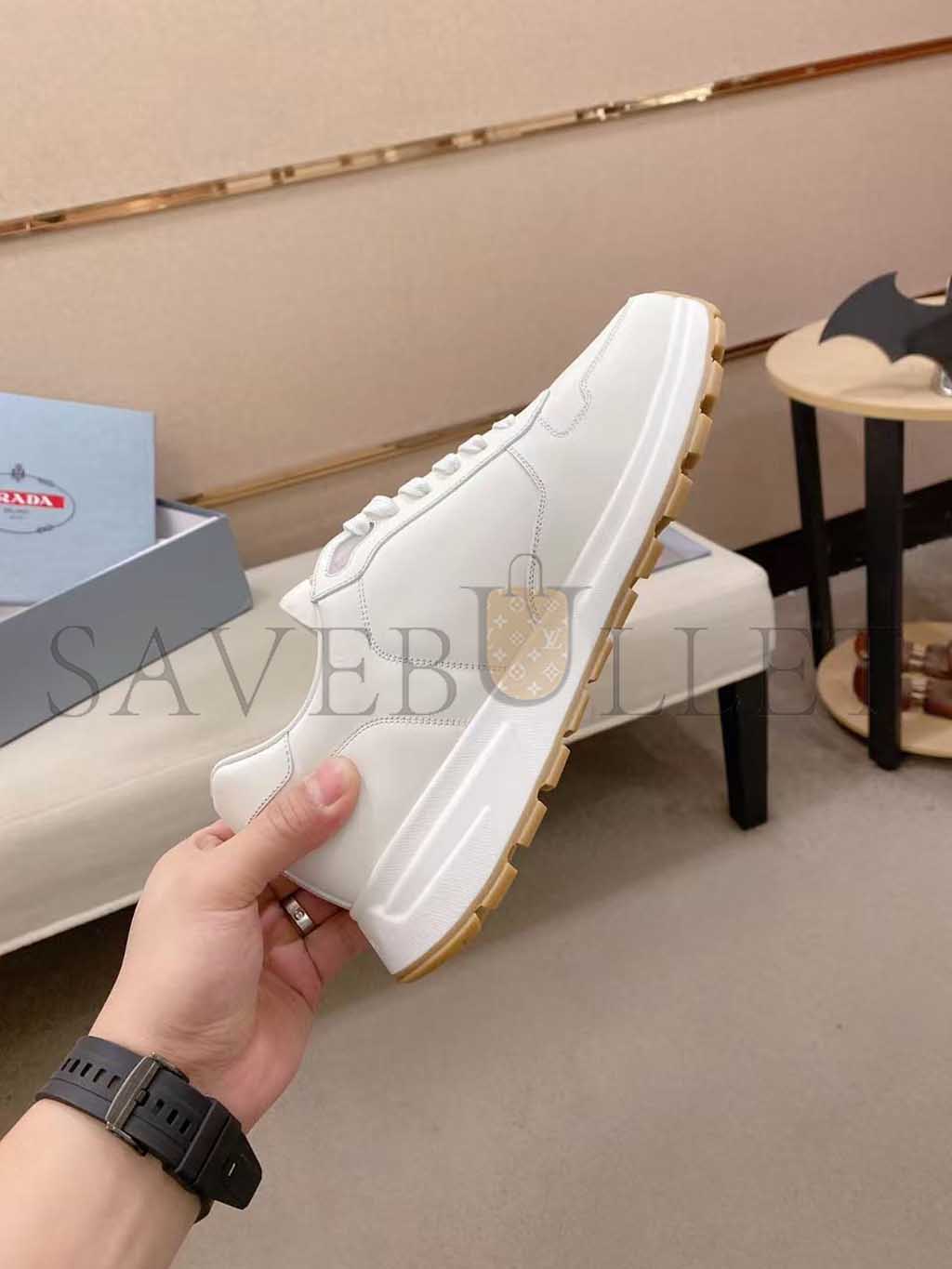 PRADA TRIANGLE-LOGO LEATHER SNEAKERS 1E804M