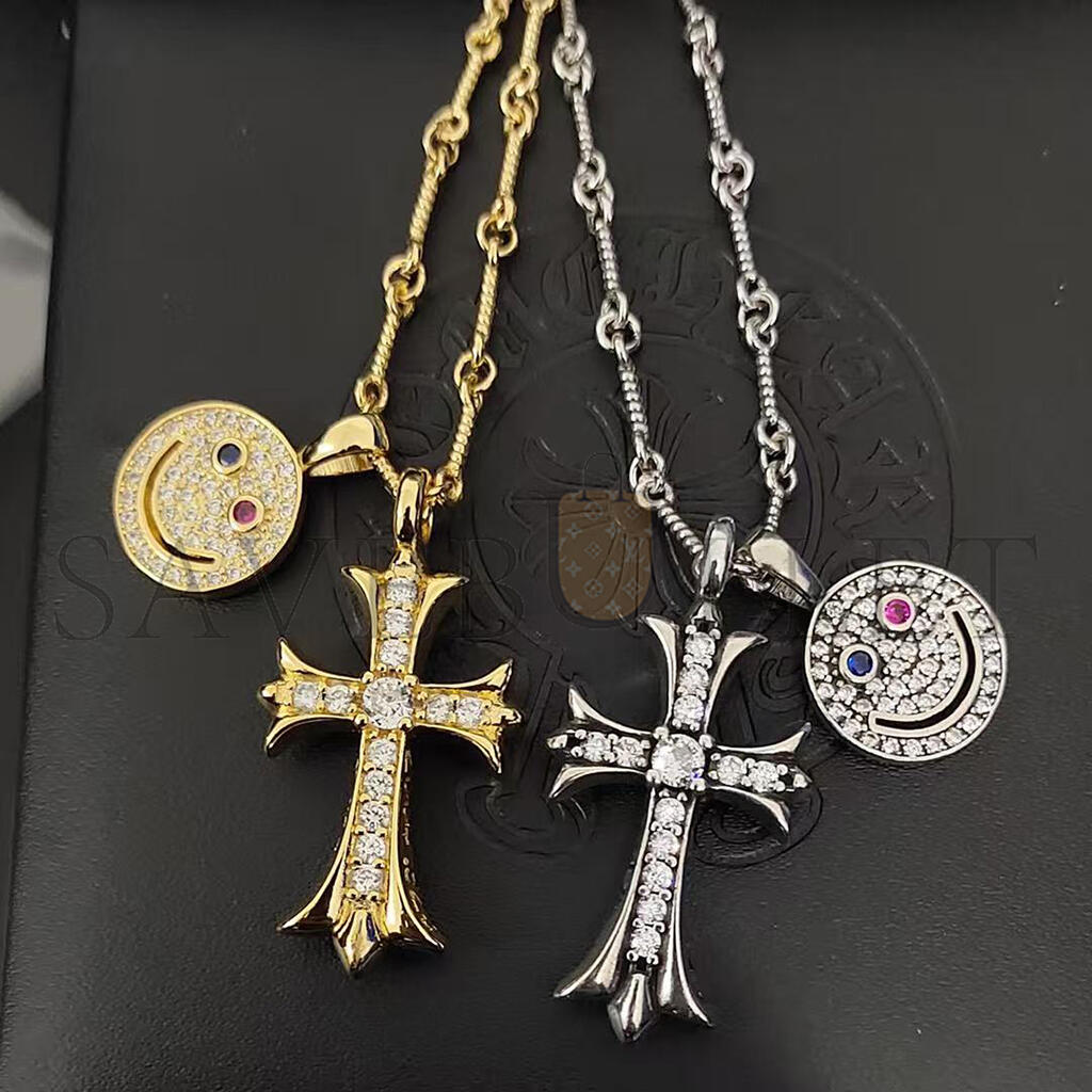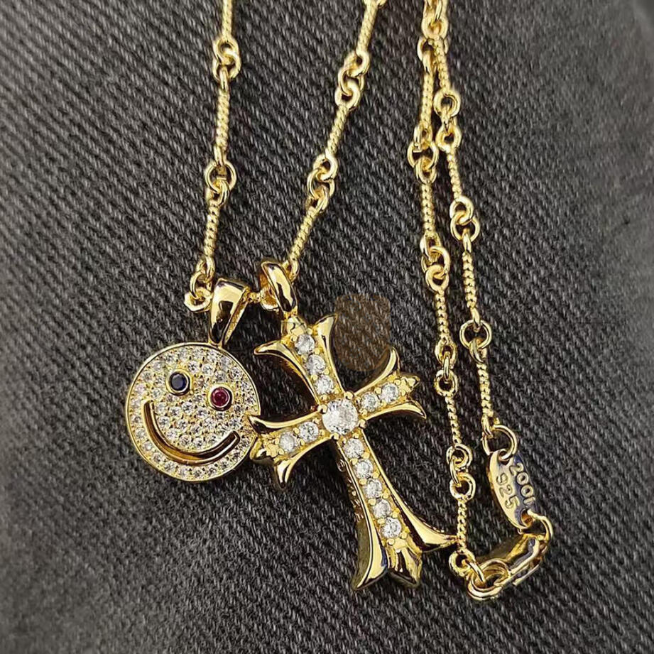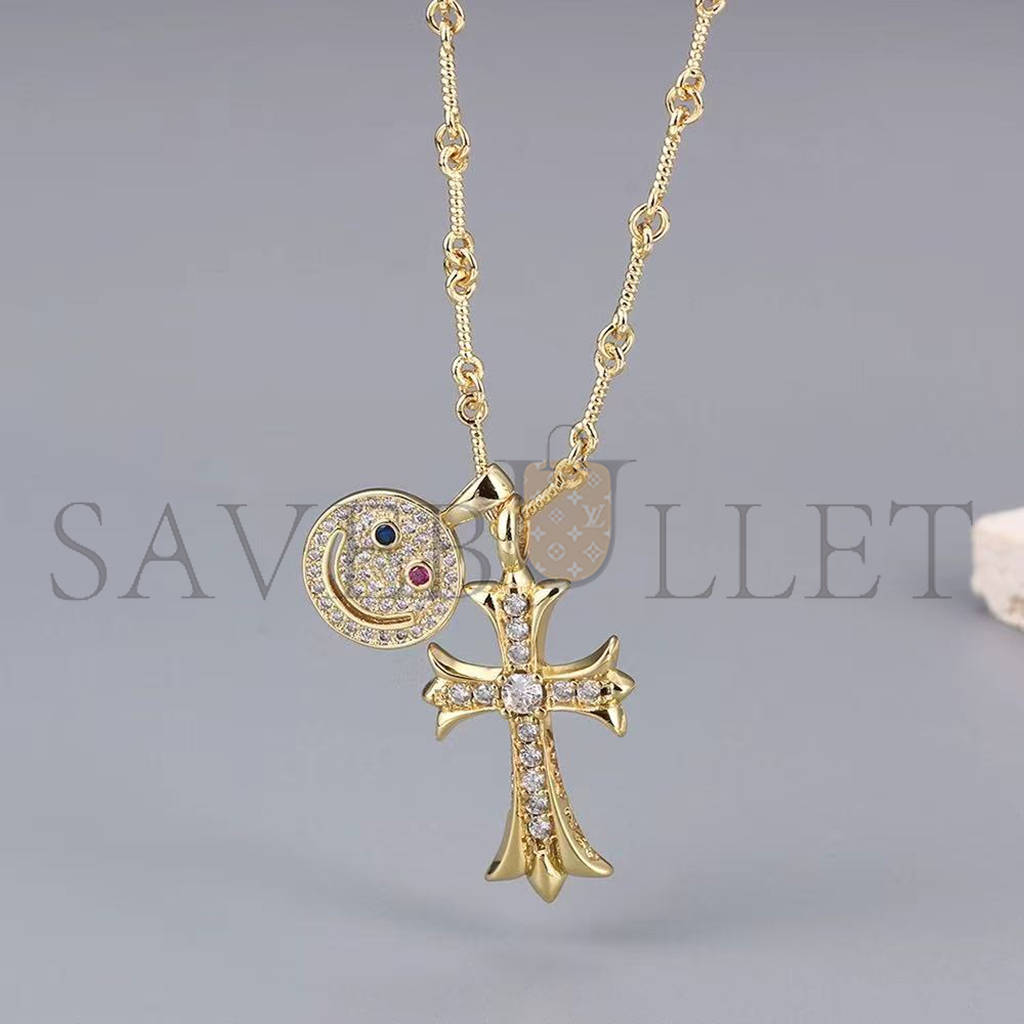CHROME HEART DIAMOND CROSS PENDANT NECKLACE GOLD SMILING HEART