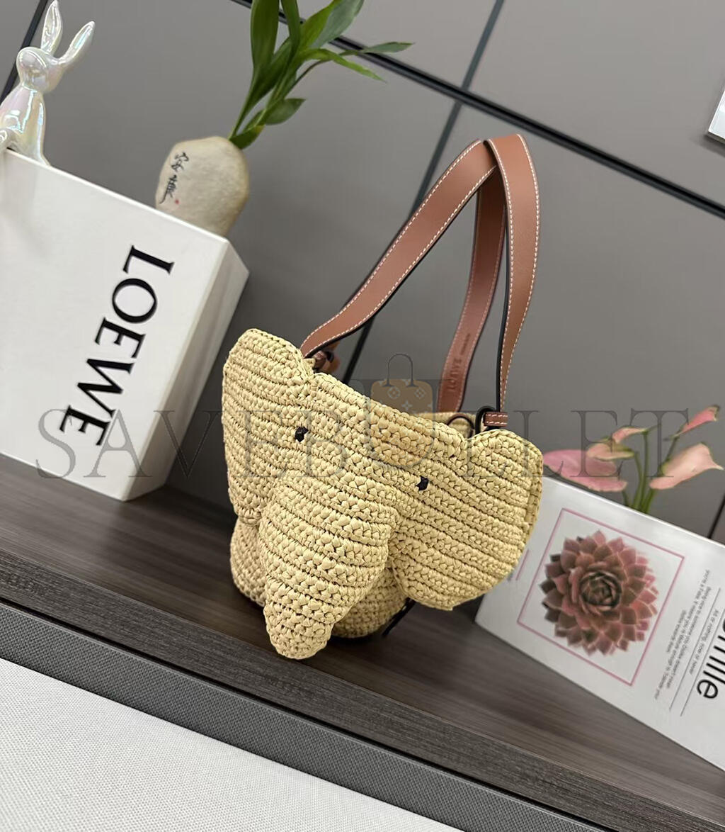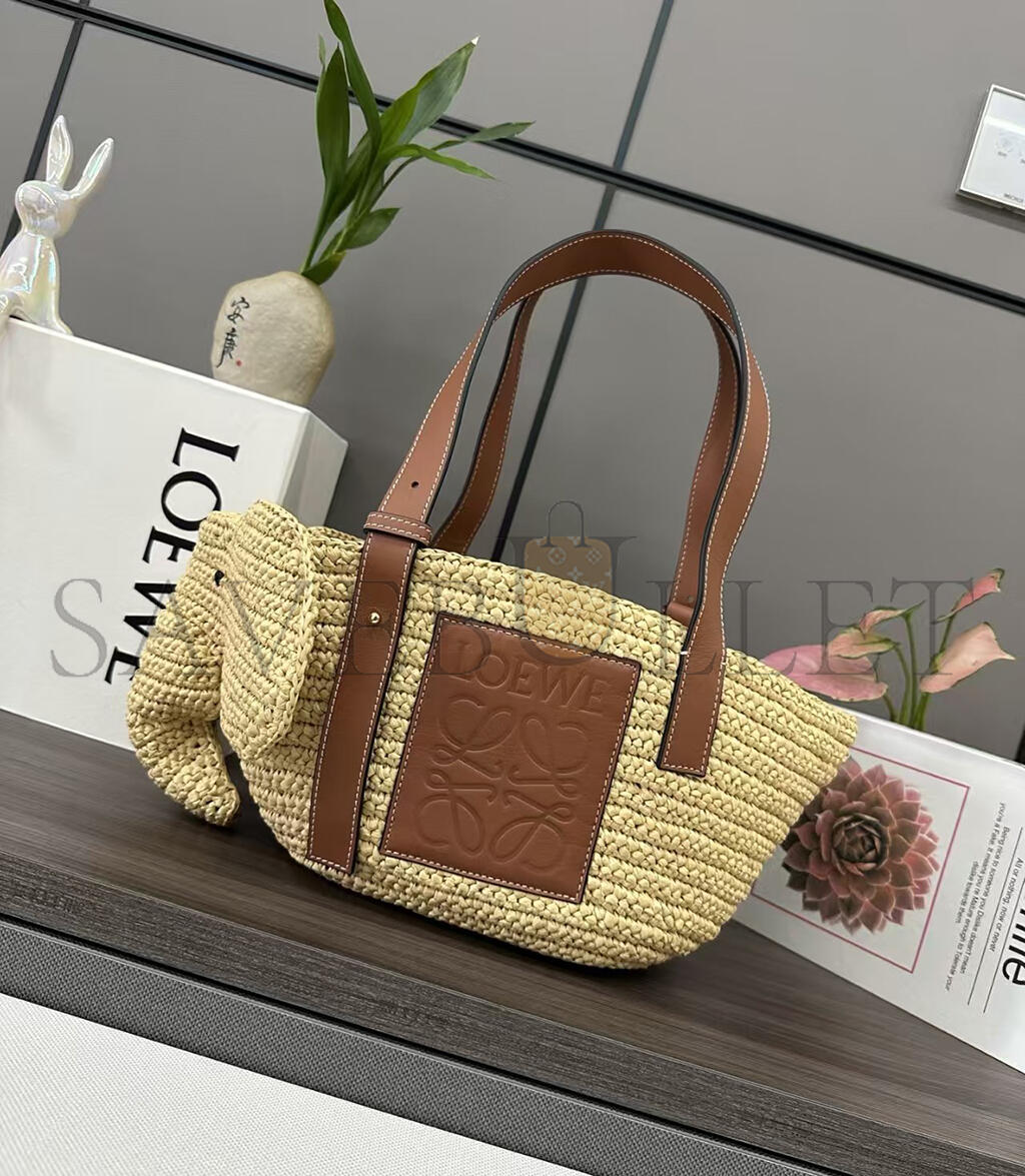 LOEWE SMALL ELEPHANT BASKET IN RAFFIA AND CALFSKIN A546T37X01 (35*17.5*17cm)