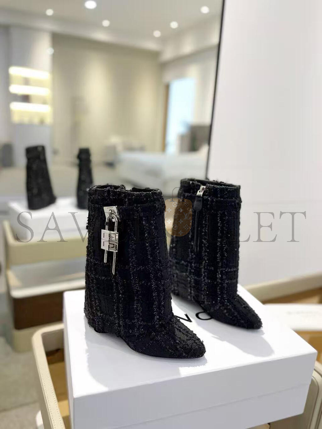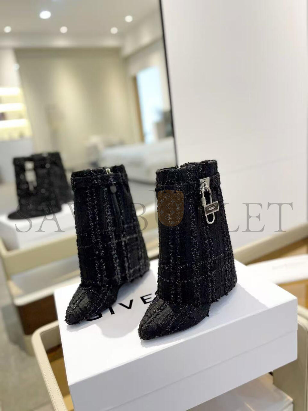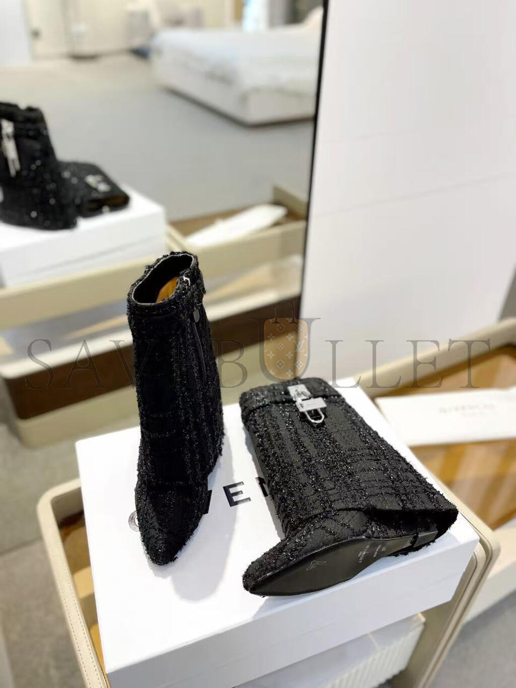 GIVENCHY SHARK LOCK ANKLE BOOTS IN TWEED BE603KE1QA