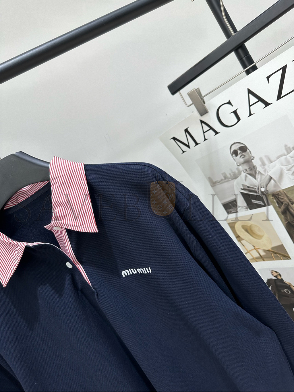 Striped poplin collar