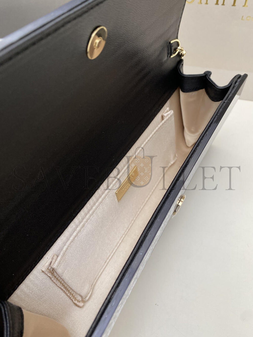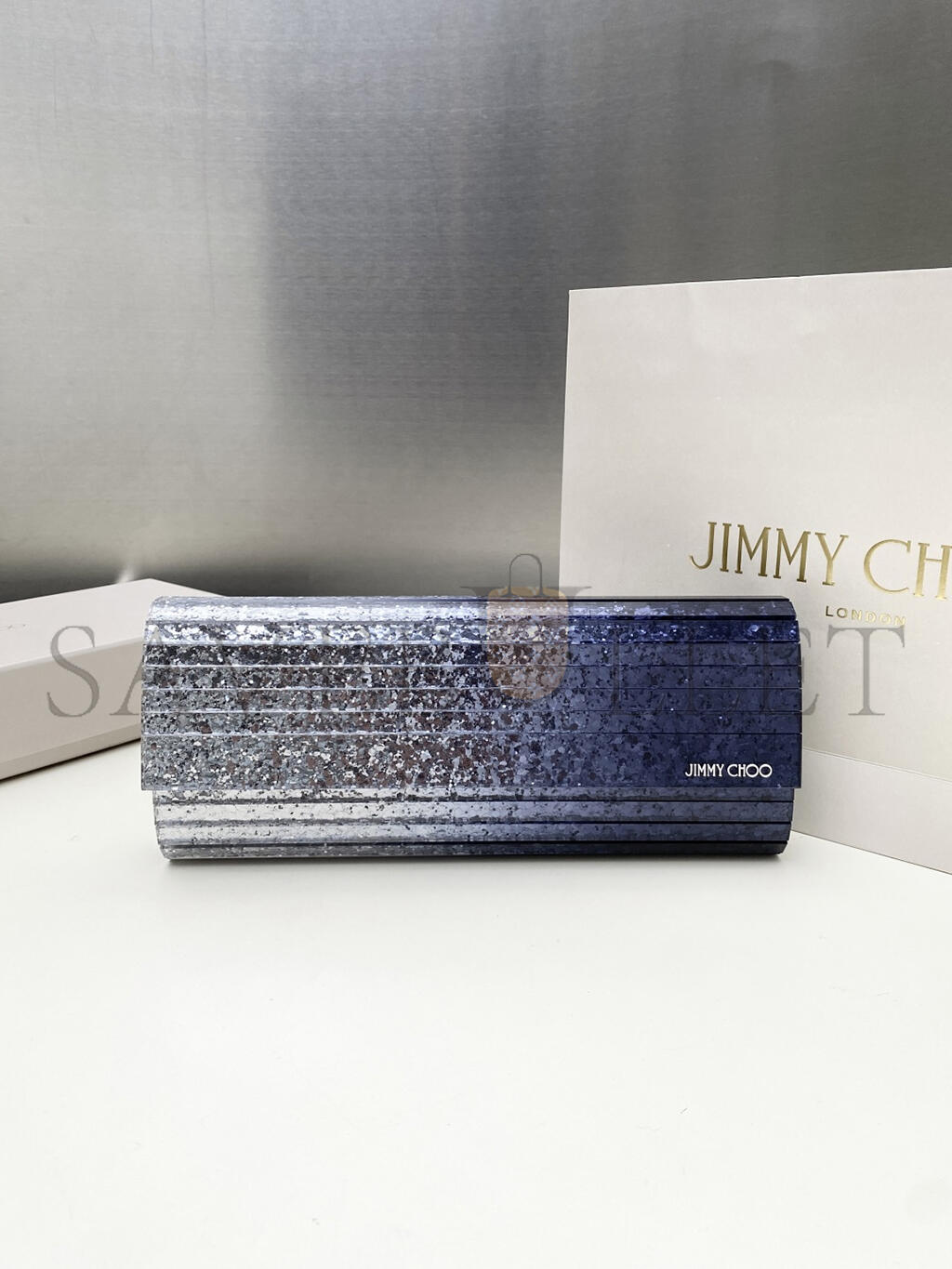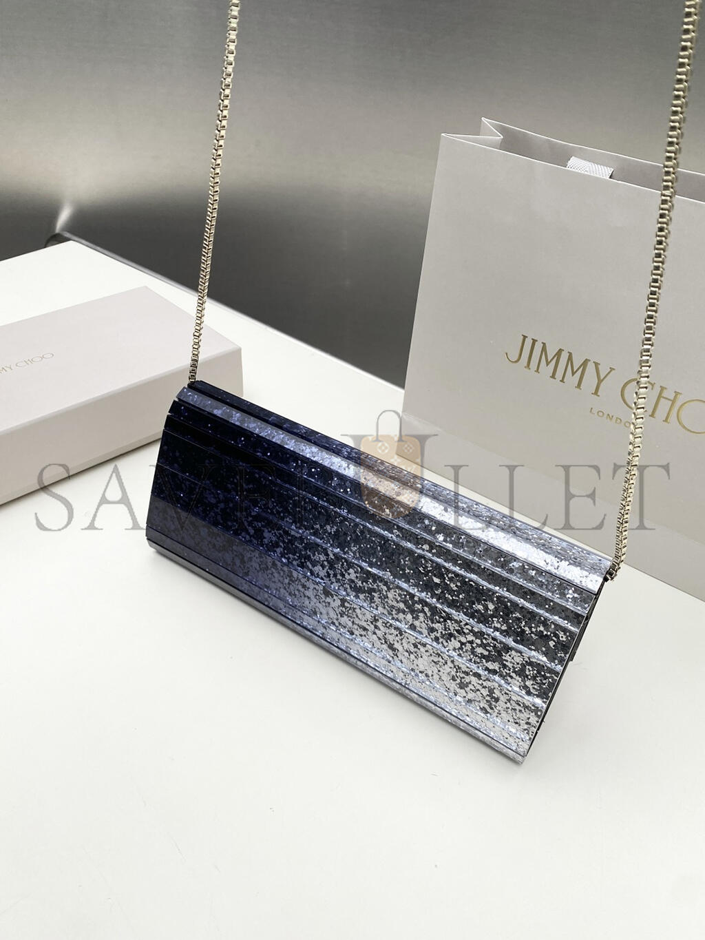 JIMMY CHOO SILVER & NAVY SWEETIE GLITTER CLUTCH (24*10*5cm)
