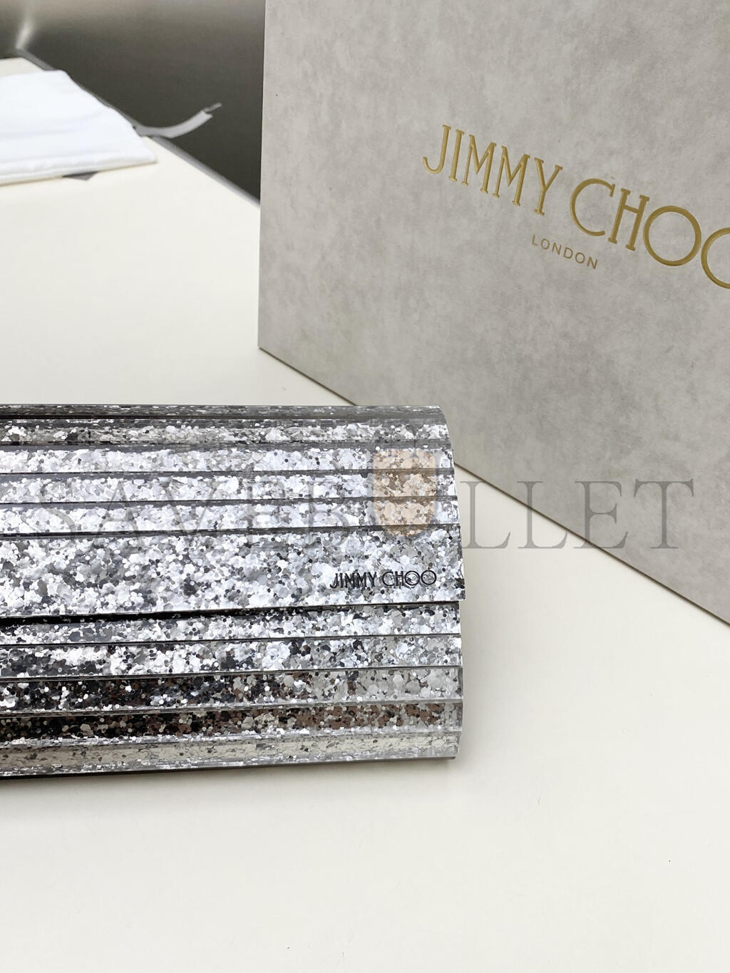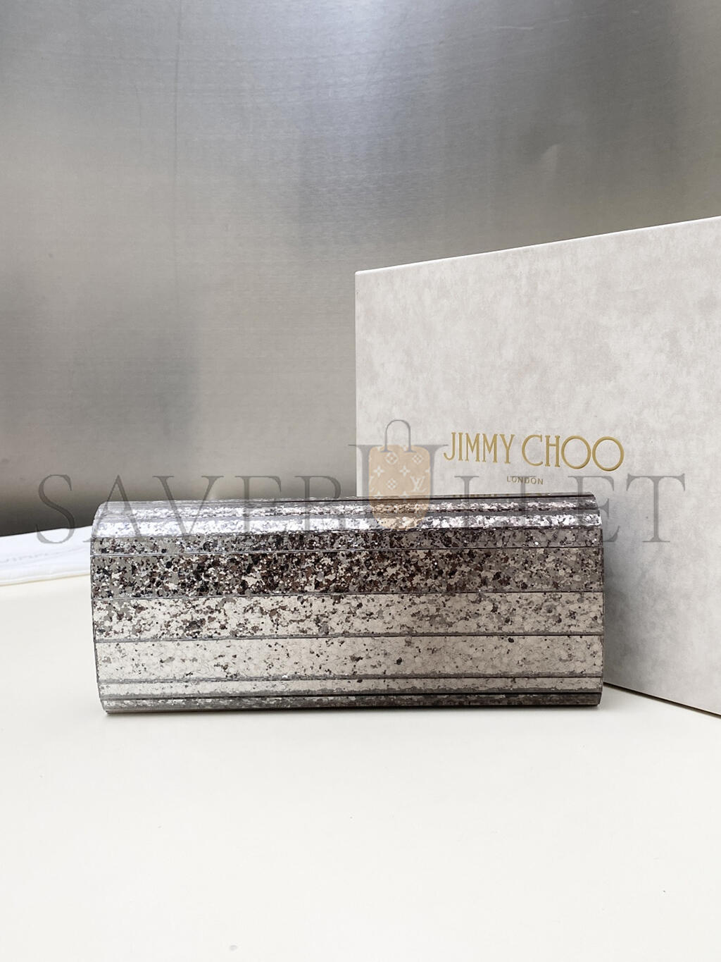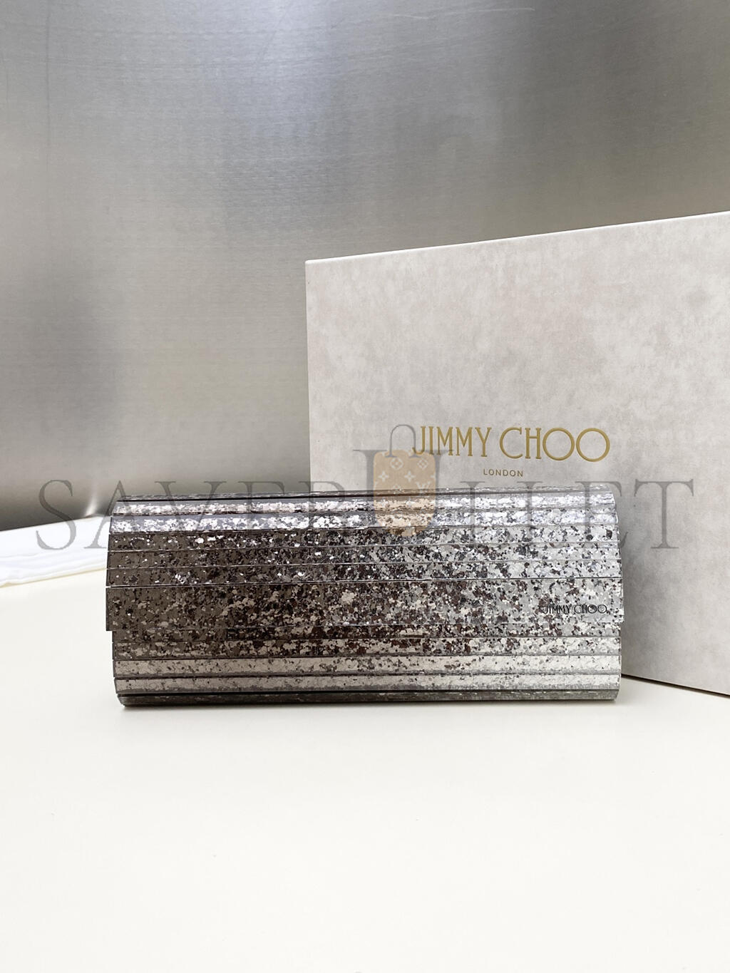 JIMMY CHOO METALLIC EFFECT DÉGRADÉ GLITTERED PLEXI SWEETIE CLUTCH BAGS (24*10*5cm)