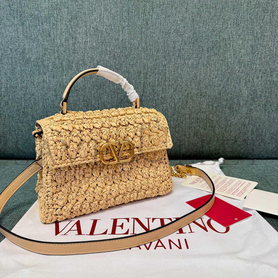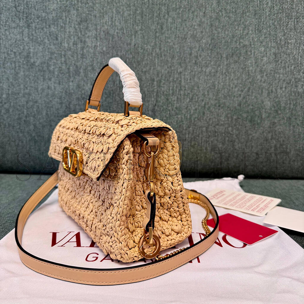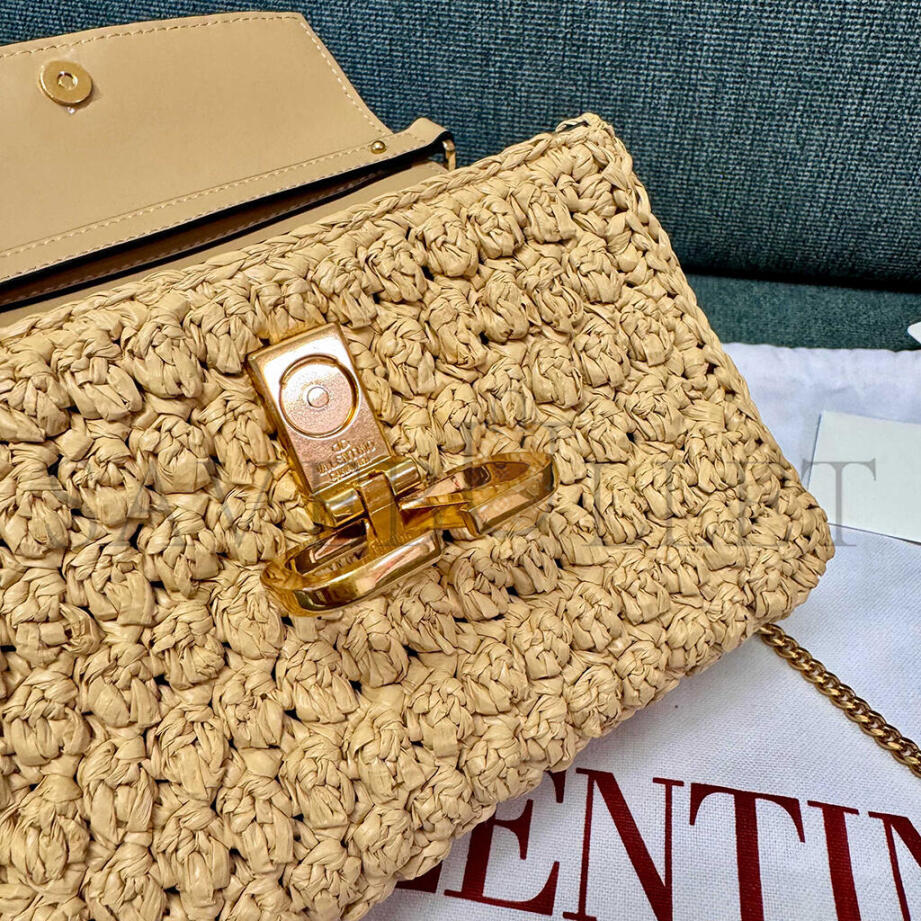 VALENTINO GARAVANI VSLING SMALL RAFFIA SHOULDER BAG (22*17*9cm)