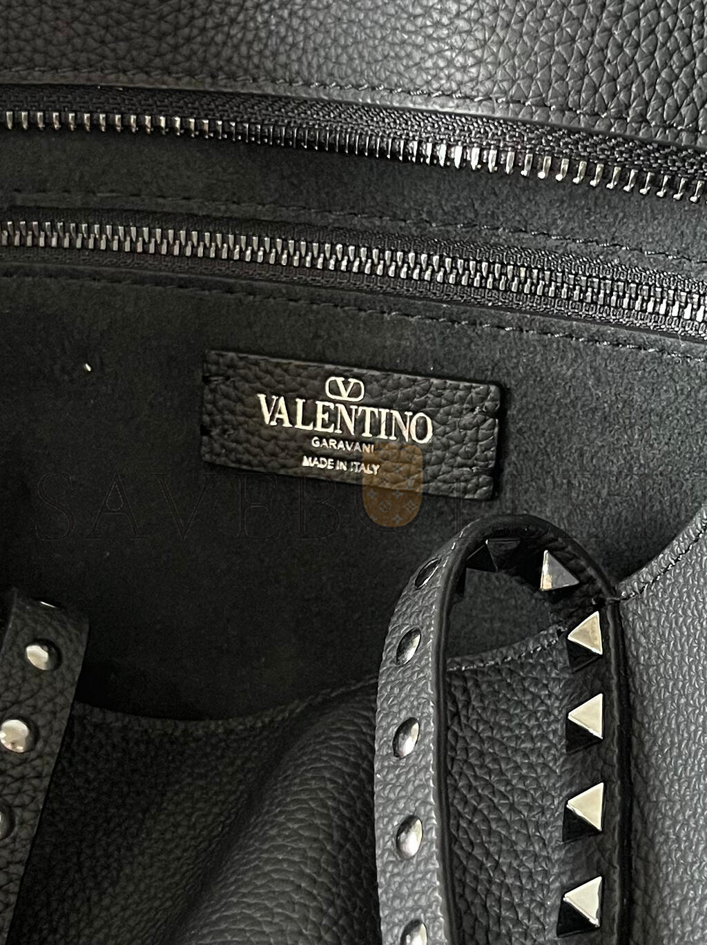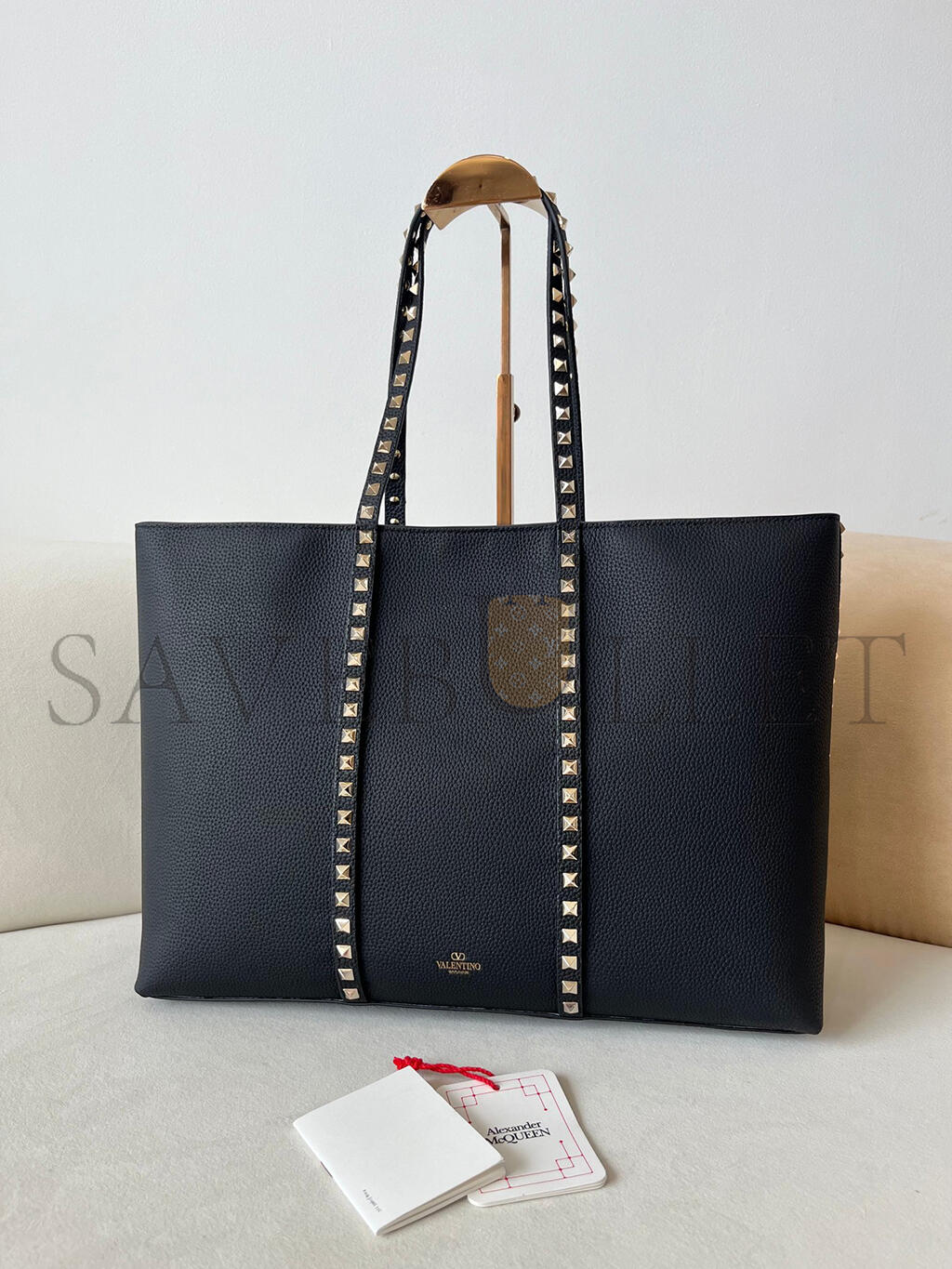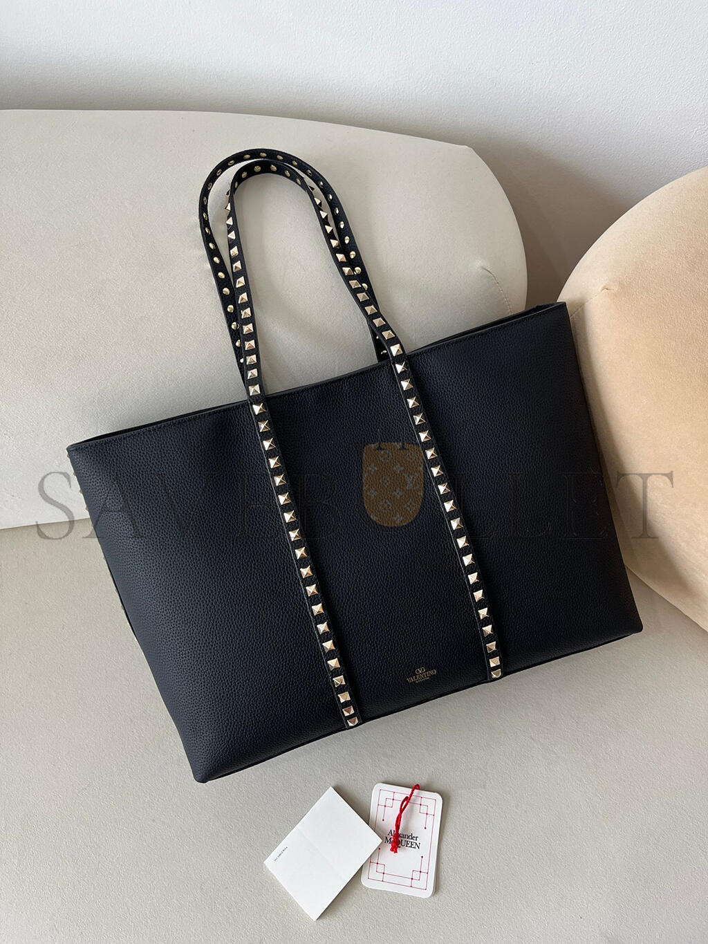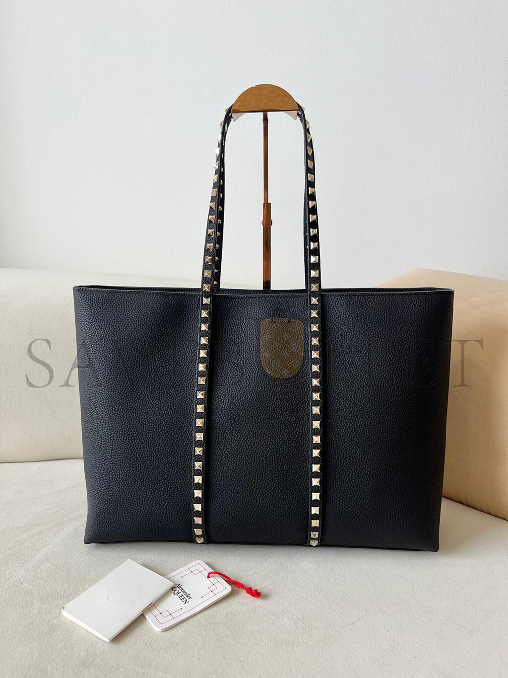 VALENTINO GARAVANI ROCKSTUD SHOPPING BAG IN GRAINY CALFSKIN 5W0B0Q67VSF0NO (37*27*12cm)