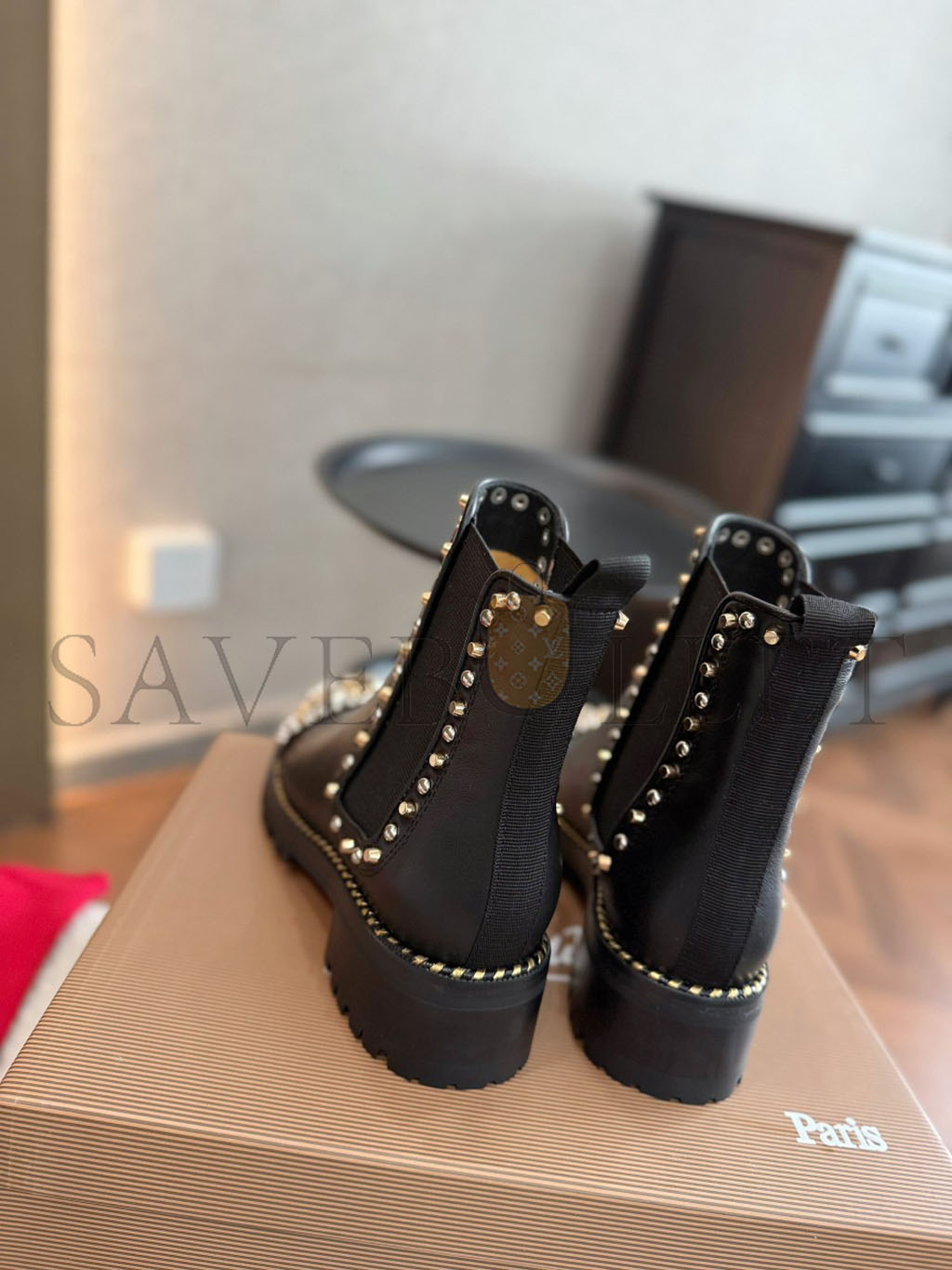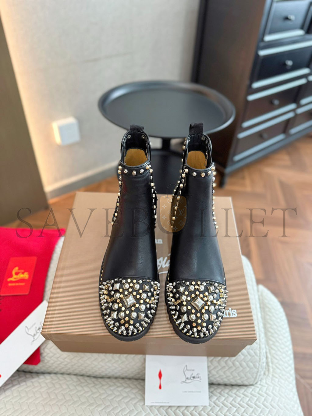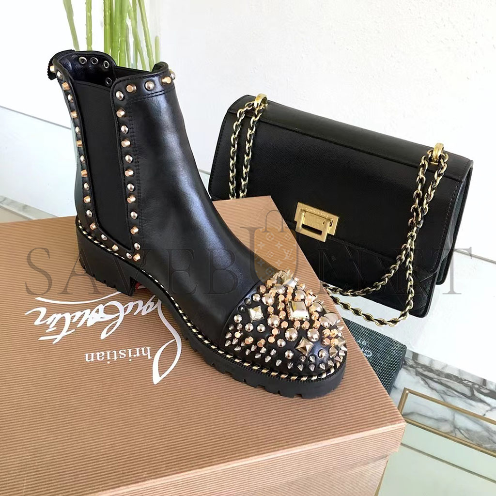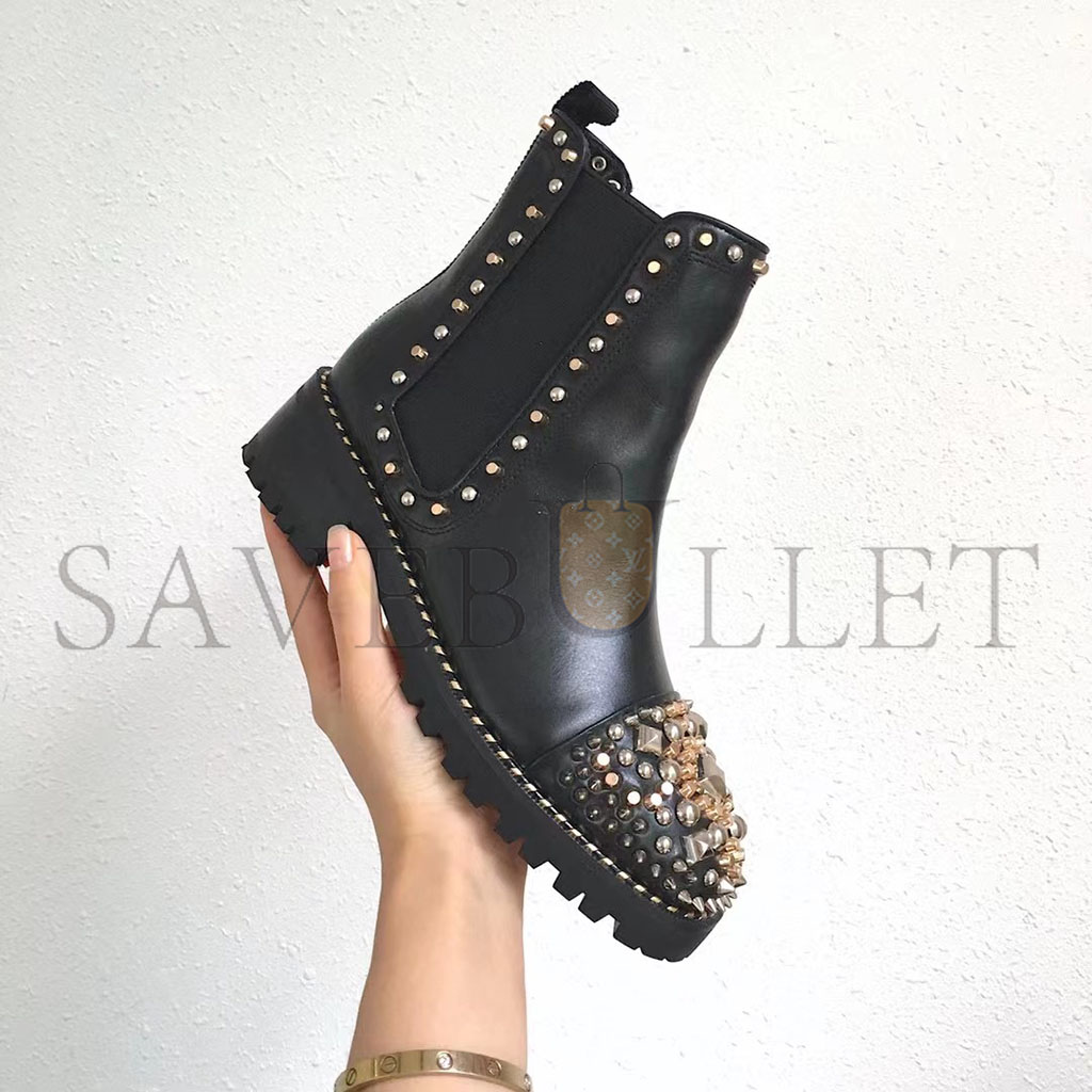 CHRISTIAN LOUBOUTIN CALFSKIN STUDDED CHASSE A CLOU CHELSEA BOOTS , 39 BLACK 3170781BK01