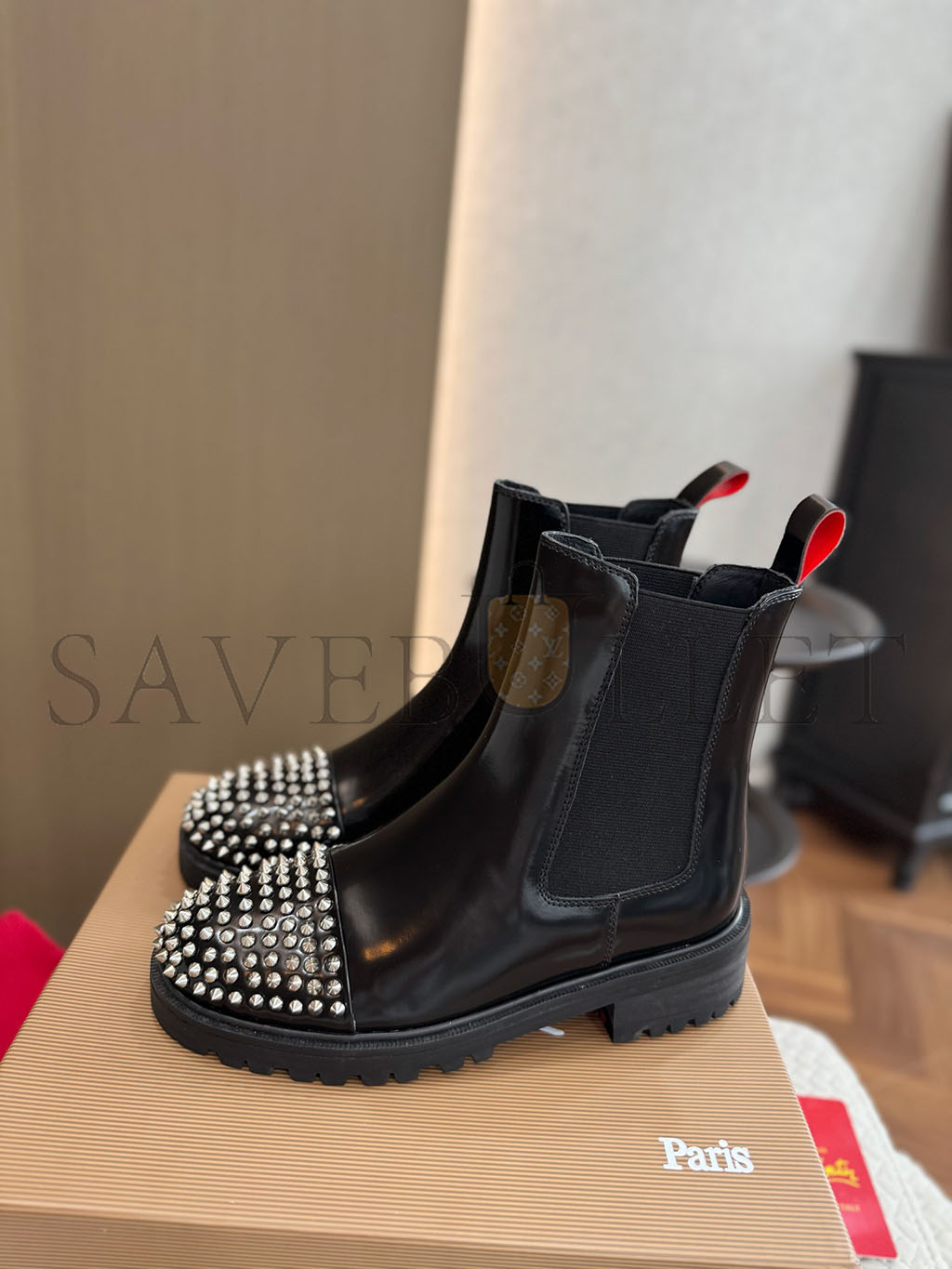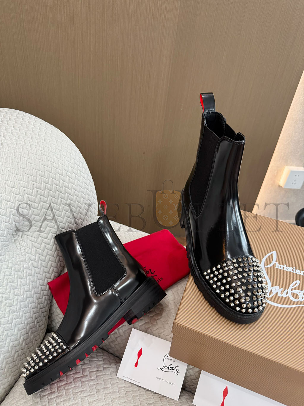 CHRISTIAN LOUBOUTINMEN'S BLACK BATTERSEA LEATHER CHELSEA BOOTS WITH SPIKES 3250079BK01