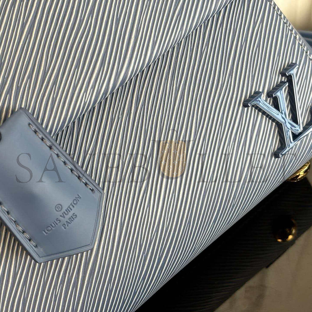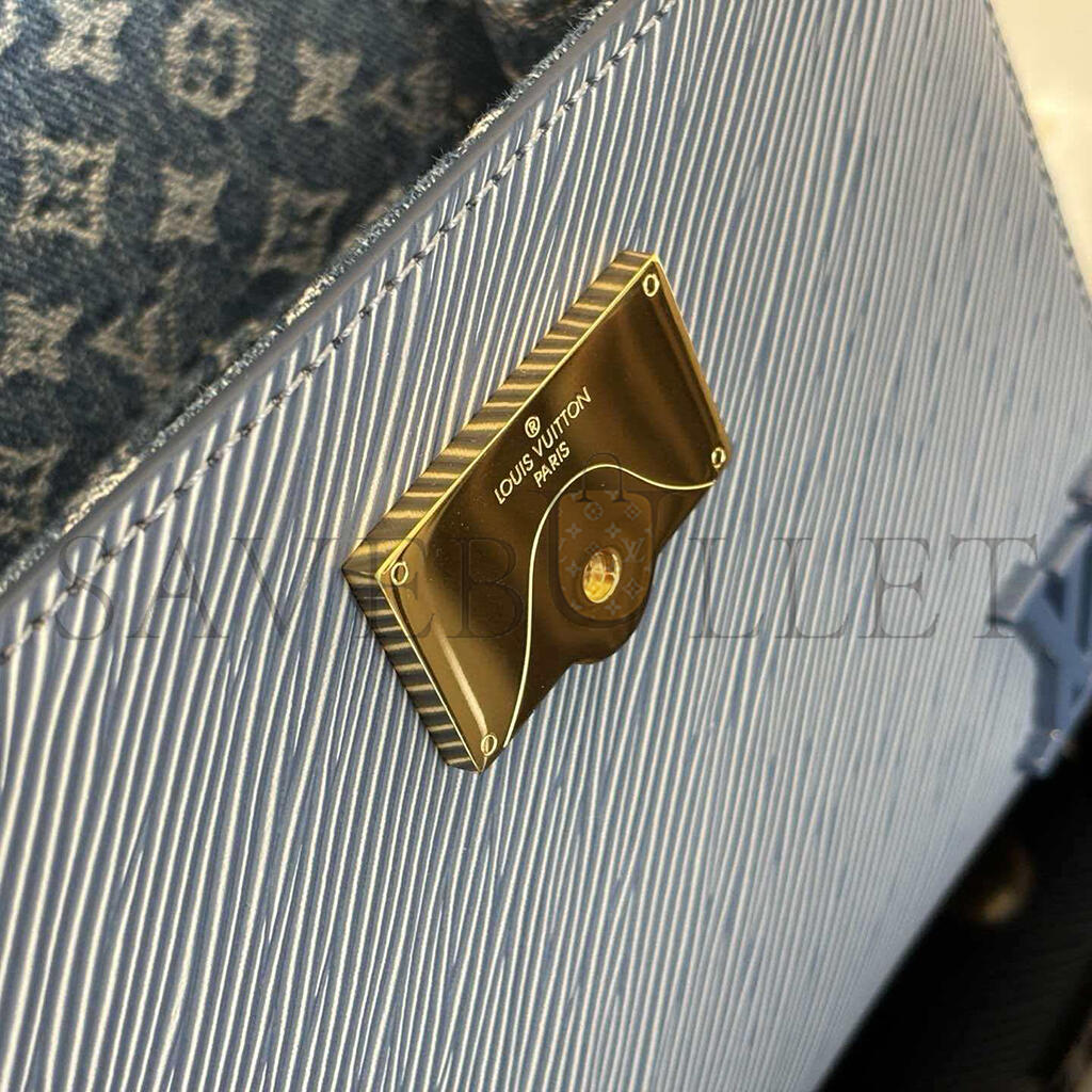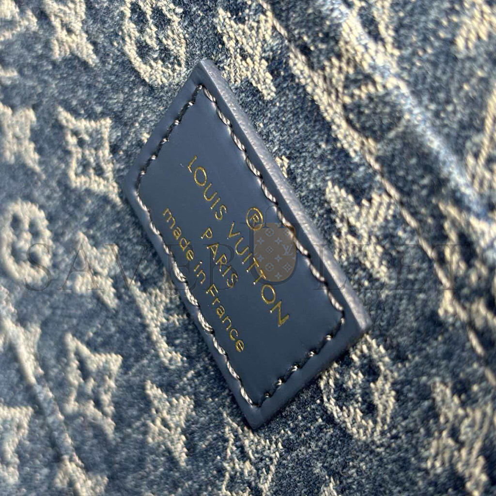 9.8 x 7.5 x 5.9 inches(length x Height x Width)Lagoon BlueMonogram Tiles coated canvasNatural cowhide-leather trimPrinted textile liningGold-color har..