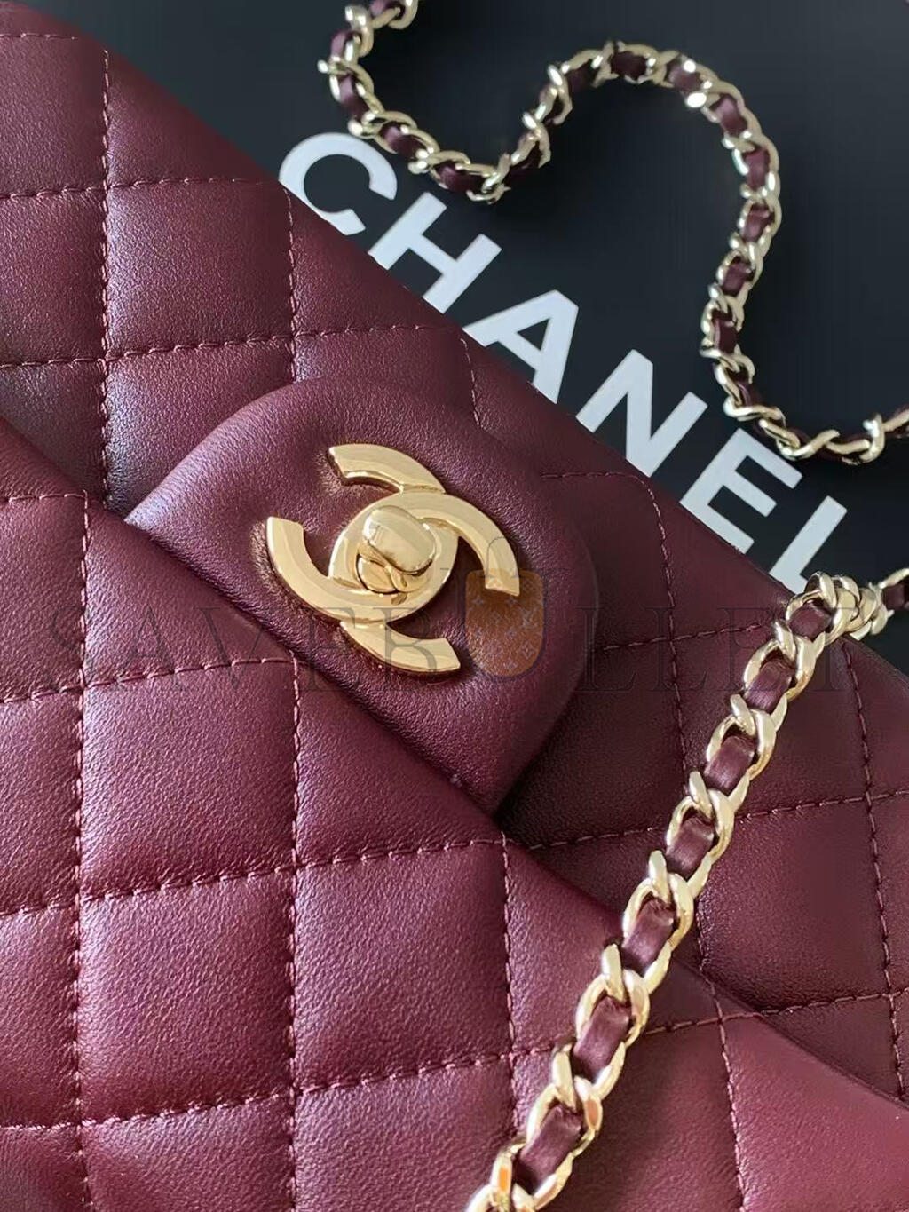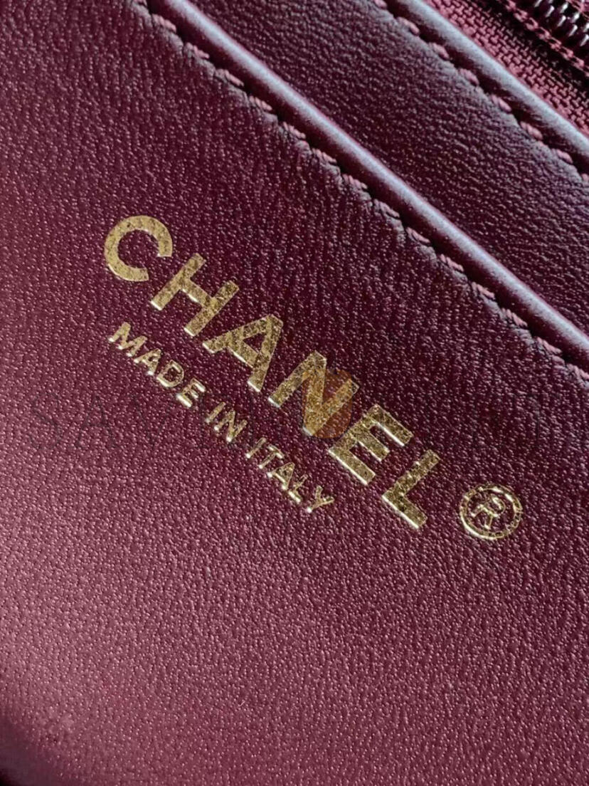 CHANEL LAMBSKIN QUILTED MINI TOP HANDLE RECTANGULAR FLAP BURGUNDY (20*12*6cm)