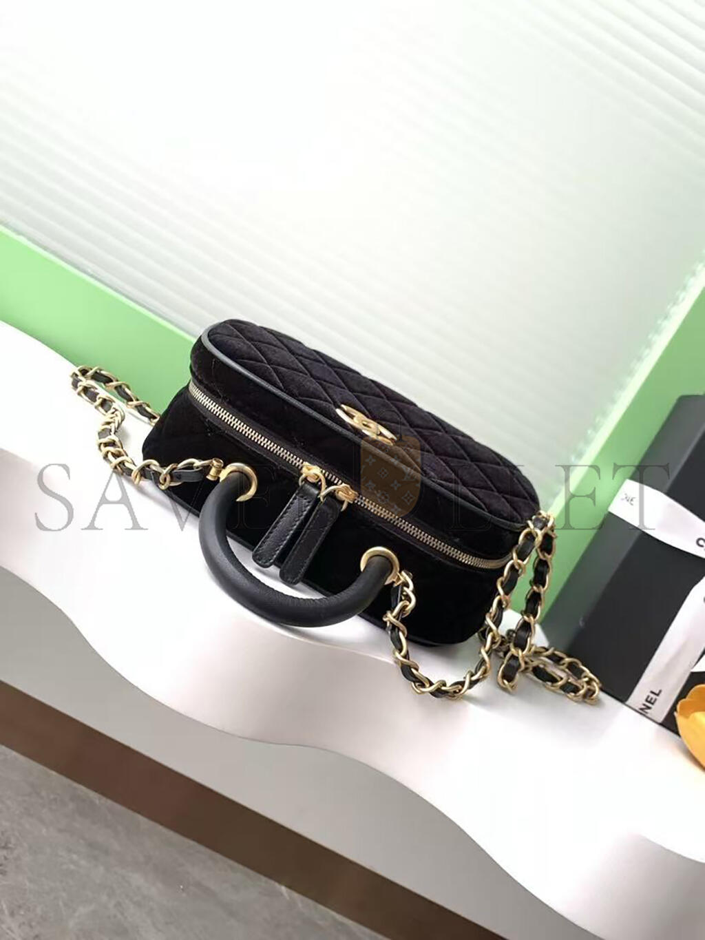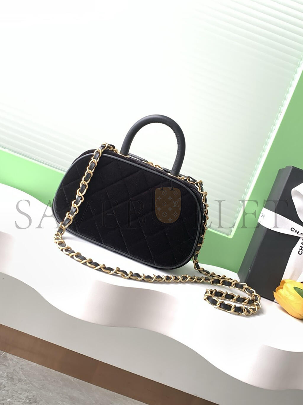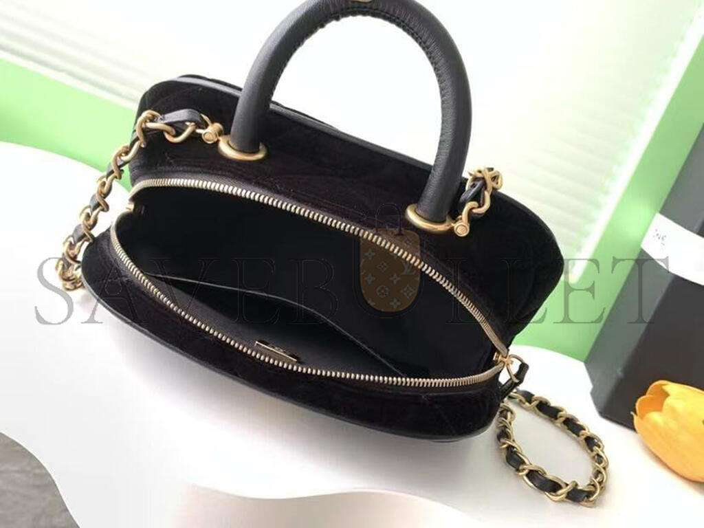 CHANEL MINI BOWLING BAG VELVET AND CALFSKIN AS5572 (20*11.5*8.5cm)