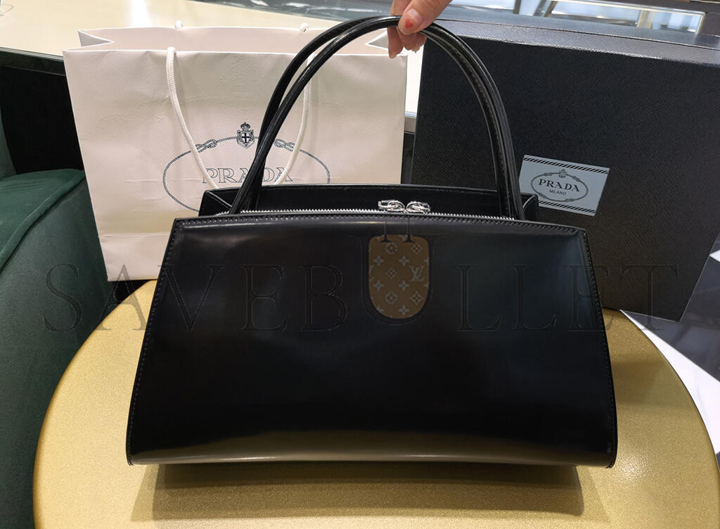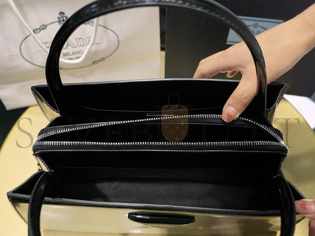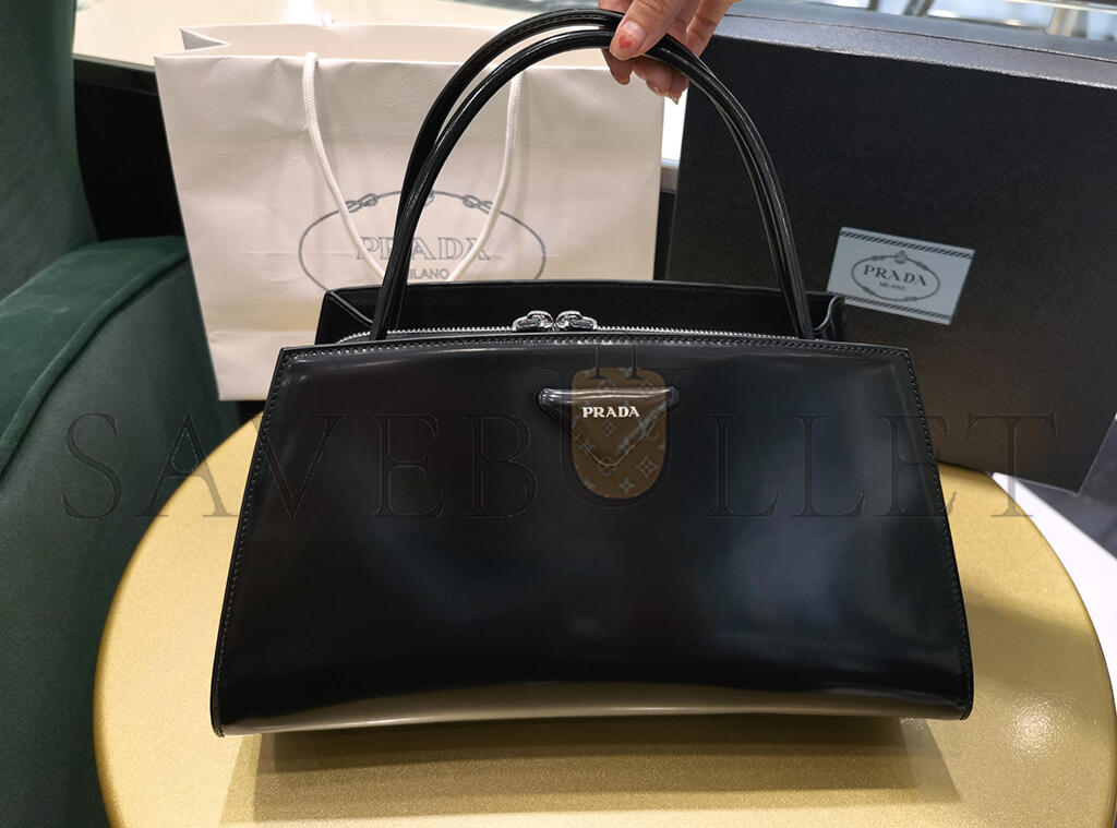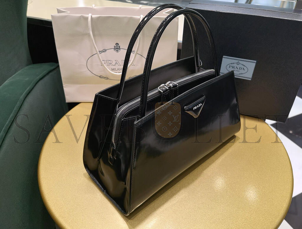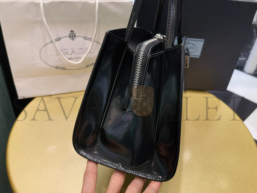 PRADA LEATHER HANDBAG WOMEN'S BLACK 1BA327 (33*18*13.5cm)