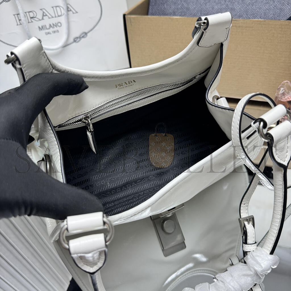 PRADA SMALL PUSH-BUTTON LEATHER HANDBAG 1BG580 (26*18*12cm)