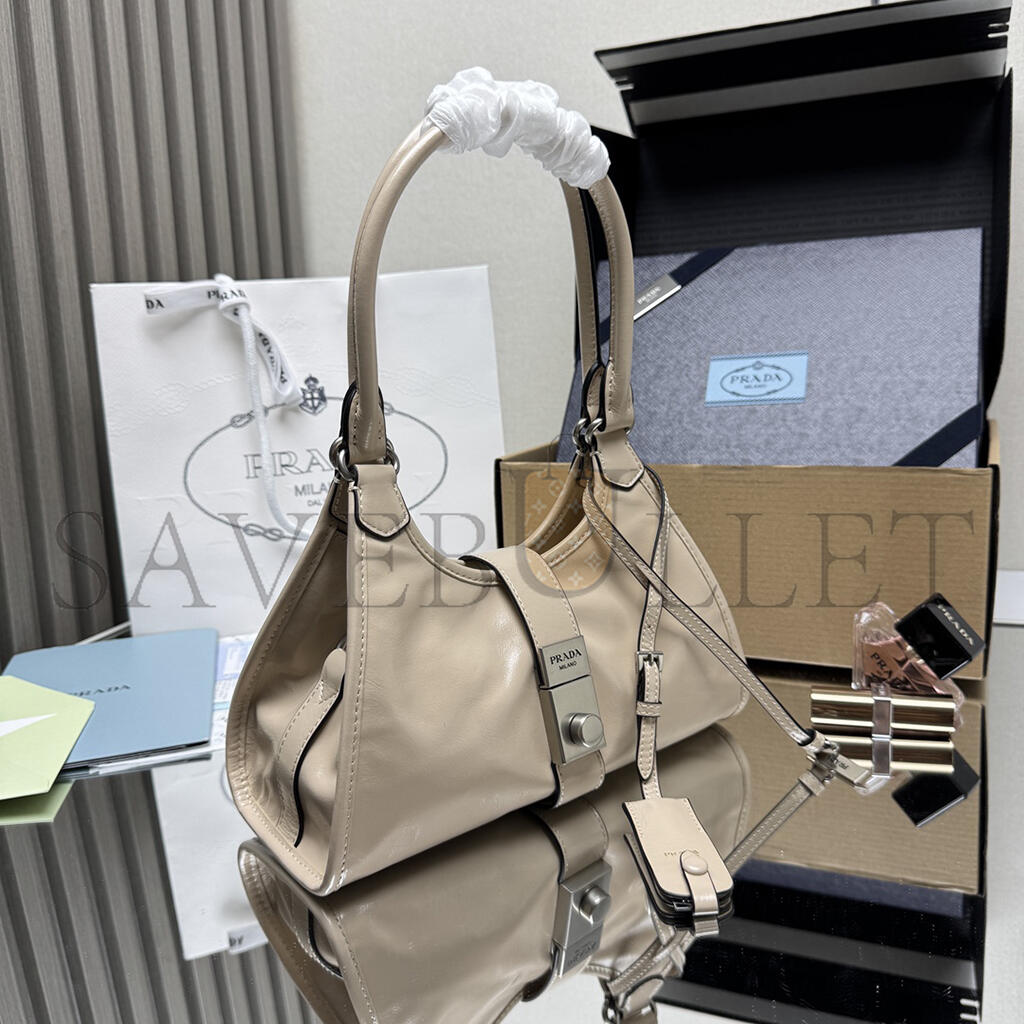 PRADA SMALL PUSH-BUTTON LEATHER HANDBAG 1BG580 (26*18*12cm)