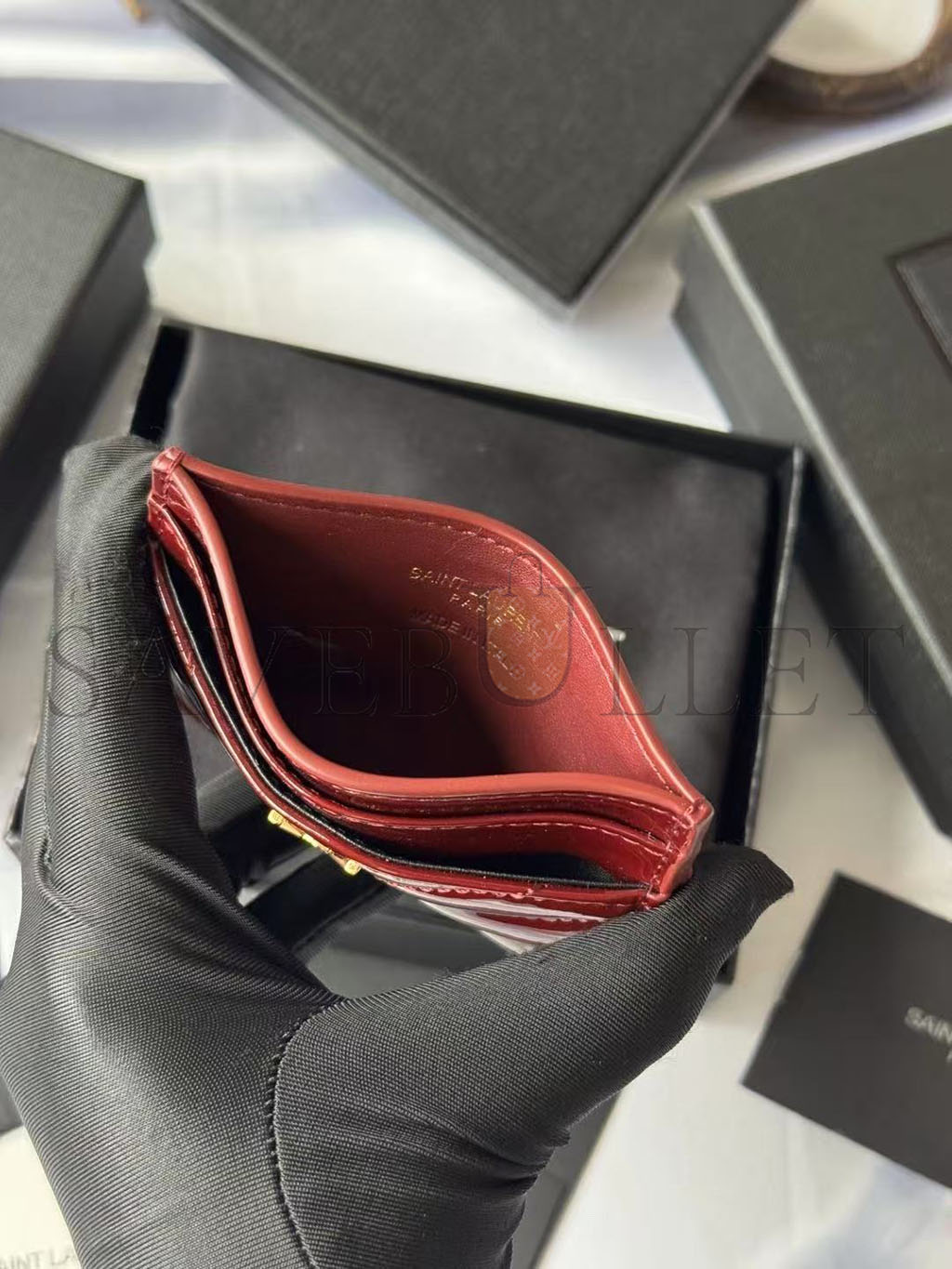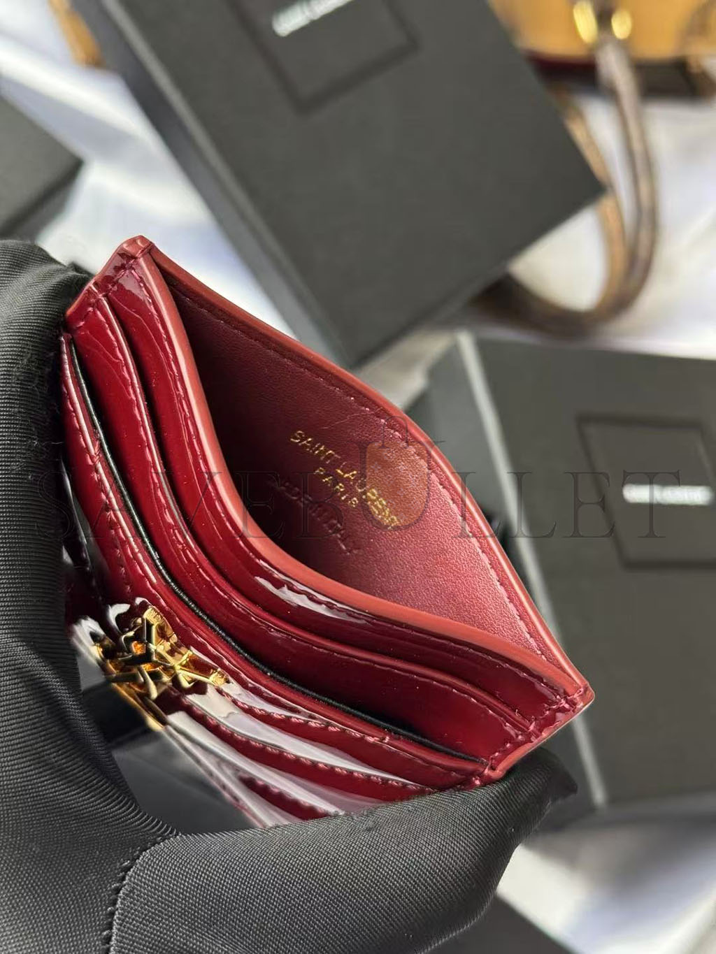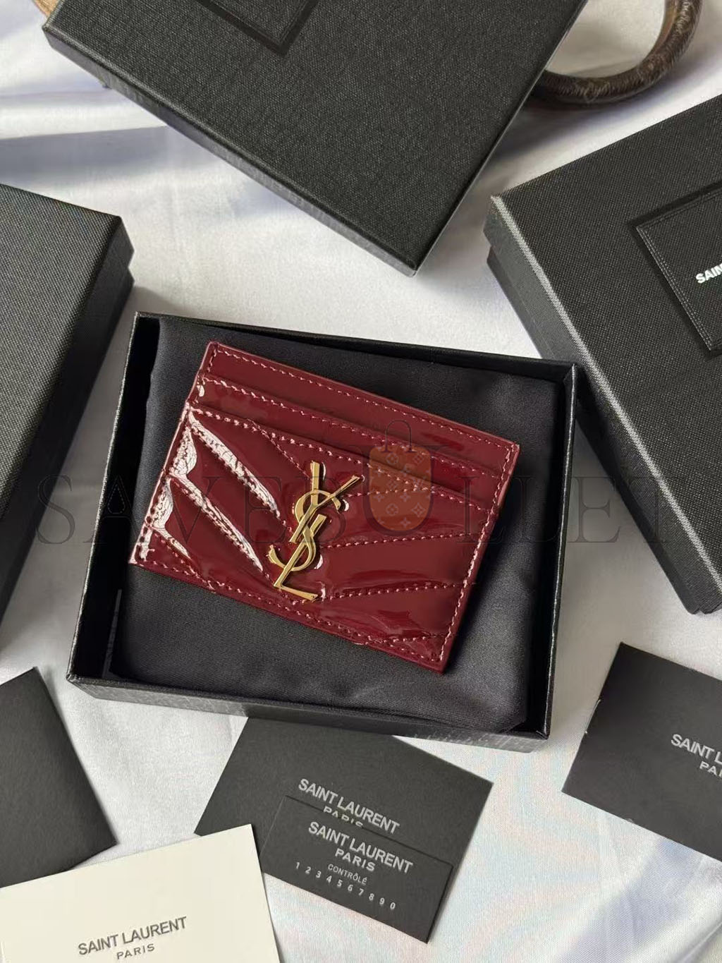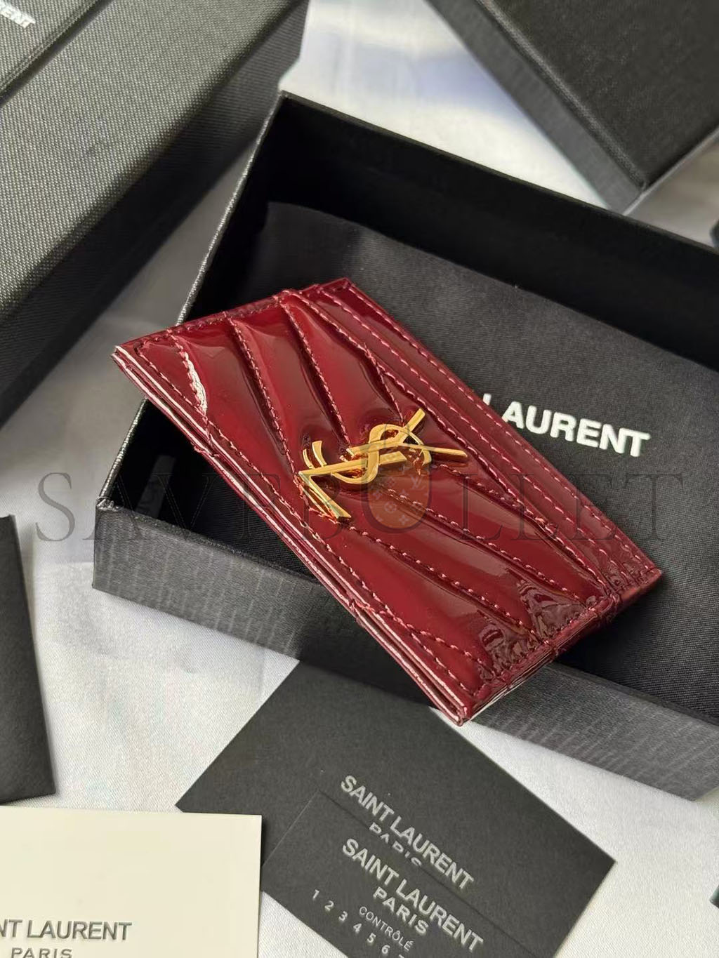 YSL CASSANDRE MATELASSÉ CARD CASE IN PATENT LEATHER 4232910UF076413 (10.5*7.5*0.5cm)