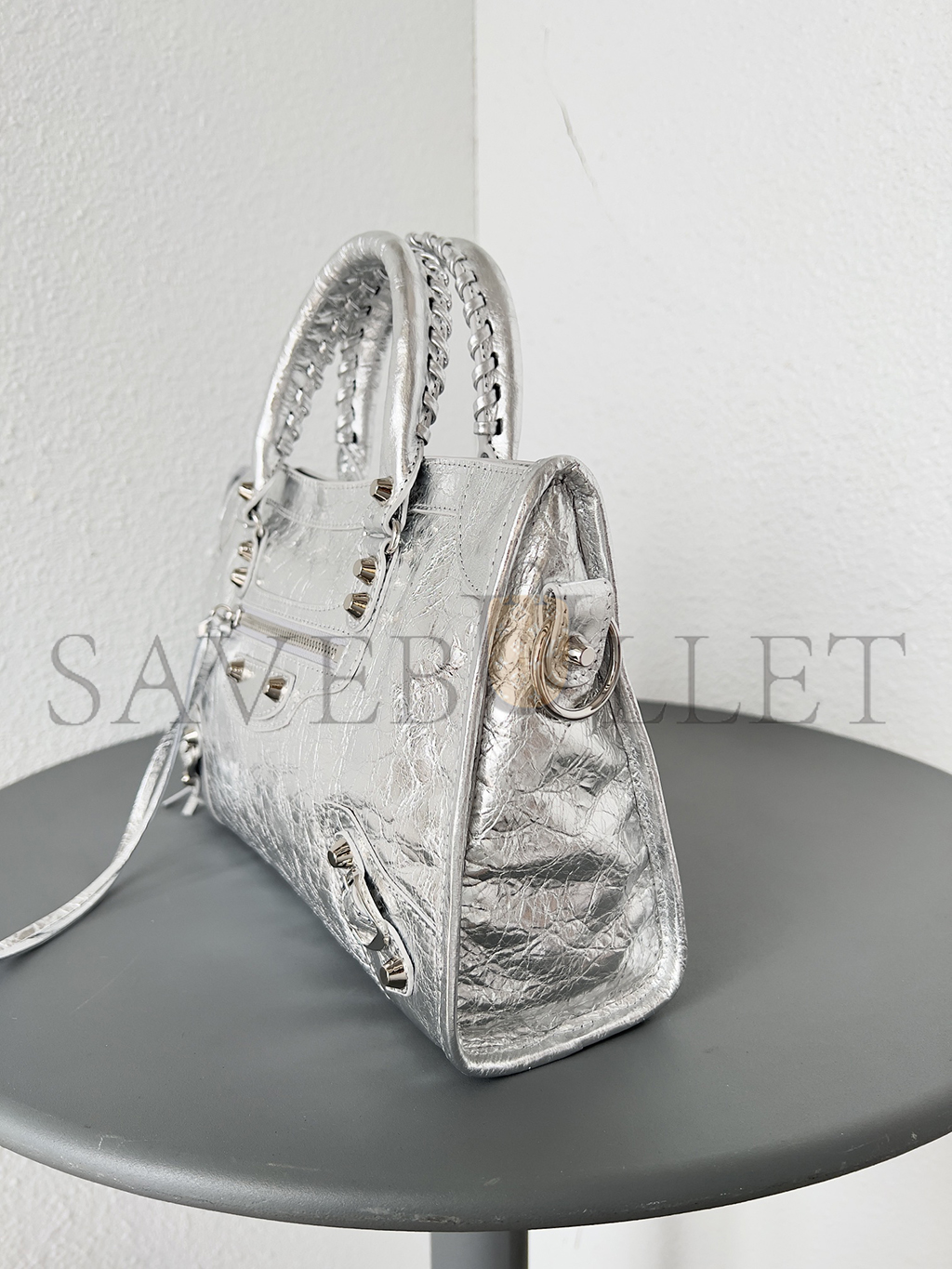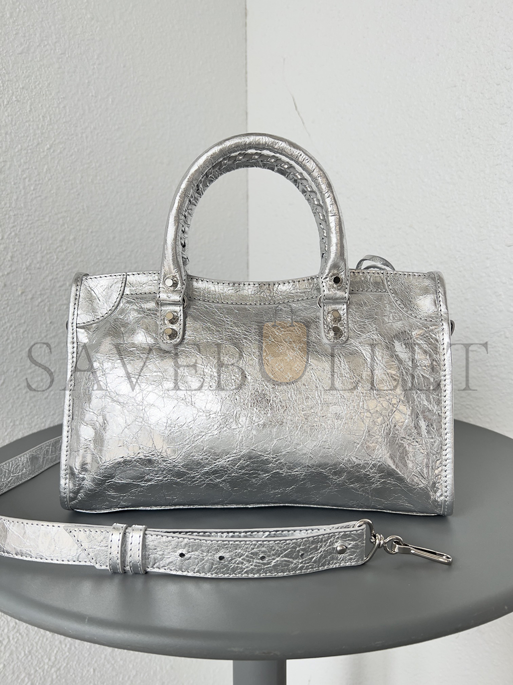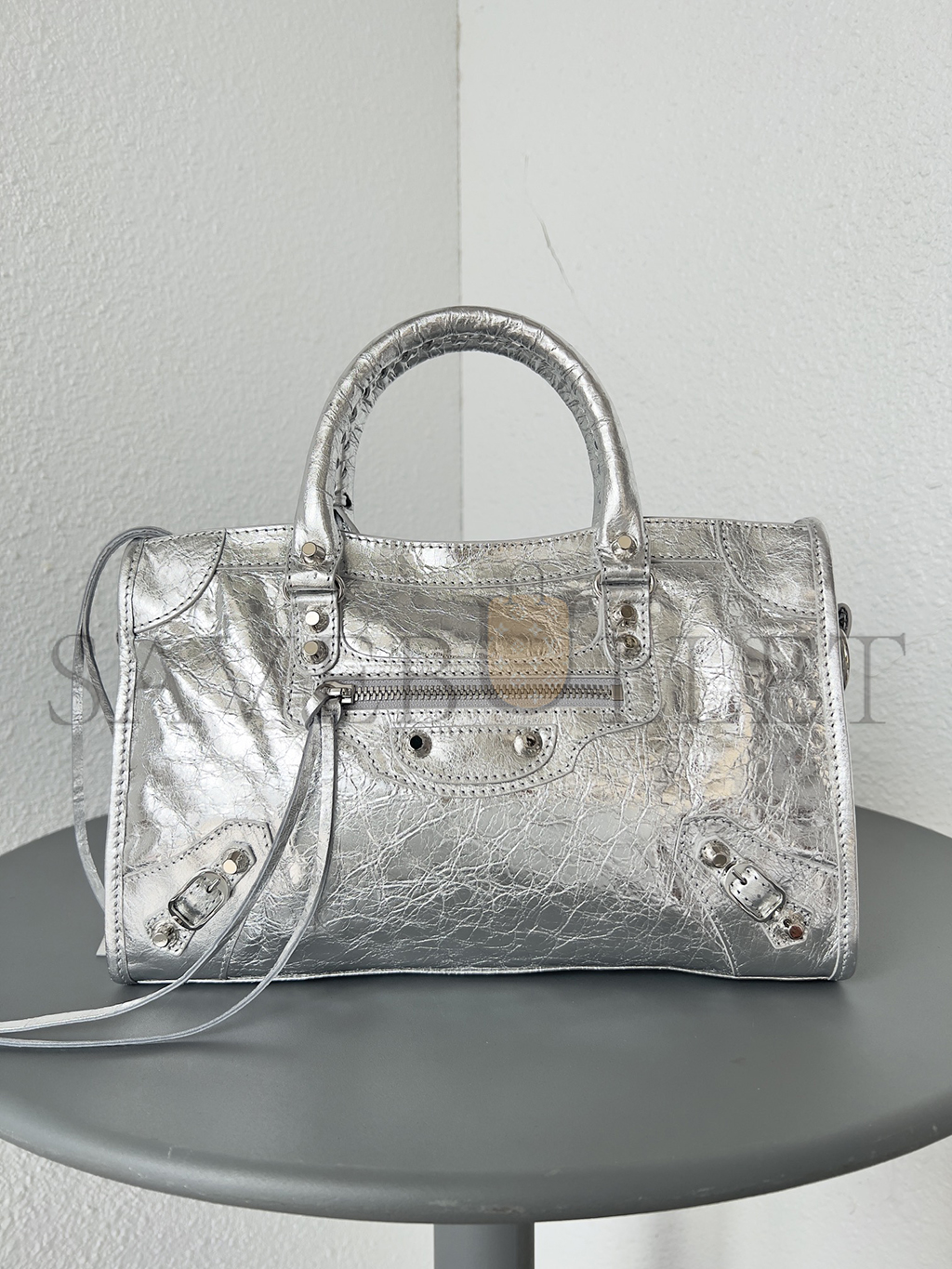 BALENCIAGA WOMEN'S LE CITY BAG SMALL IN SILVER 8114422AA9R8122 (29.9*19.1*9.9cm)