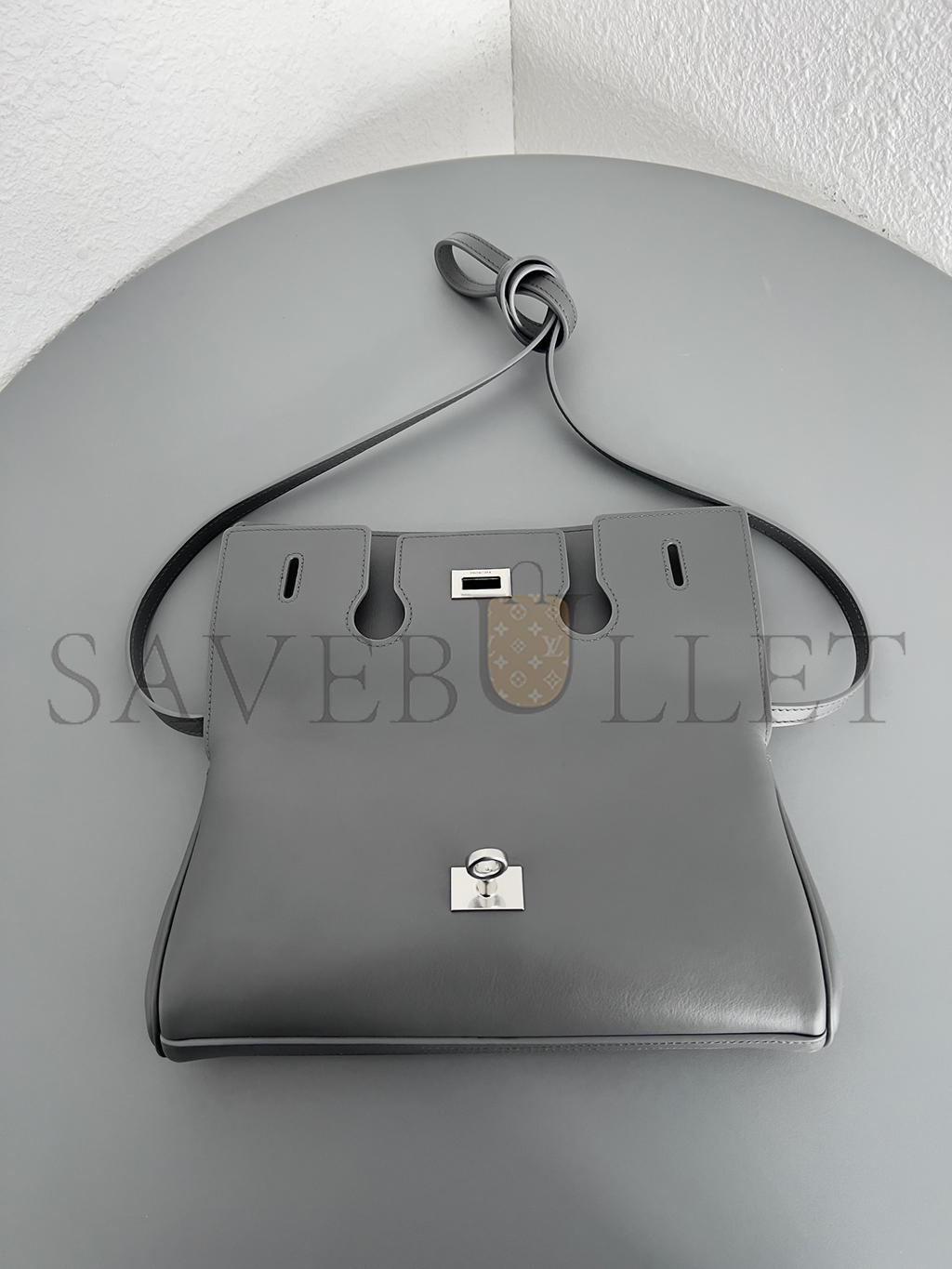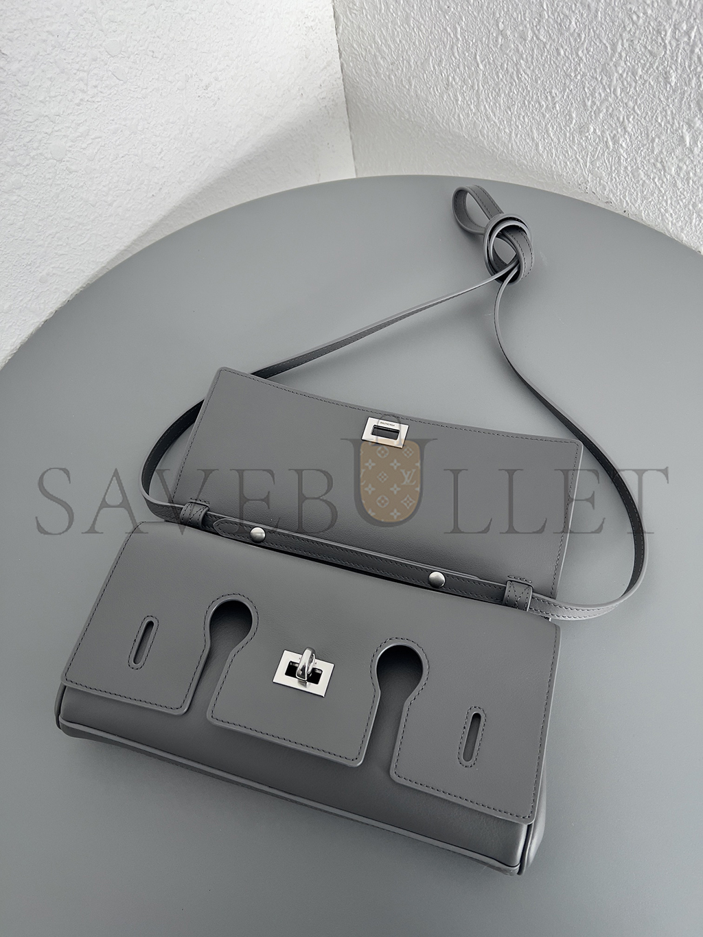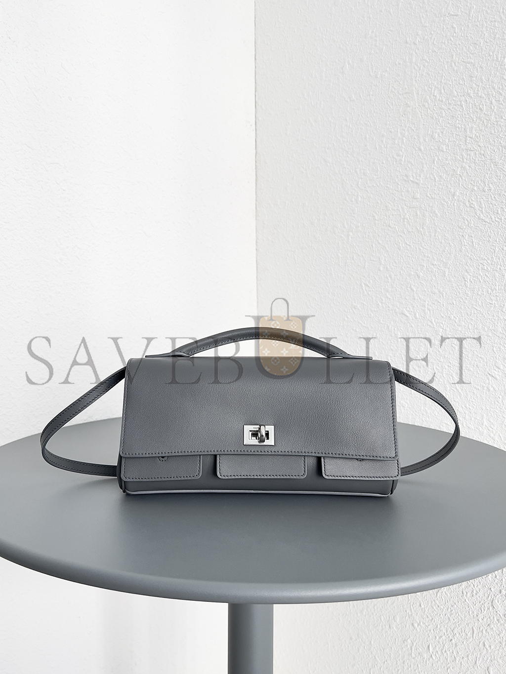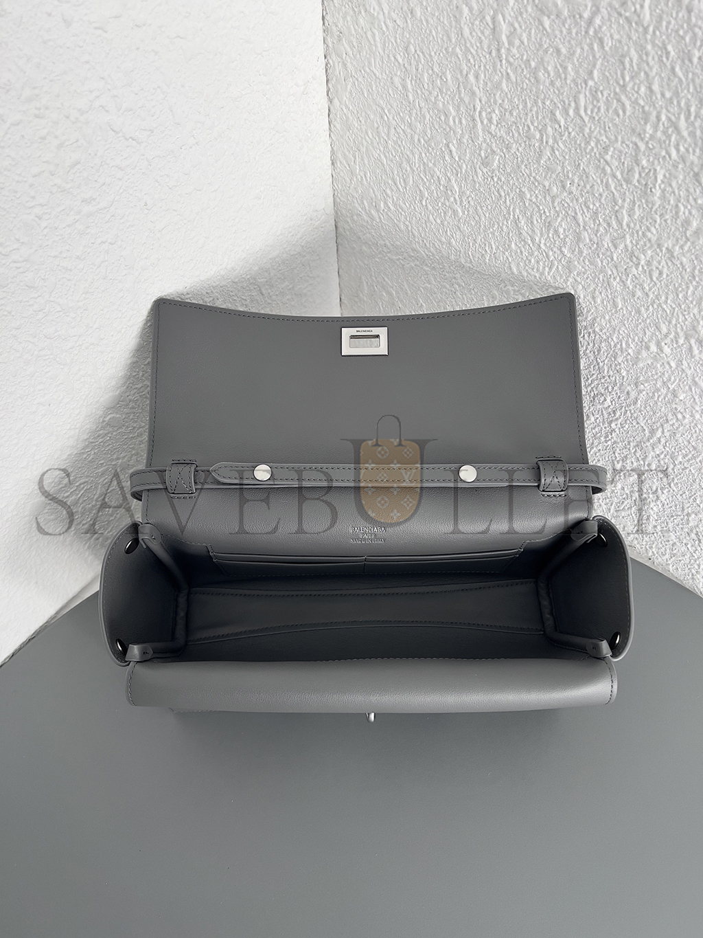 BALENCIAGA WOMEN'S BEL AIR CLUTCH ON STRAP SMALL IN CLOUD GREY 8349432ABAW1142 (26.9*13.9*5.3cm)