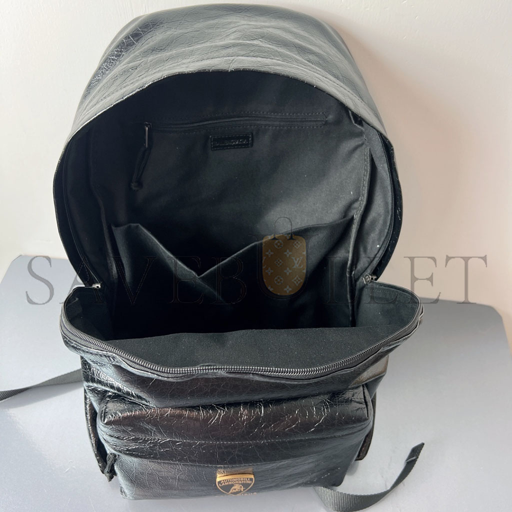 BALENCIAGA MEN'S BALENCIAGA X AUTOMOBILI LAMBORGHINI EXPLORER BACKPACK IN BLACK 5032212AB0R1000 (47*35*20cm)