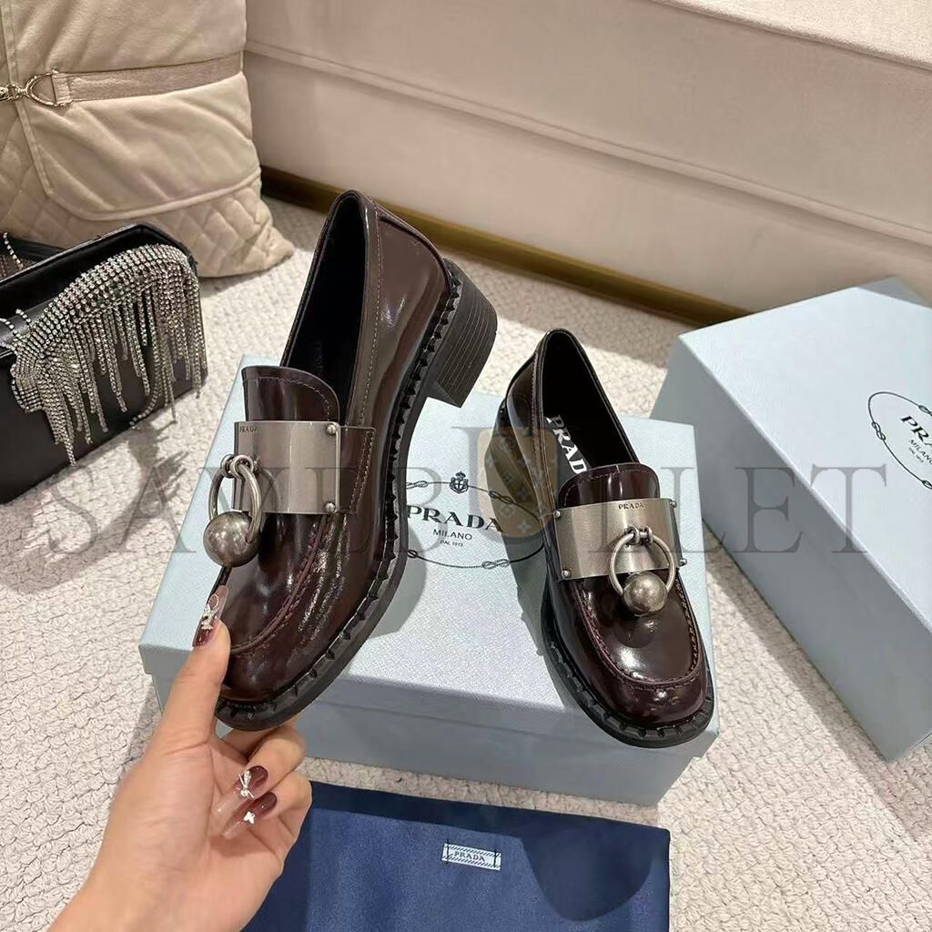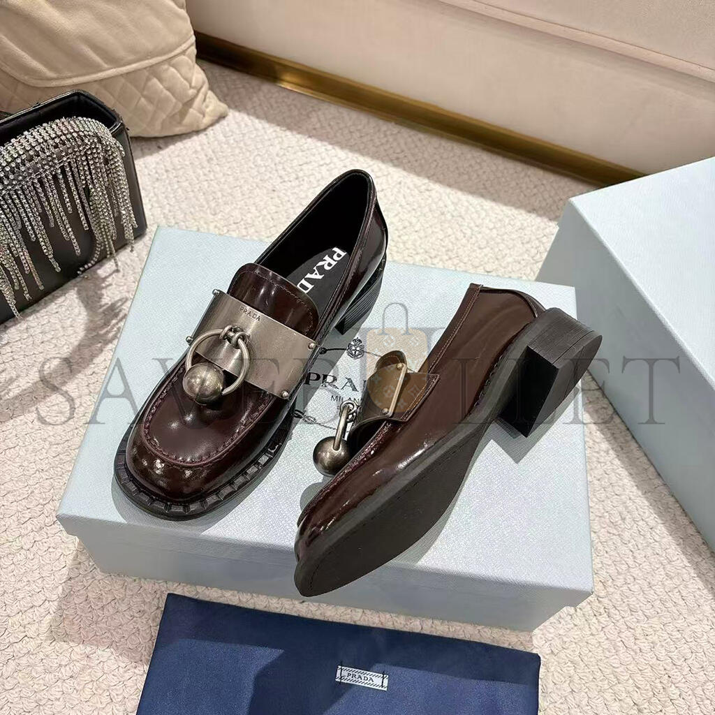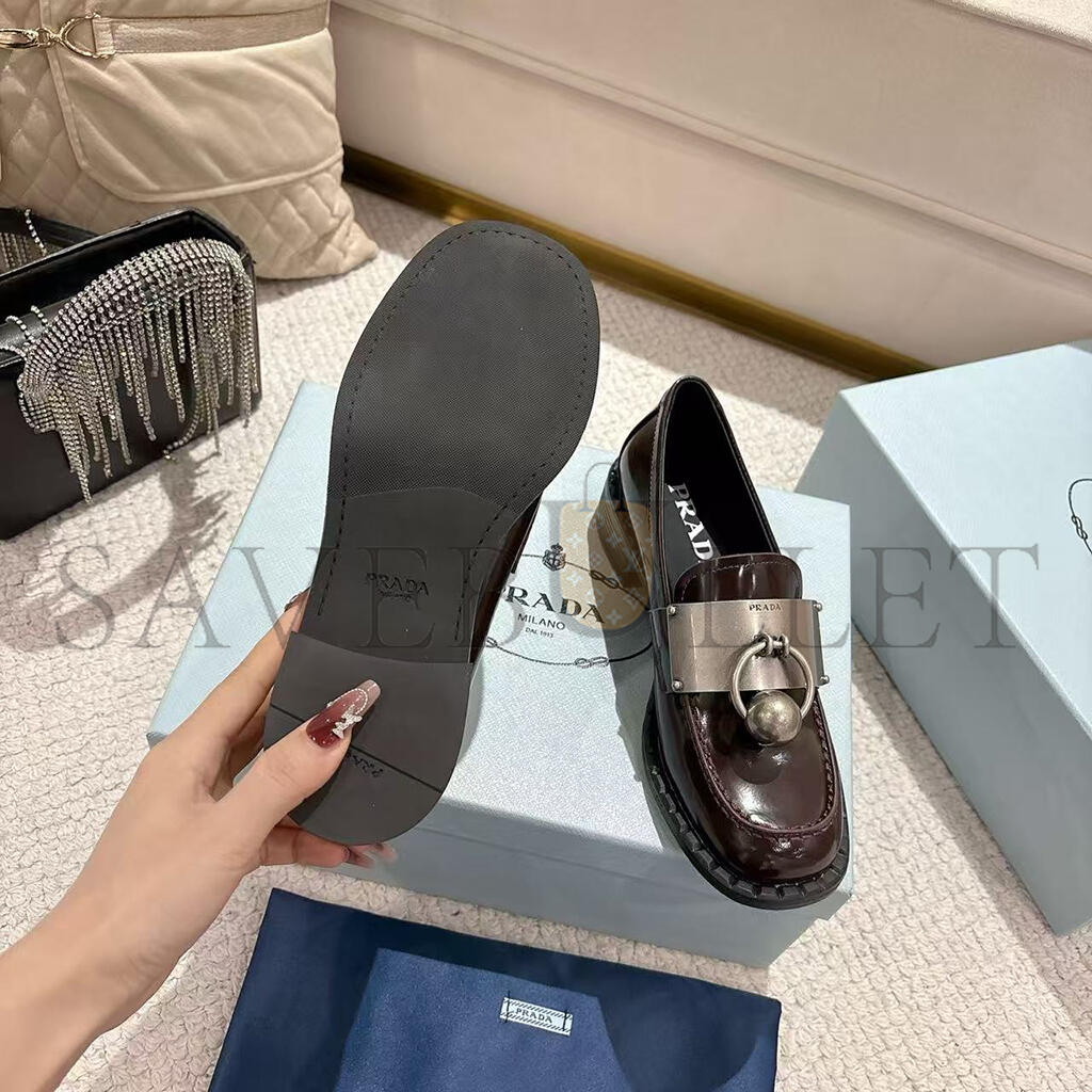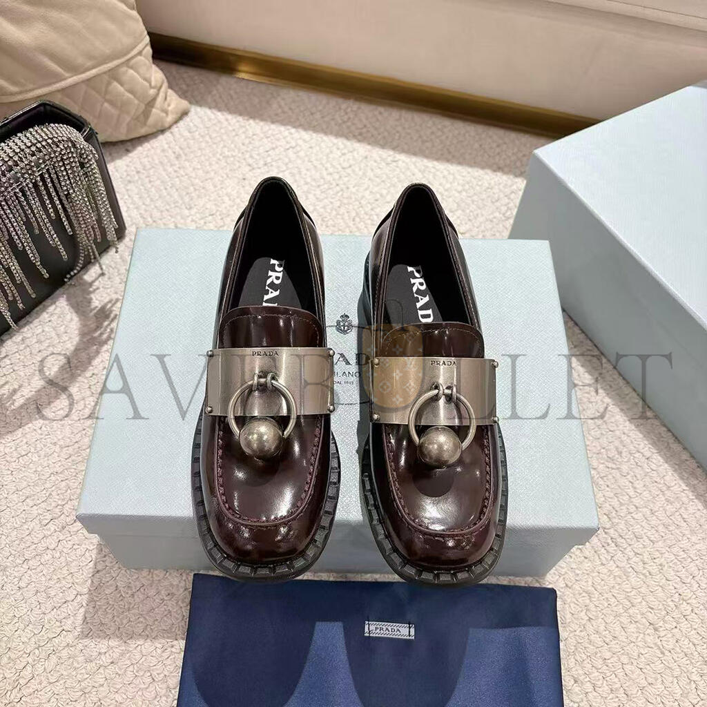 PRADA BRUSHED LEATHER LOAFERS WITH METAL DETAILS 1D981N