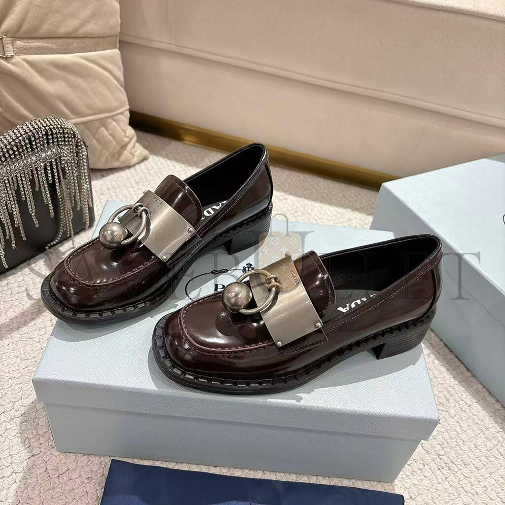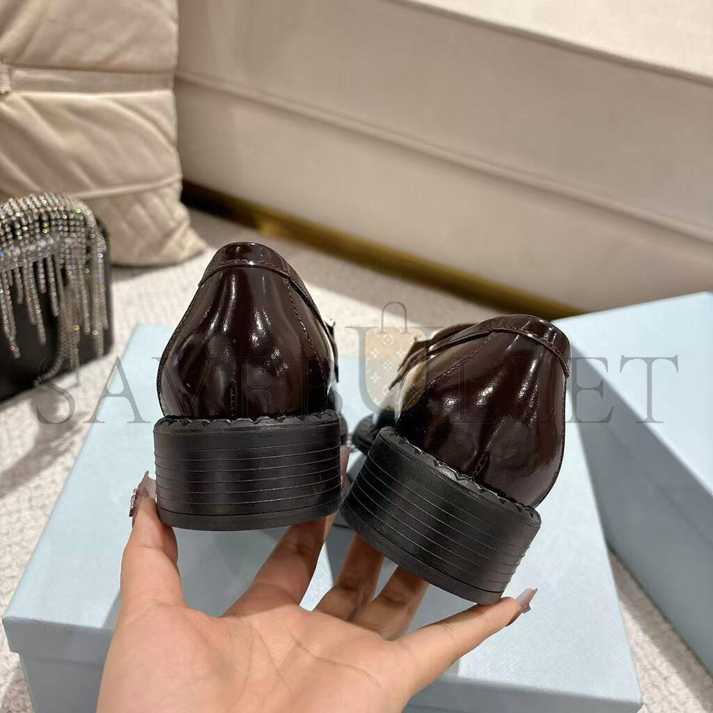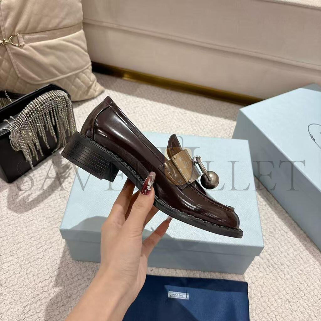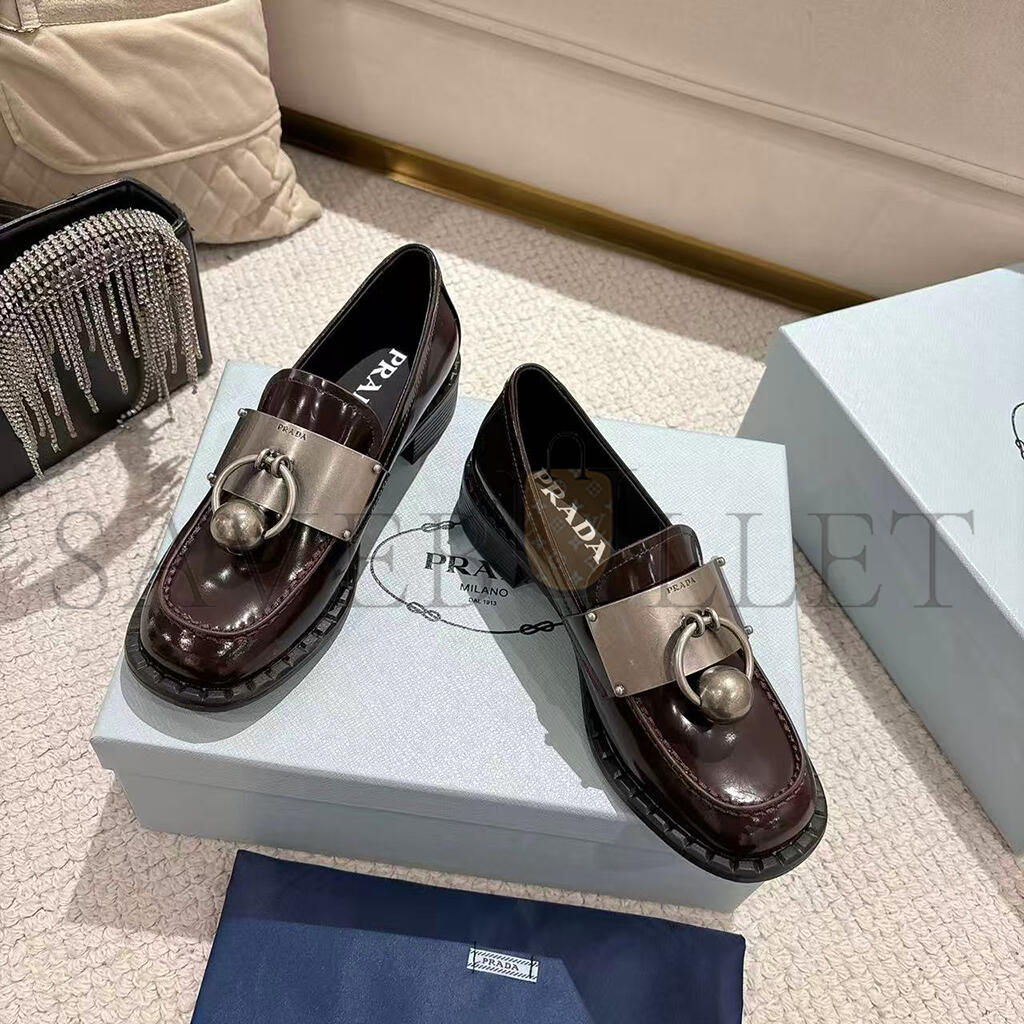 PRADA BRUSHED LEATHER LOAFERS WITH METAL DETAILS 1D981N