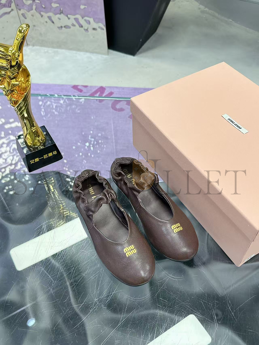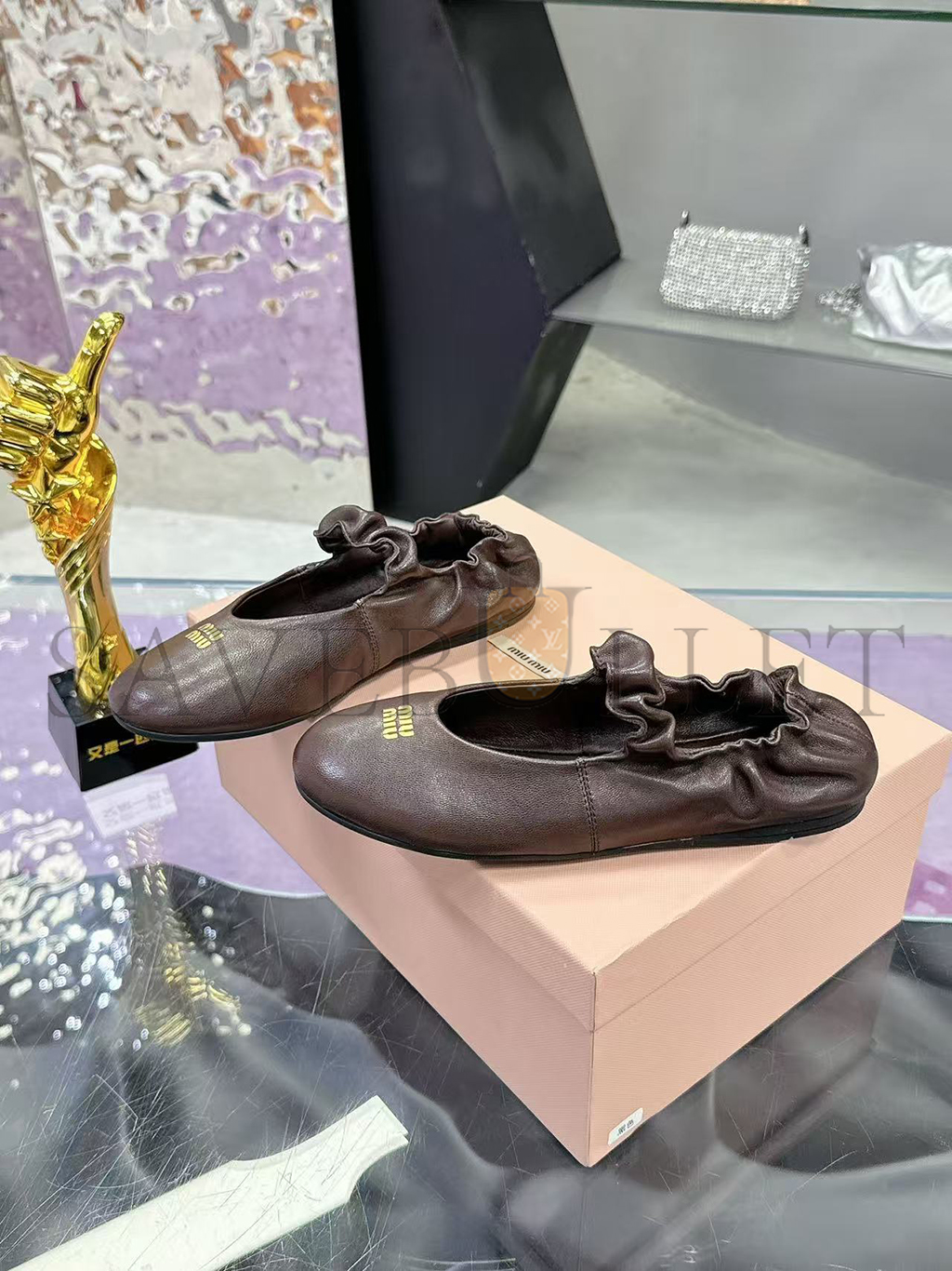 MIU MIU RUCHES NAPPA LEATHER BALLERINAS 5F340E