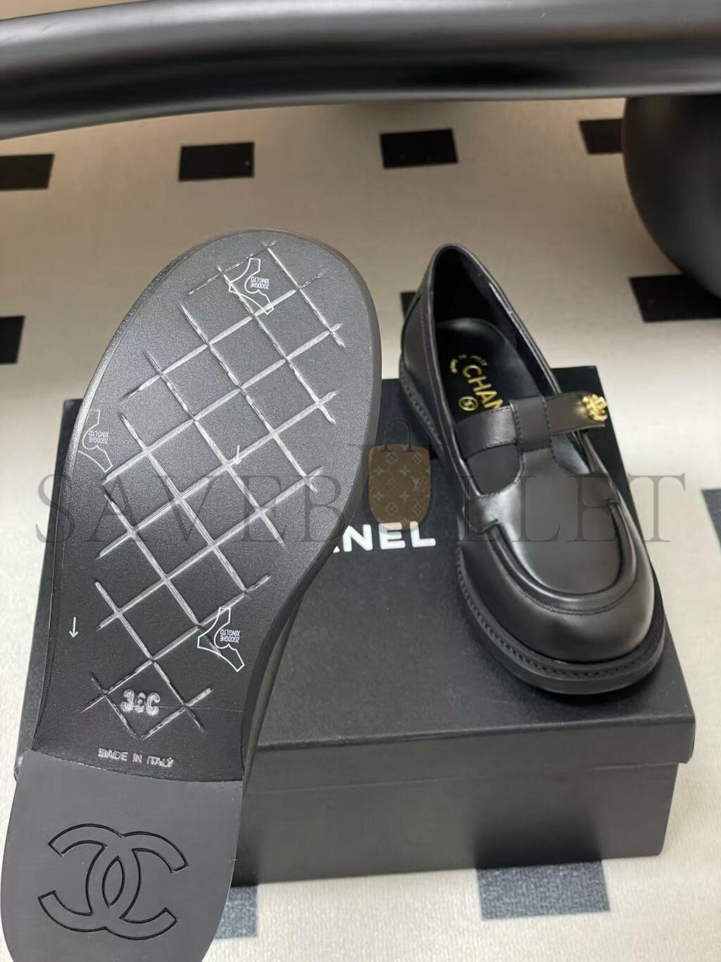 PRADA BRUSHED LEATHER LOAFERS WITH METAL DETAILS 1D981N