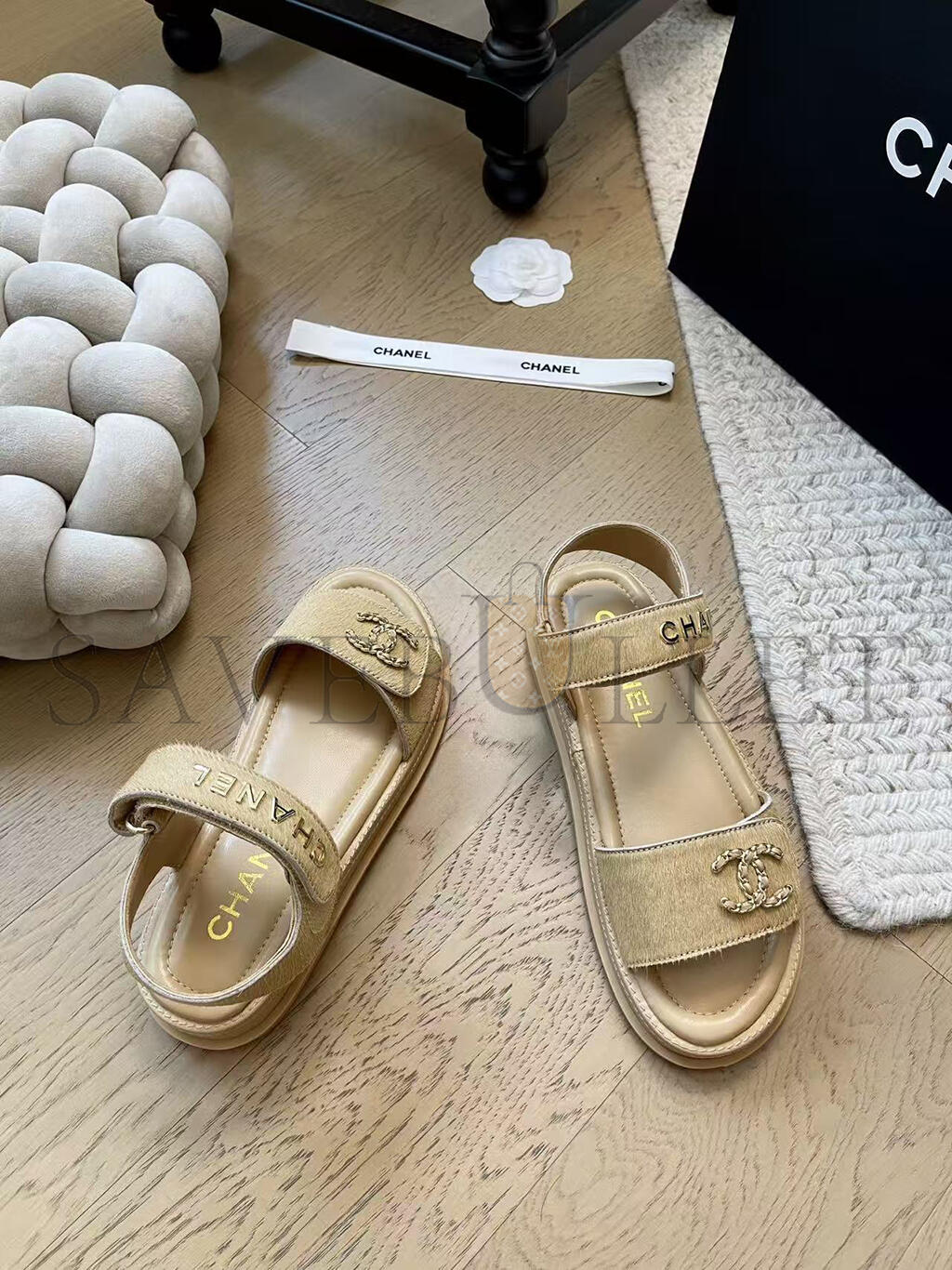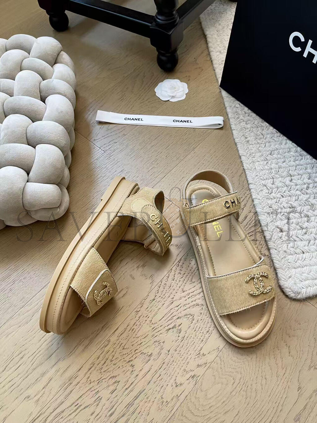 CHANEL LEATHER UNBORN CALF WOMEN'S SANDALS G46018