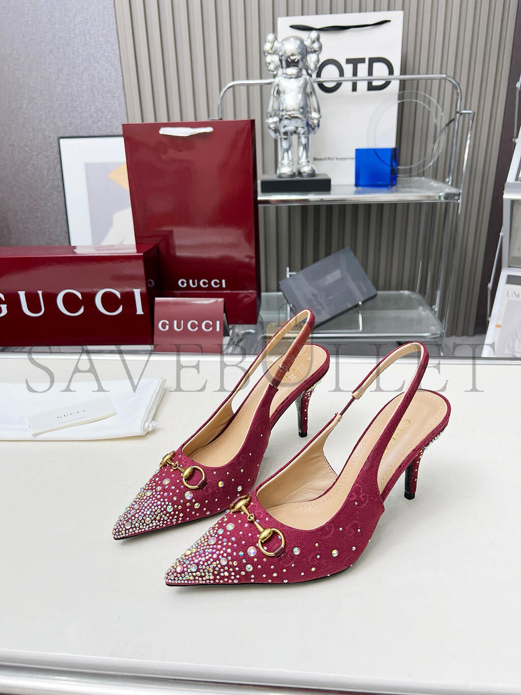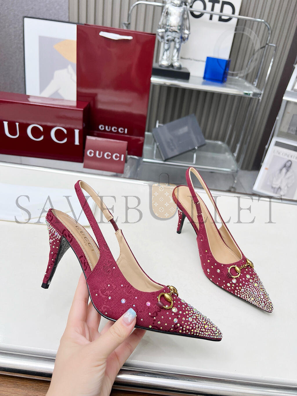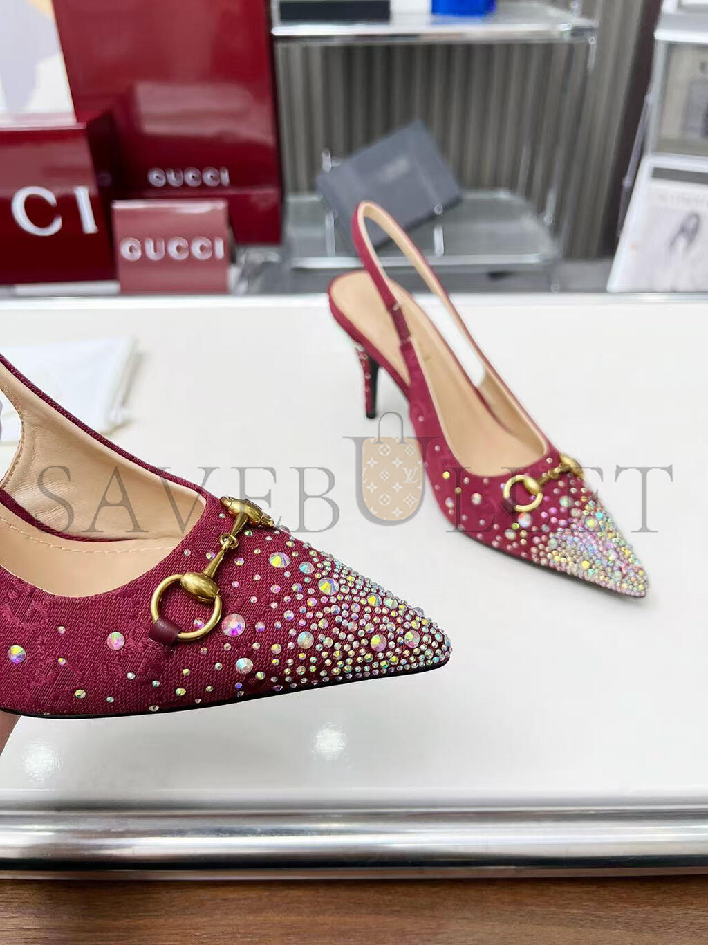 GUCCI WOMEN'S SLINGBACK PUMP WITH CRYSTAL HORSEBIT ‎812176