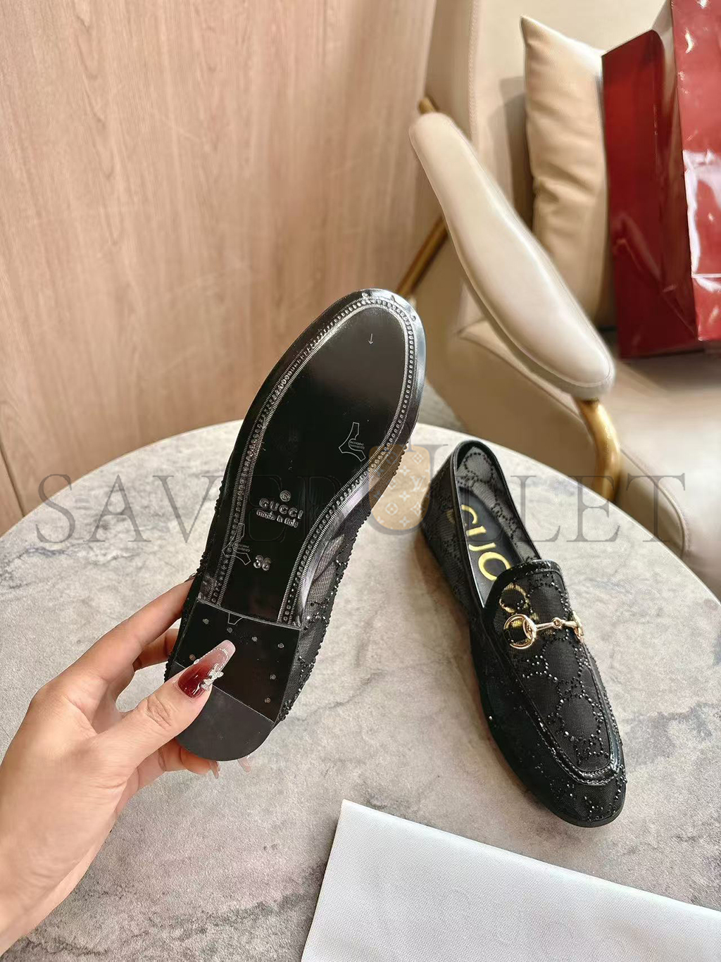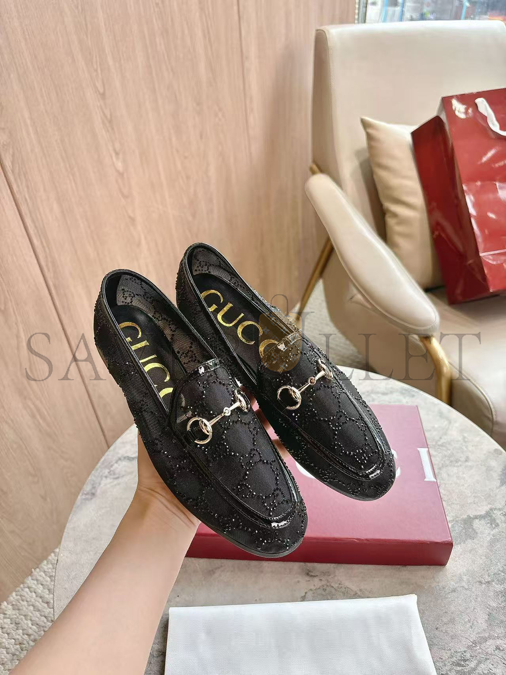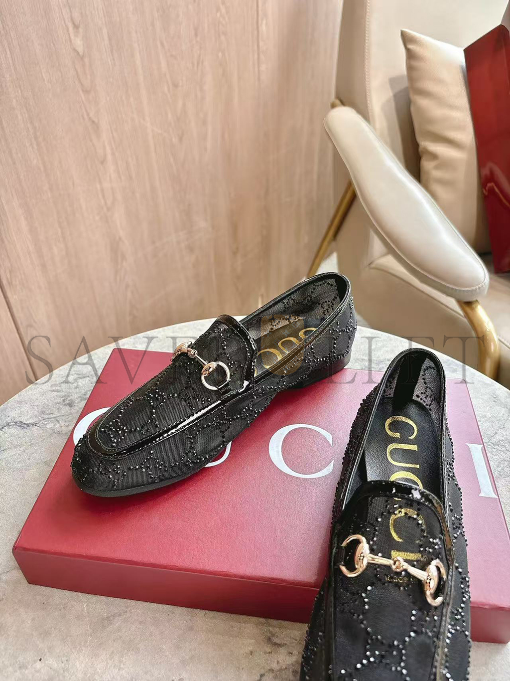 GUCCI WOMEN'S GG CRYSTAL GUCCI JORDAAN LOAFER 835483