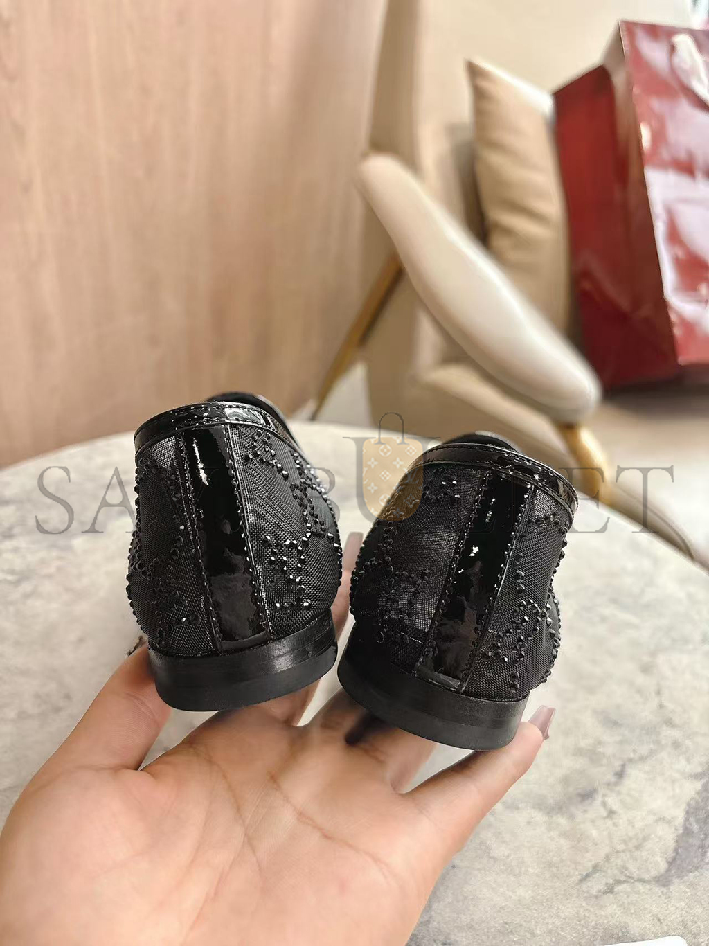 Black GG mesh with crystals