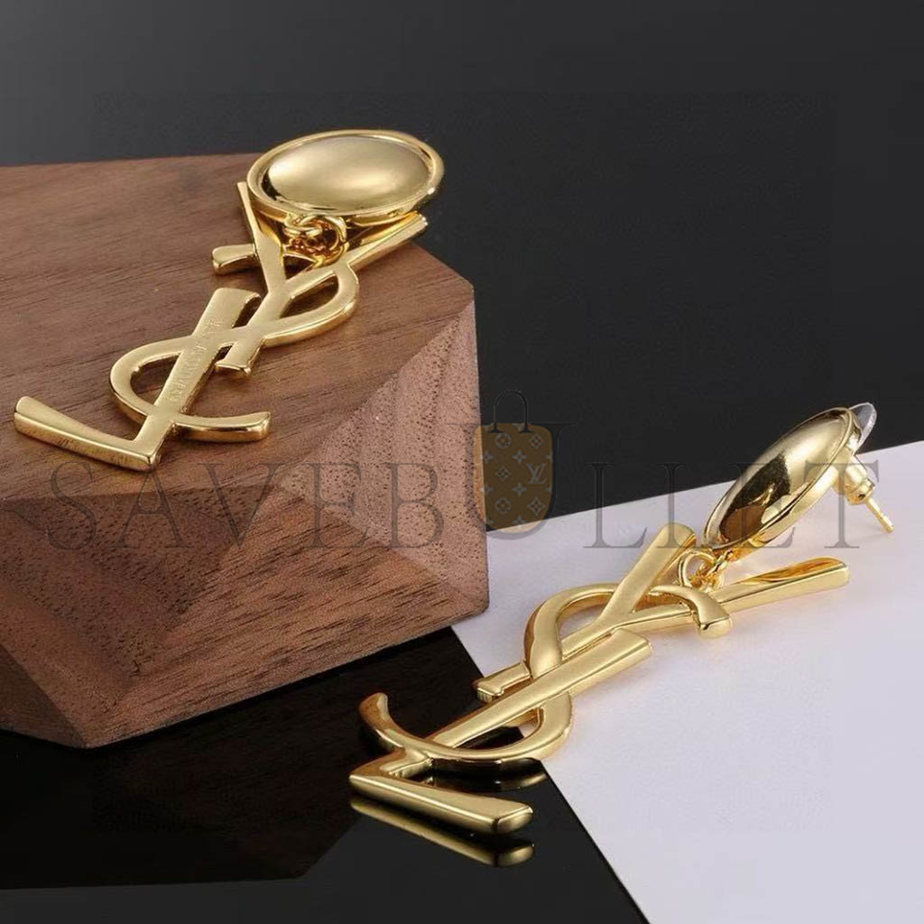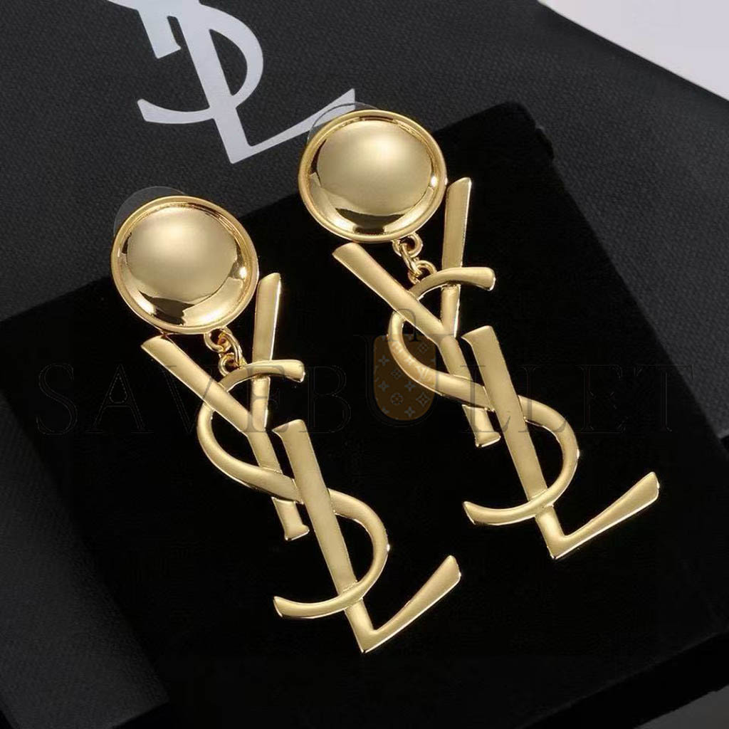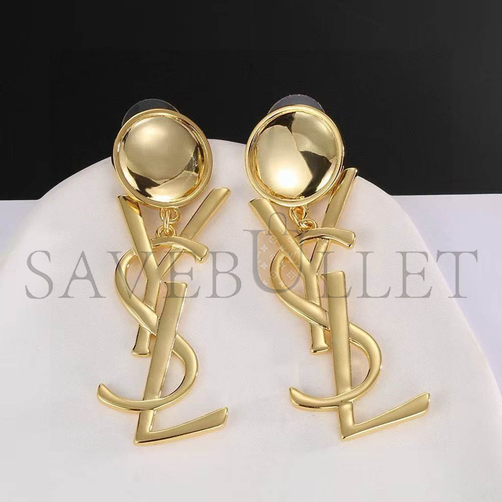 YSL LOGO DROP EARRINGS GOLD TONE