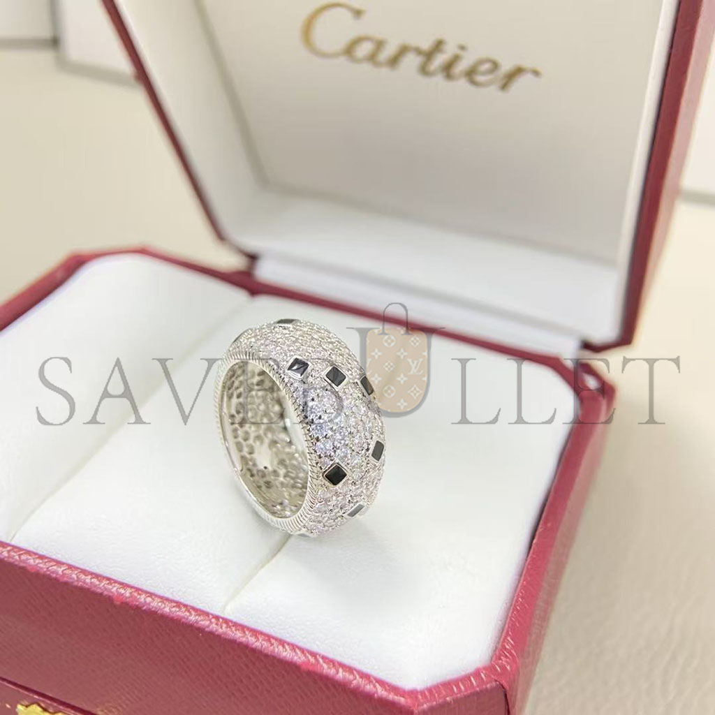CARTIER SILVER-PLATED GOLD AND BLACK ENAMEL LEOPARD PRINT RING FOR WOMEN, EXUDING A SOPHISTICATED AND LUXURIOUS FEEL. WIDE VERSION 456783