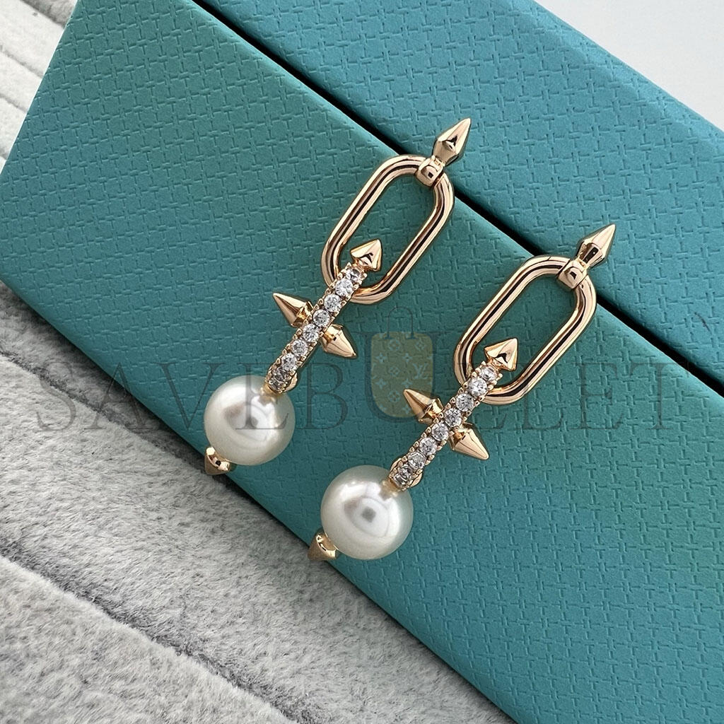 TIFFANY & CO. TITAN COLLECTION PHARRELL WILLIAMS PEARL EARRINGS, ROSE GOLD WITH DIAMONDS 73122100