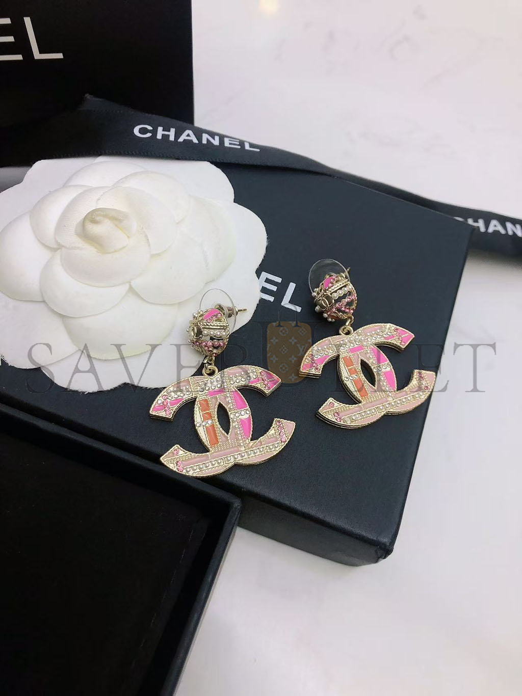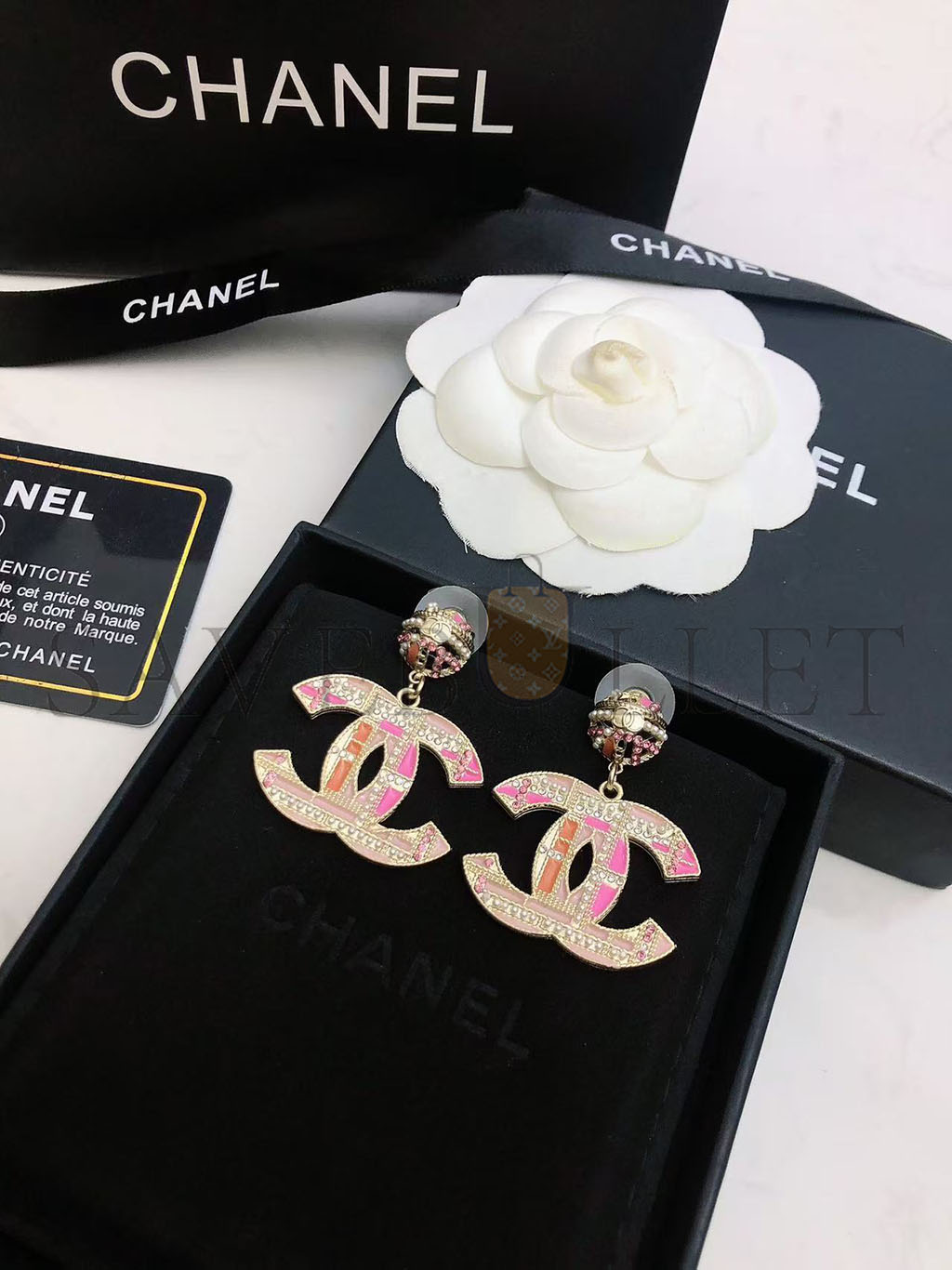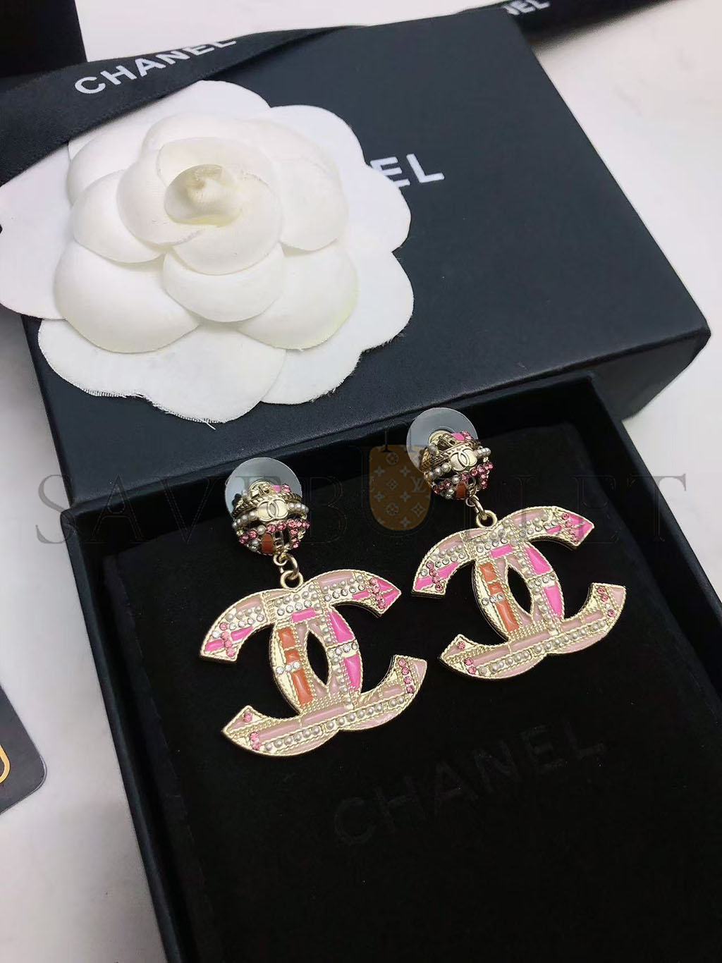 CHANEL PINK CC PEADS STUDS DROP EARRINGS AB2490