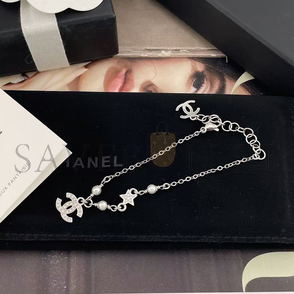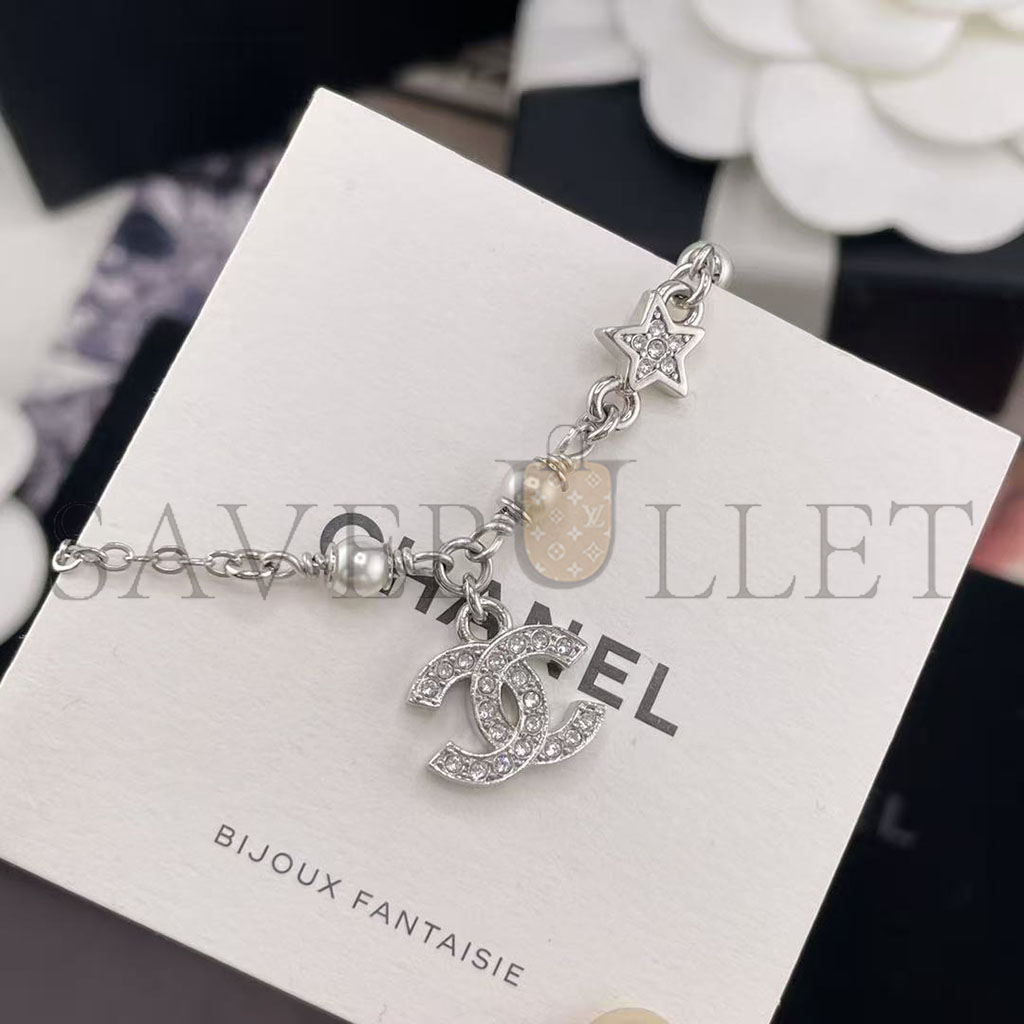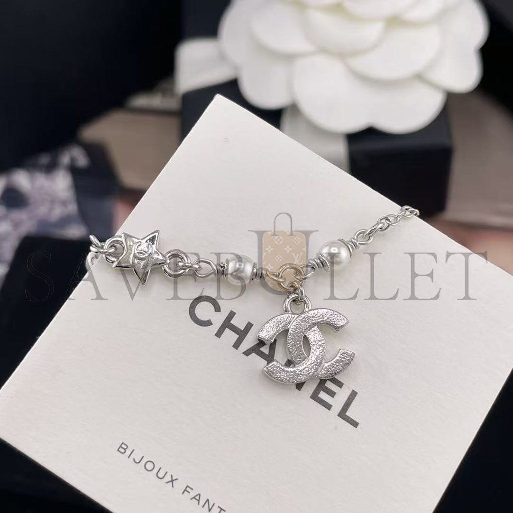 CHANEL CC LOGO PEARL STAR SILVER BRACELET ABF745