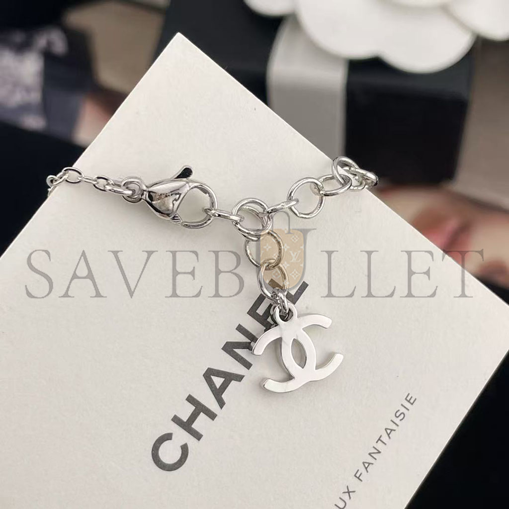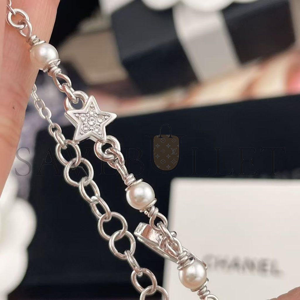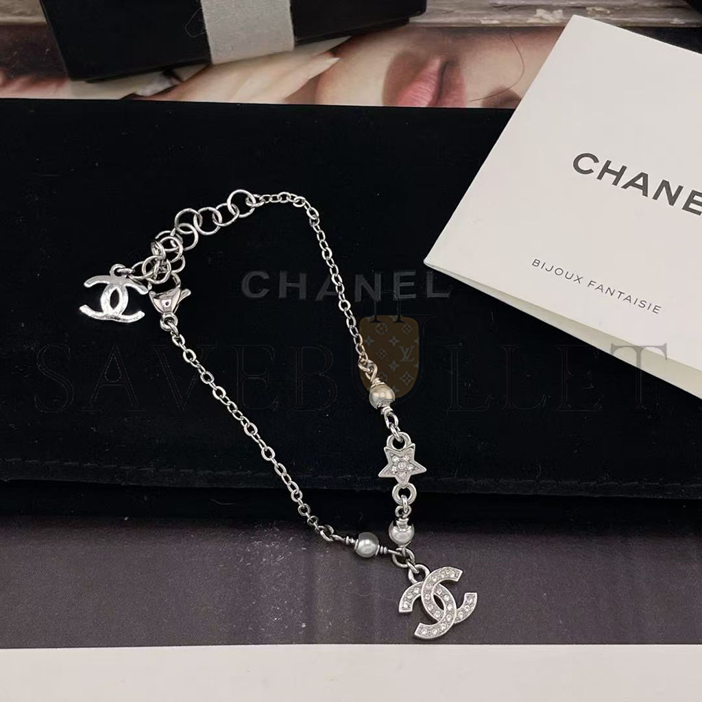 CHANEL CC LOGO PEARL STAR SILVER BRACELET ABF745