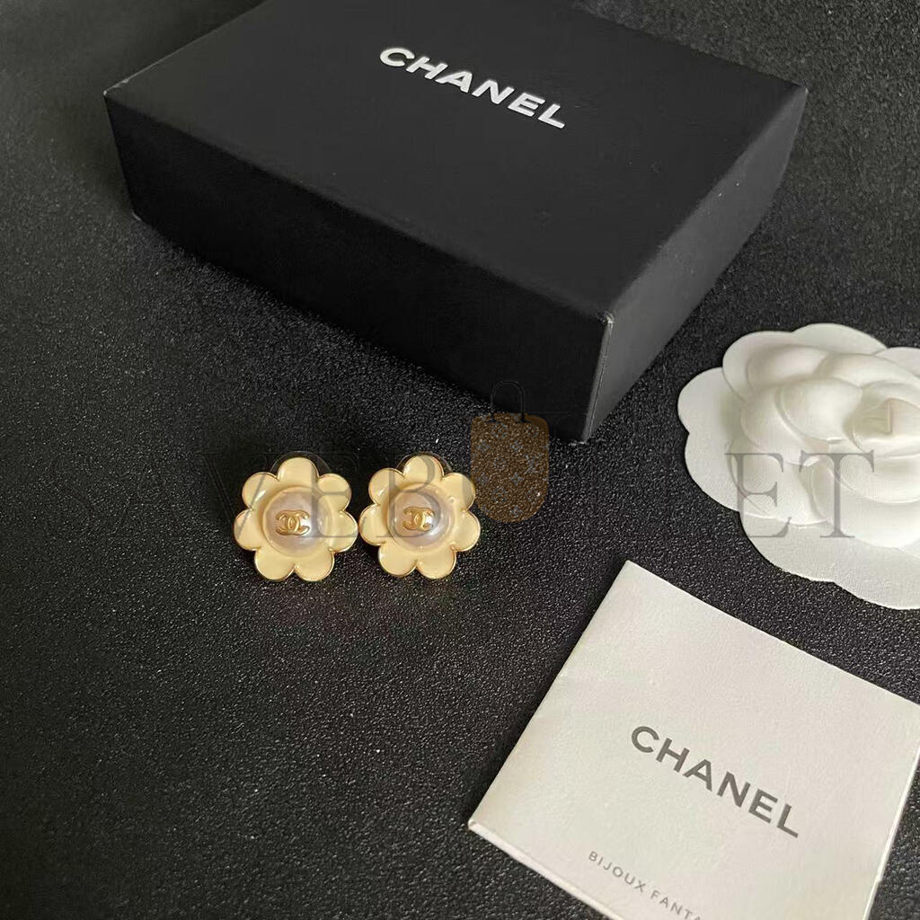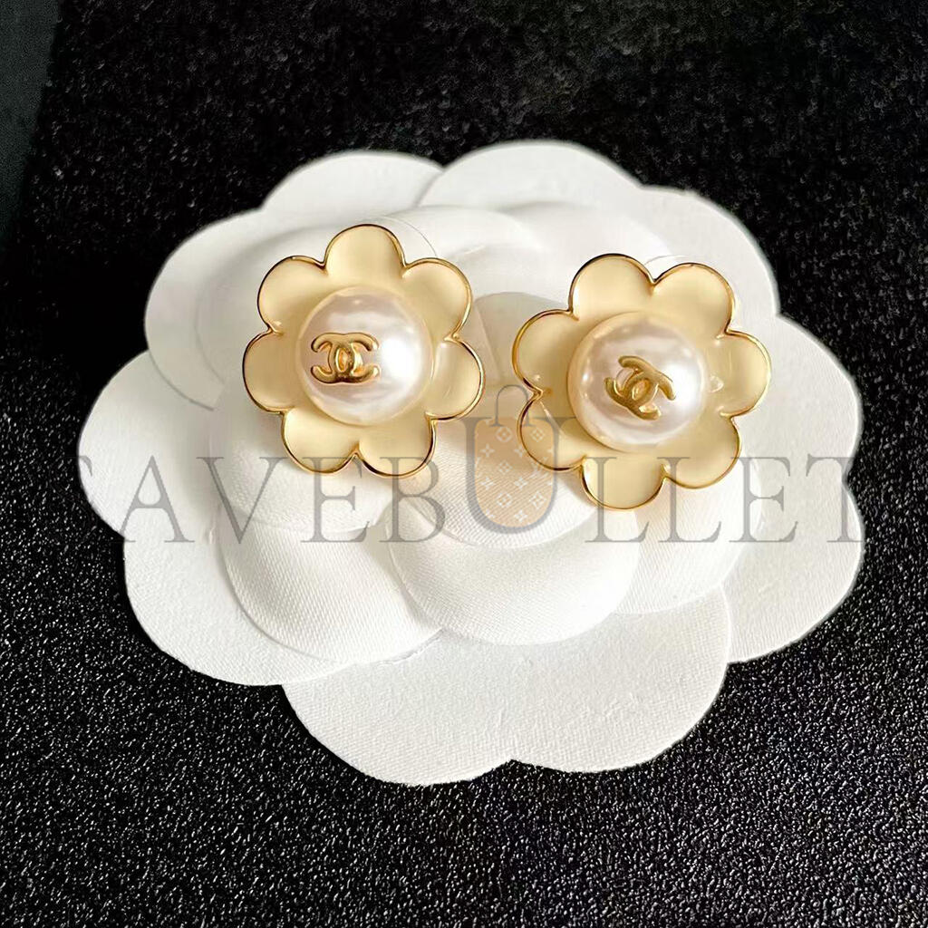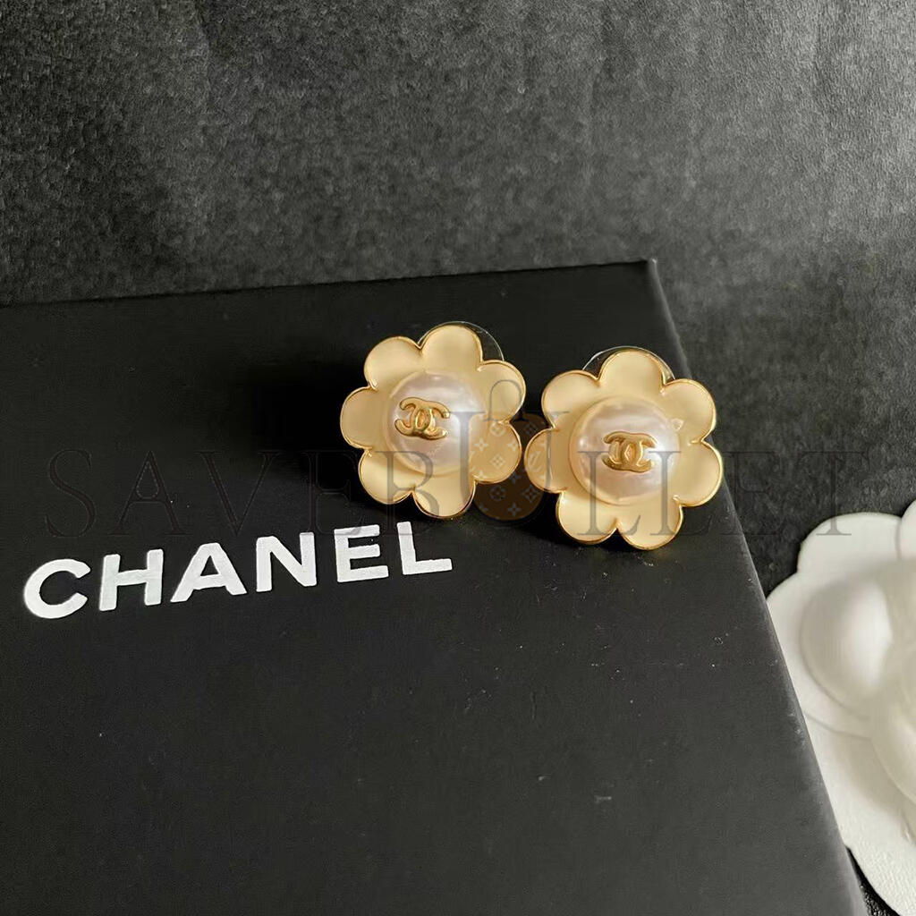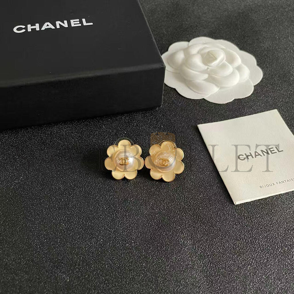 CHANEL CAMELLIA PEARL EARRINGS