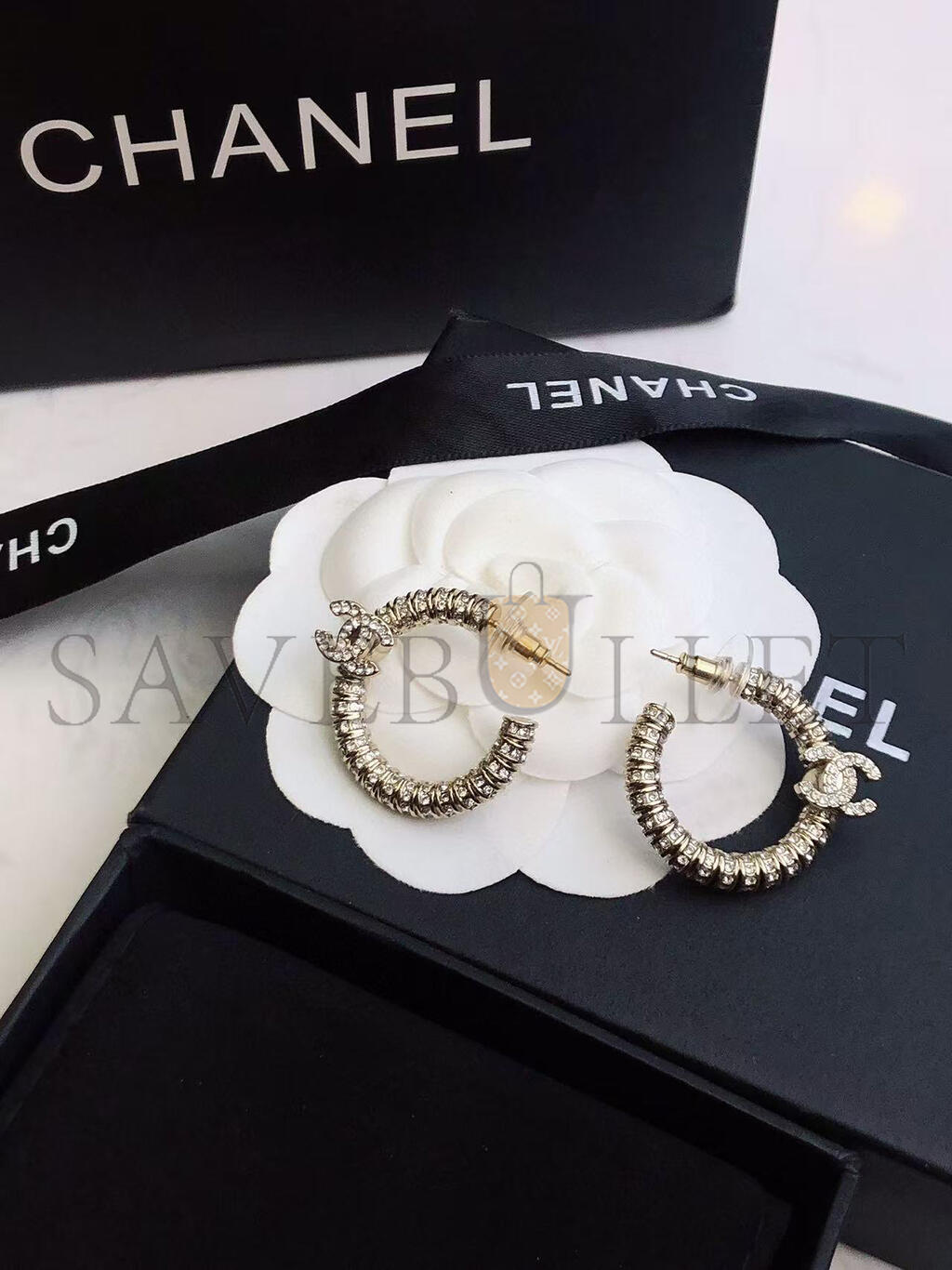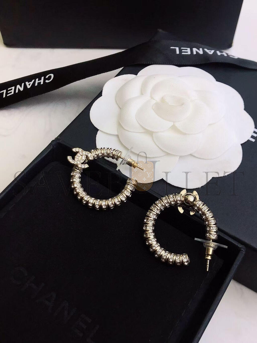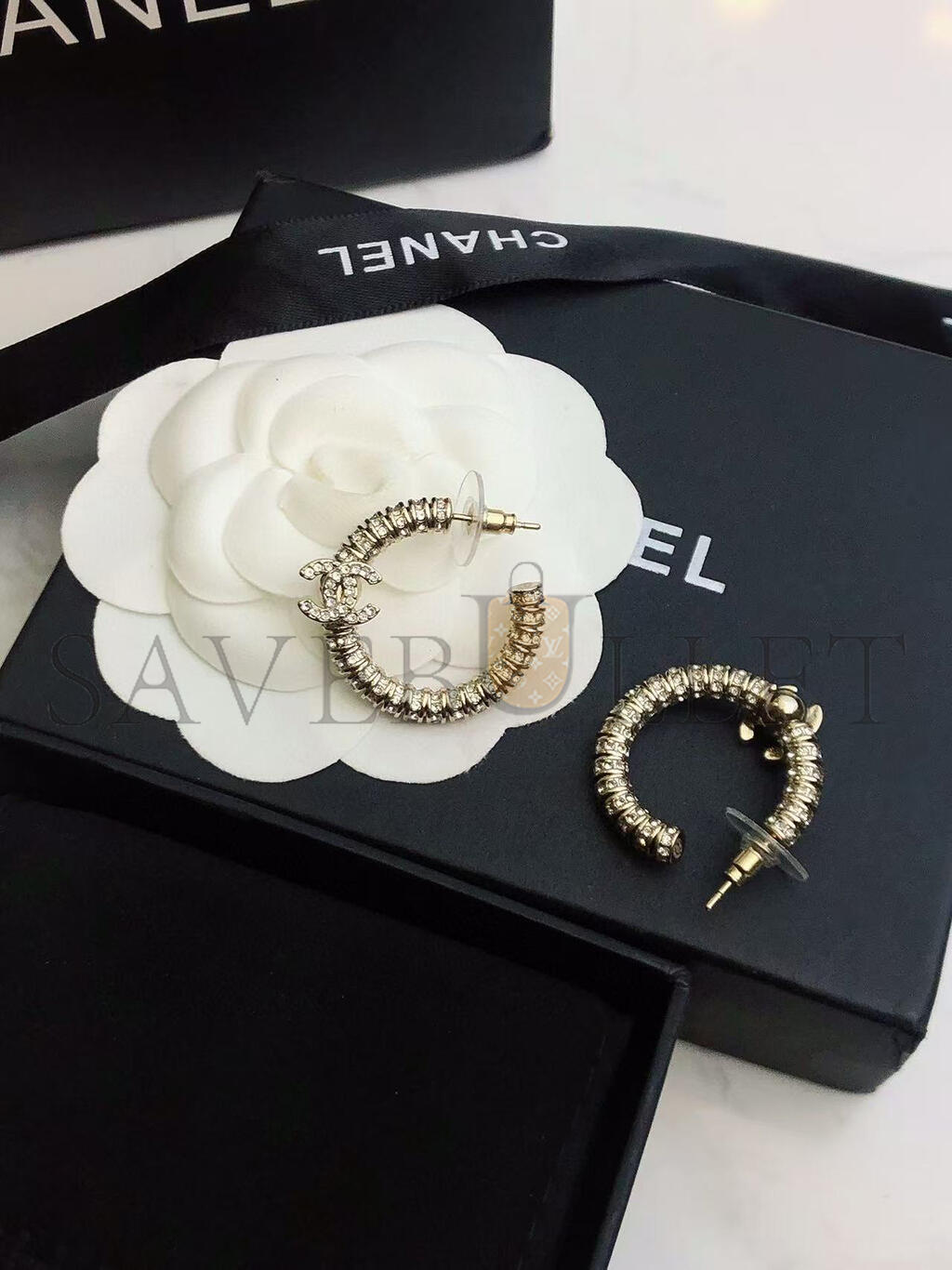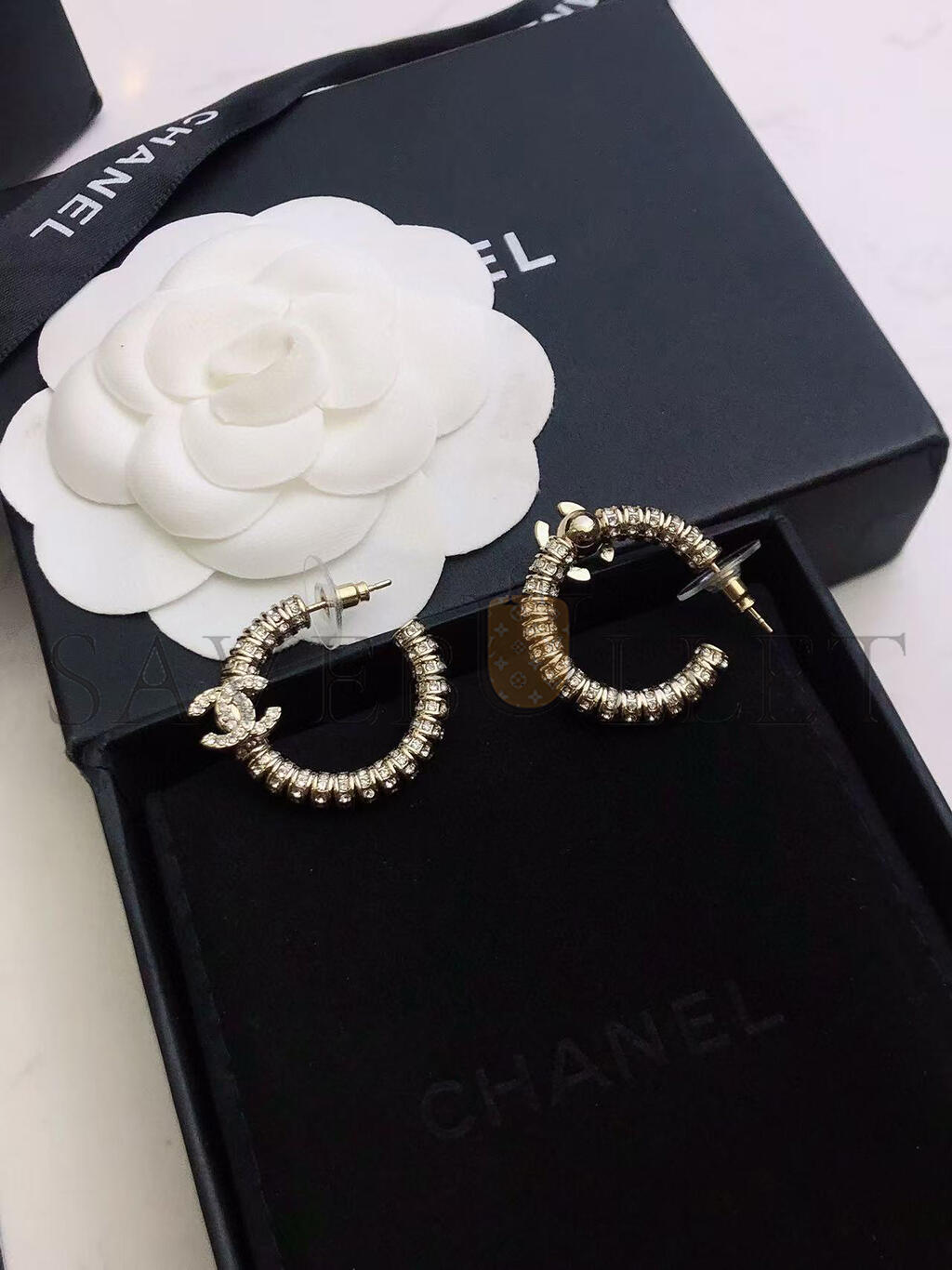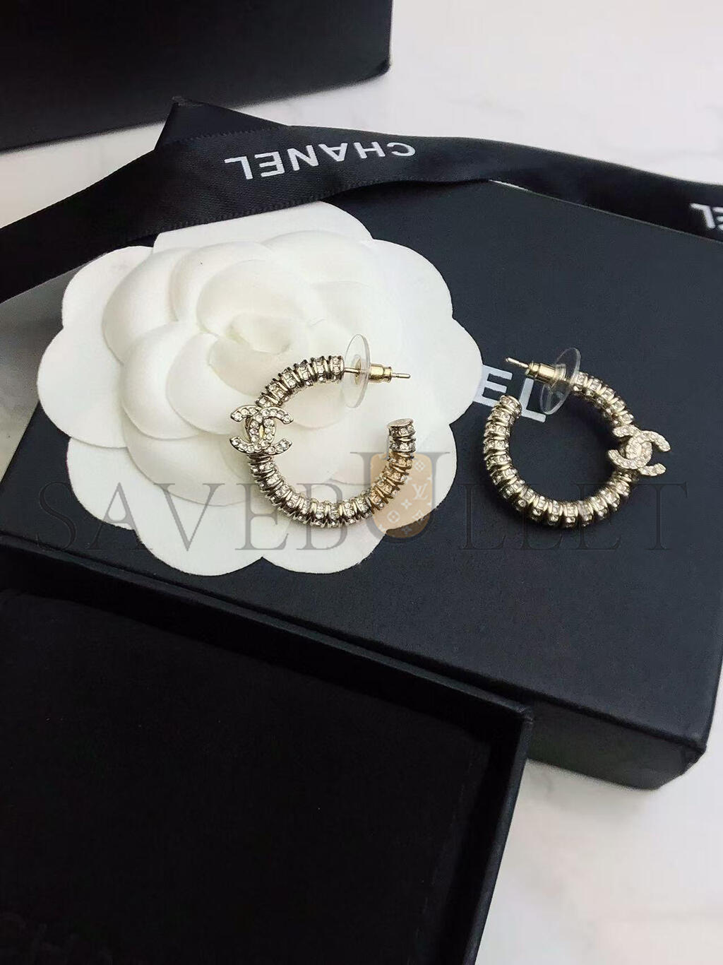 CHANEL GOLD-TONE METAL AND CRYSTAL CC LOGO HOOP EARRINGS