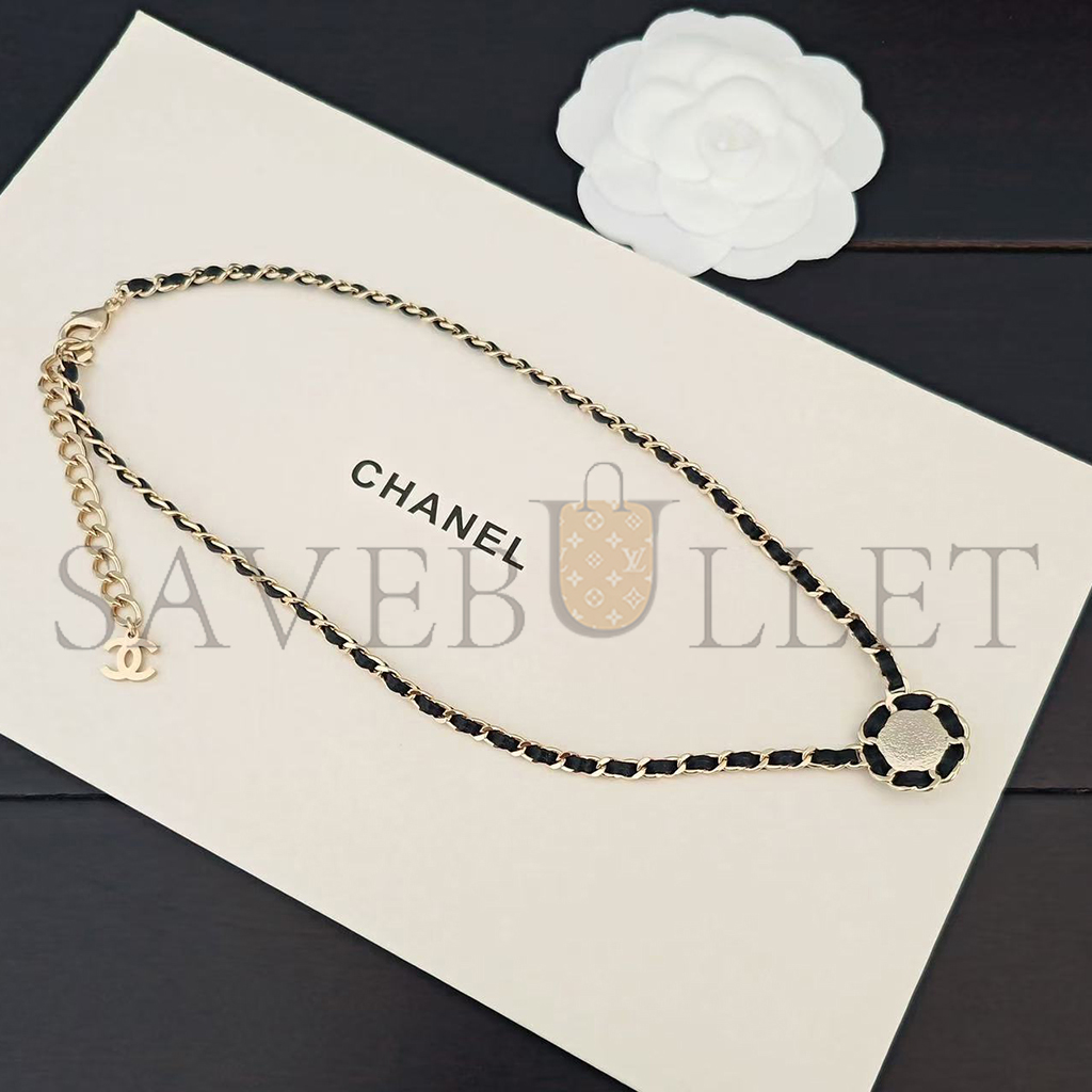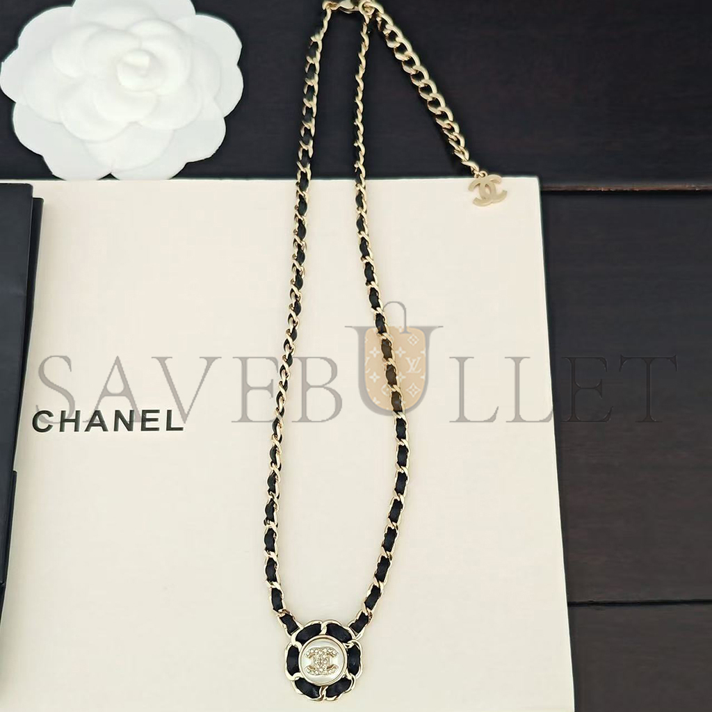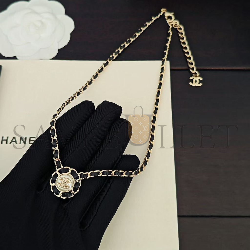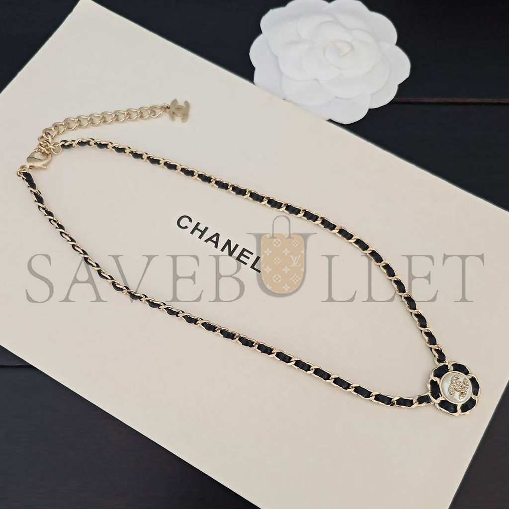 CHANEL NECKLACE METAL, LAMBSKIN, RESIN & DIAMANTÉ GOLD, BLACK, PEARLY WHITE & CRYSTAL ABG560