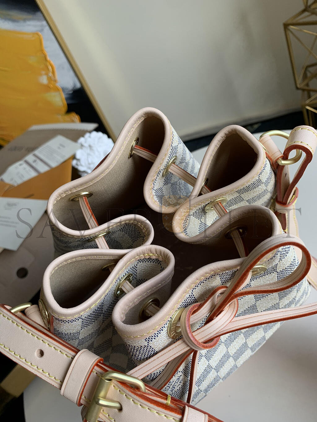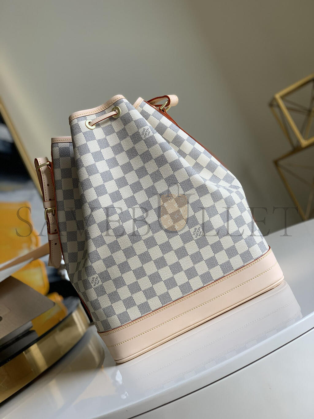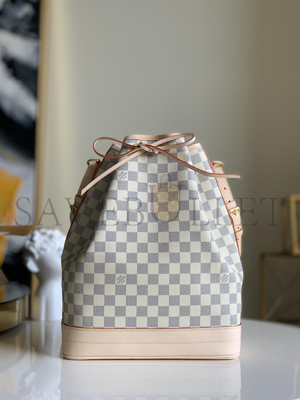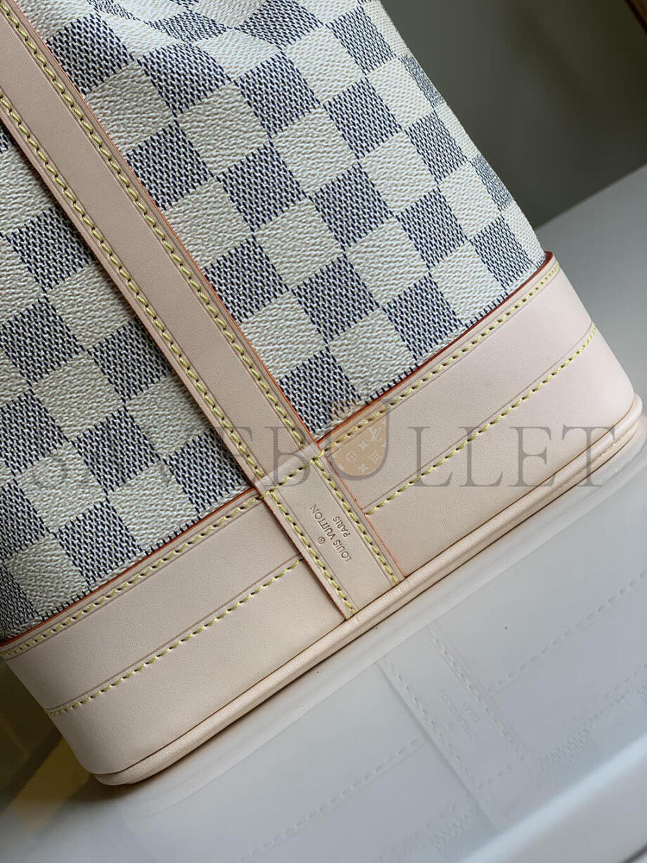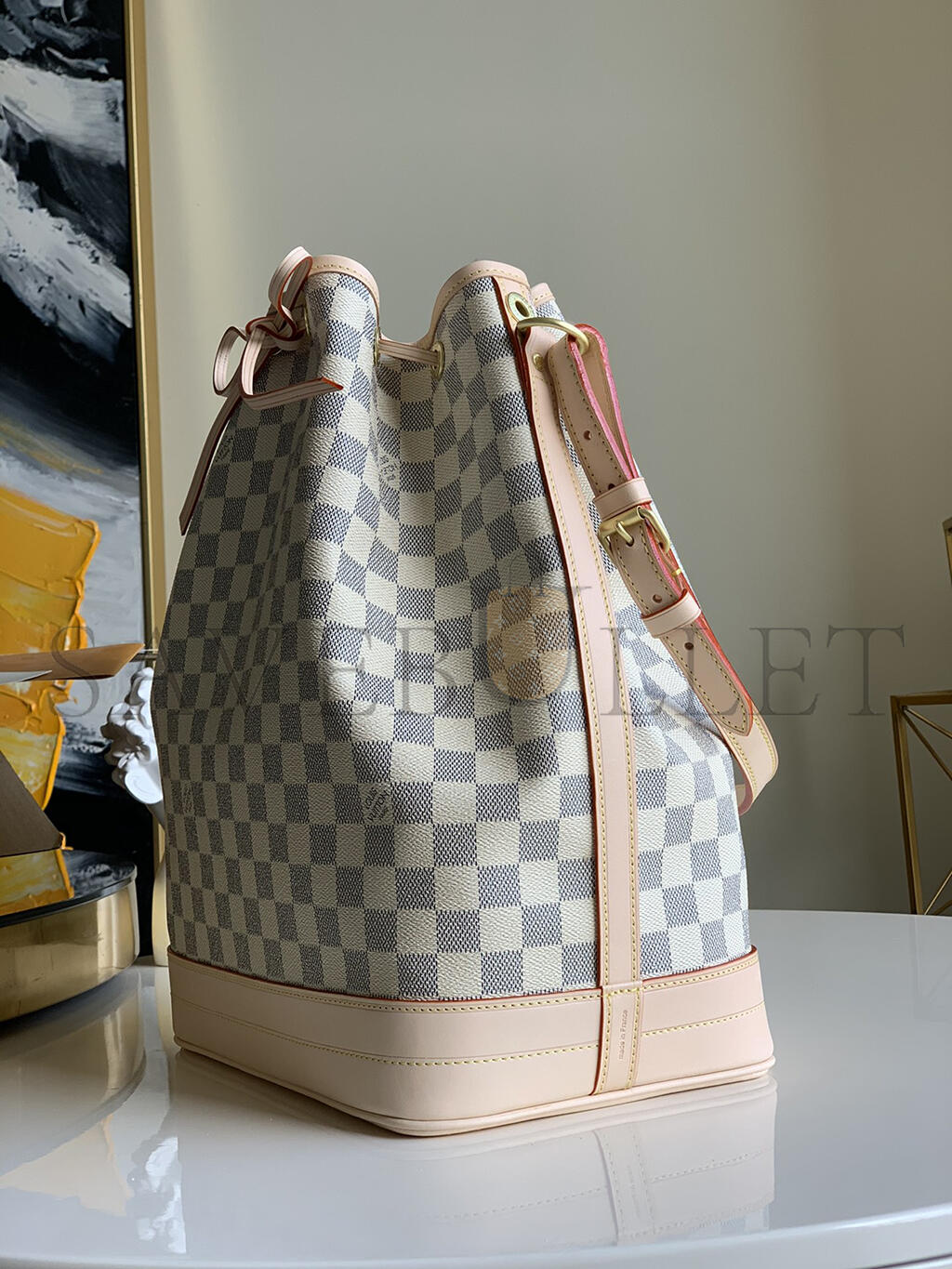 The Noé bucket bag harks back to a design from 1932. A Champagne producer asked Gaston-Louis Vuitton to develop a sturdy, stylish bag in which he could transport five bottles of bubbly. This model in body-friendly Damier Azur canvas retains key features of the original – the iconic shape, generous volume, drawstring closure – but is made for modern life. The leather strap adjusts for comfortable shoulder wear.The Noé bucket bag harks back to a design from 1932. A Champagne producer asked Gaston-Louis Vuitton to develop a sturdy, stylish bag in which he could transport five bottles of bubbly. This model in body-friendly Damier Azur canvas retains key features of the original – the iconic shape, generous volume, drawstring closure – but is made for modern life. The leather strap adjusts for comfortable shoulder wear.