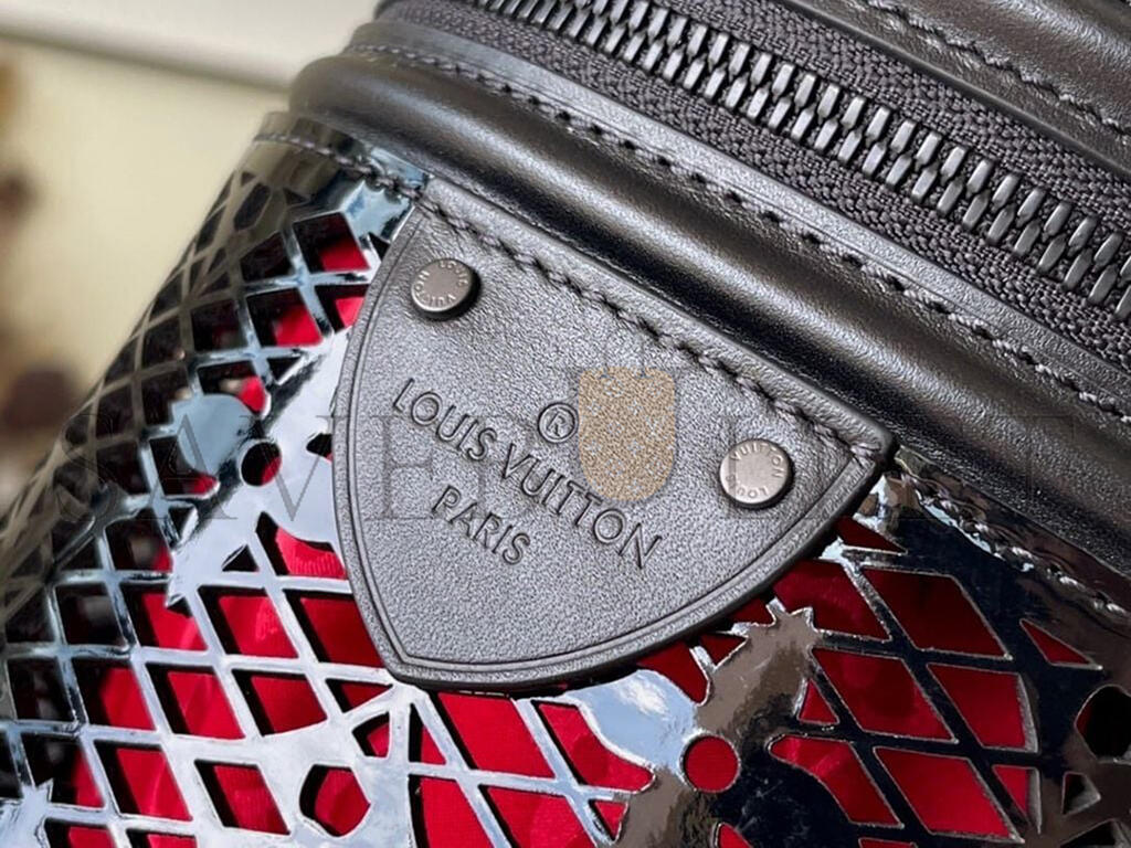 Inspired by the Louis Vuitton Cannes beauty case from the 1990s, the Cannes handbag will turn heads in new Monogram Lace leather. With a Monogram pattern laser cut into the black patent calfskin, the bag almost looks as if were made from delicate lace. A zip-around top opening gives easy access what’s inside.