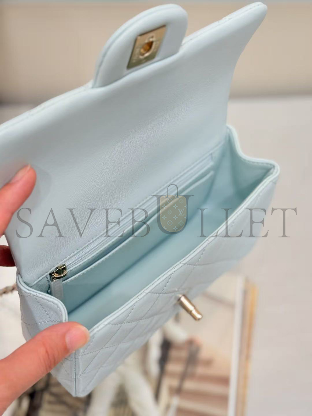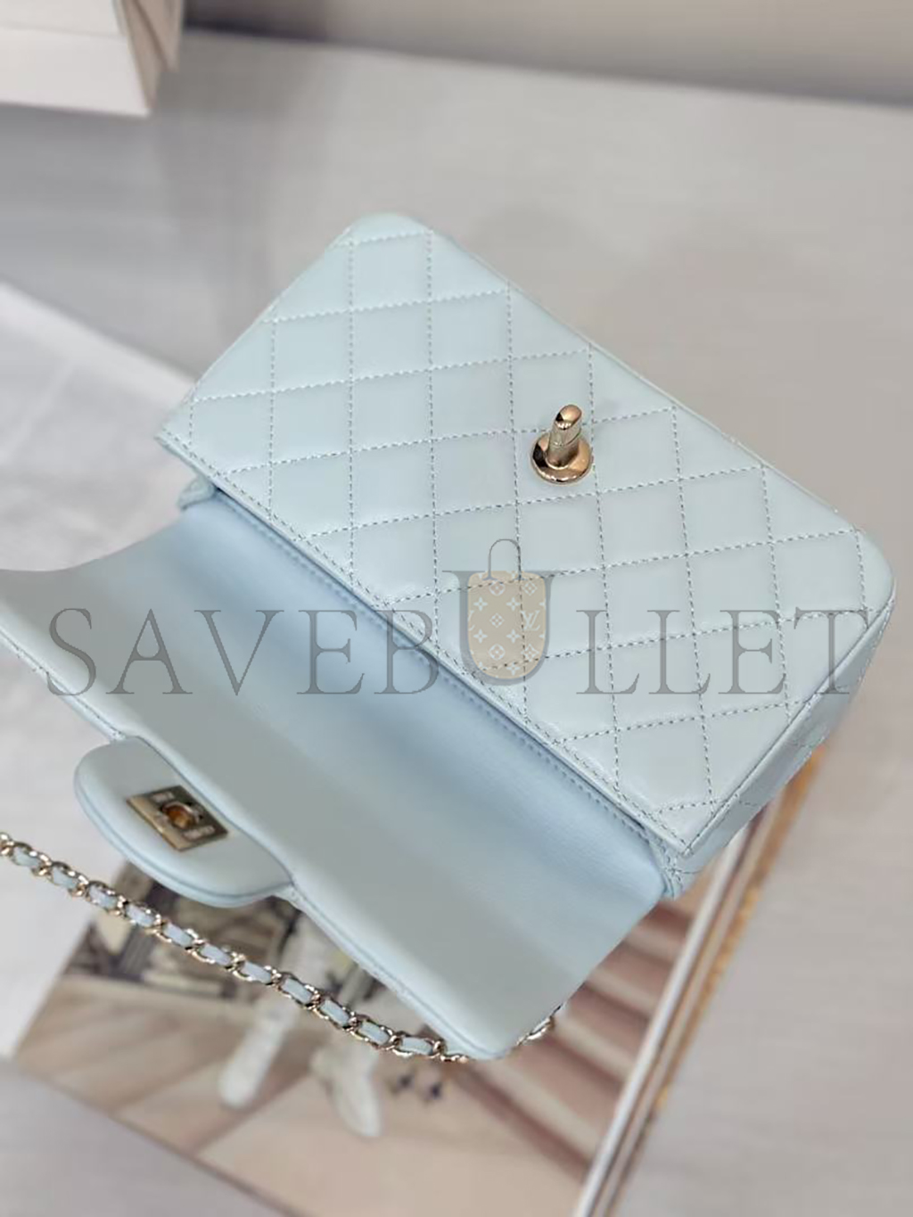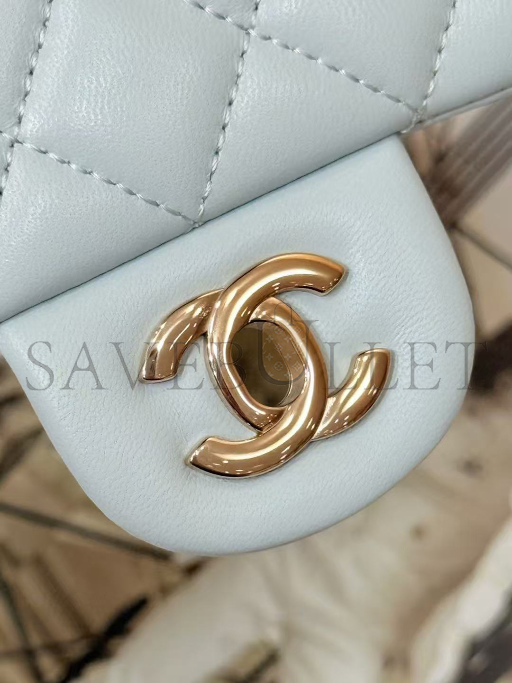 CHANEL MINI RECTANGULAR FLAP WITH TOP HANDLE LAMBSKIN LIGHT GOLD HARDWARE  (20*13*6cm)