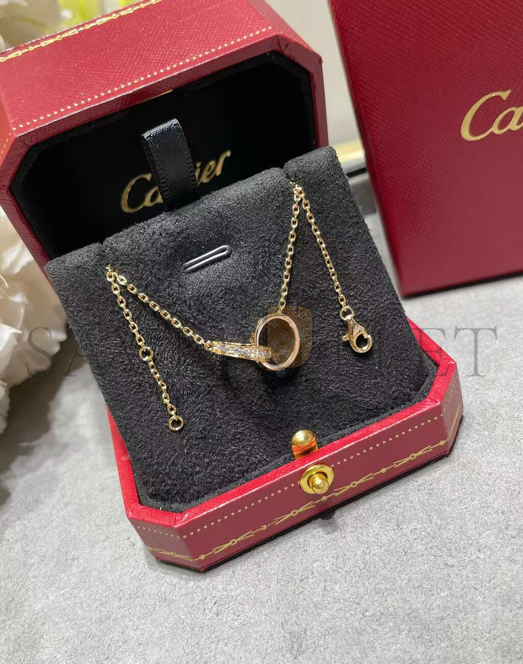 CARTIER LOVE BRACELET, ON CHAIN, HALF-PAVED REF. B6084200