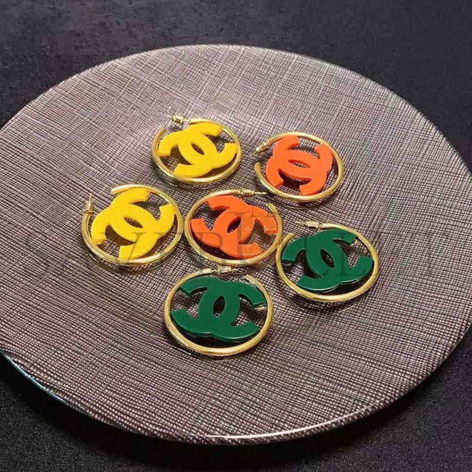 CHANEL DOUBLE C ACRYLIC LARGE HOOP EARRINGS