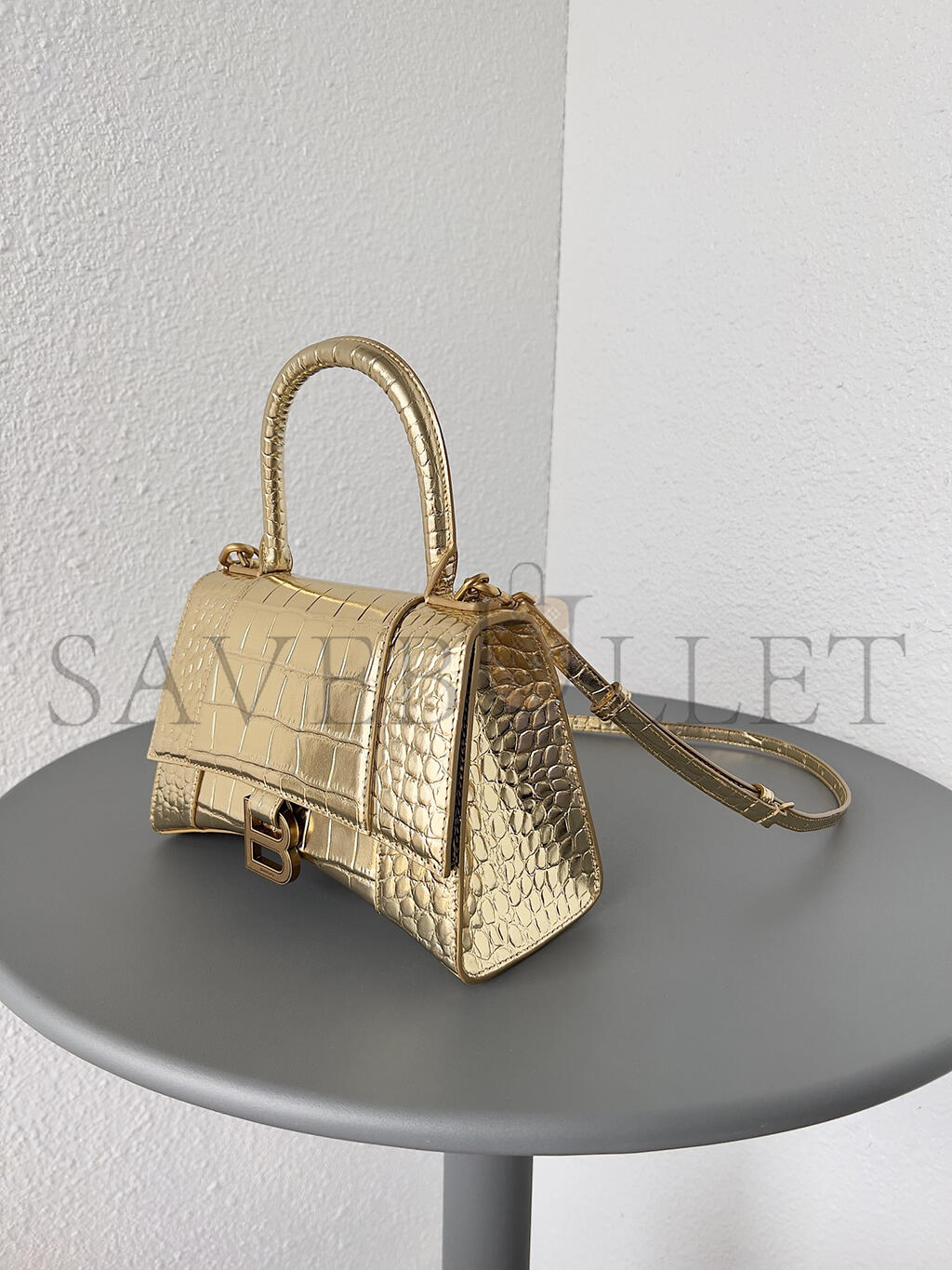 BALENCIAGA WOMEN'S HOURGLASS HANDBAG SMALL IN GOLD 5935461LRGN7000 (22.9*15*9.9cm)