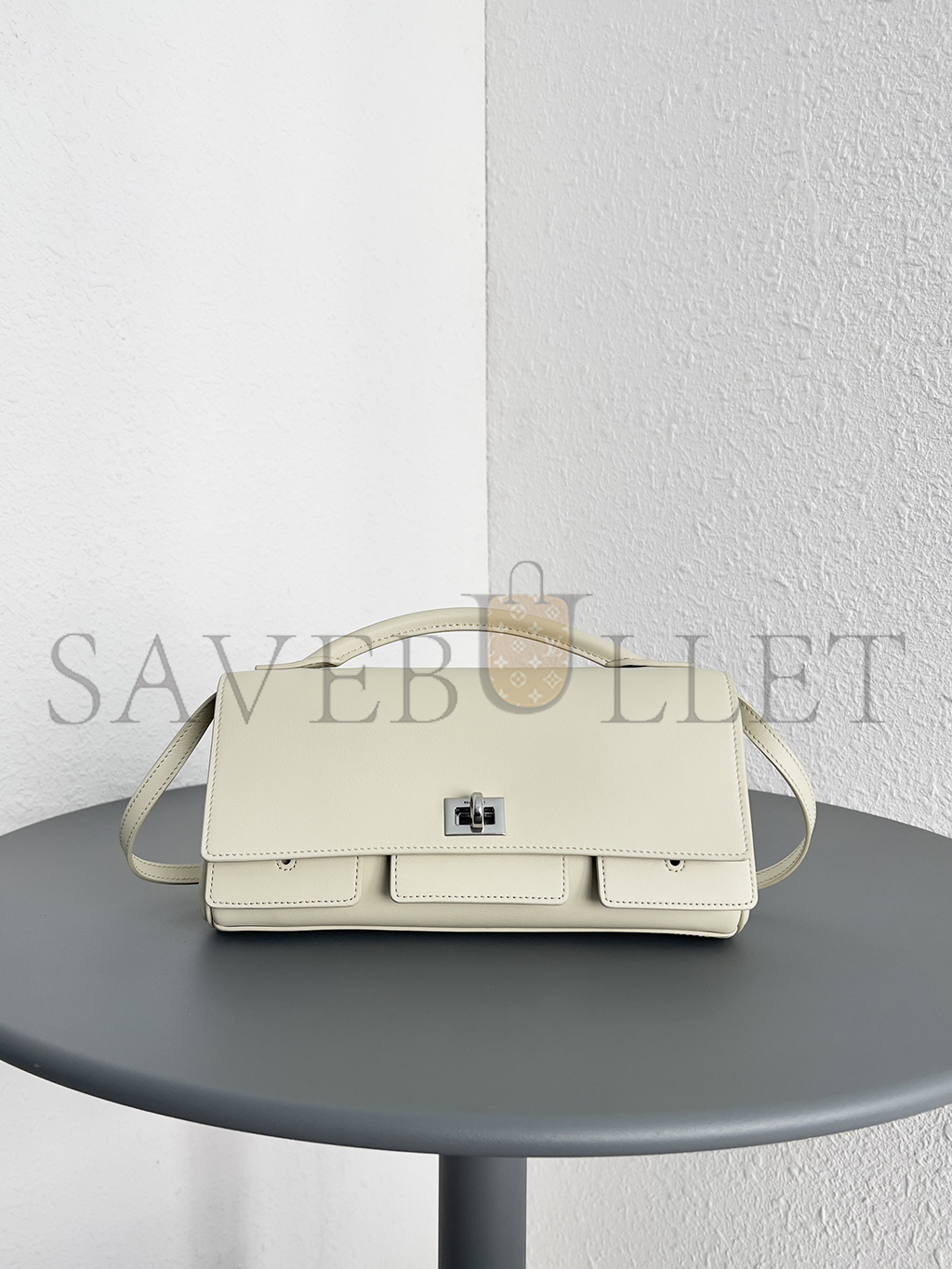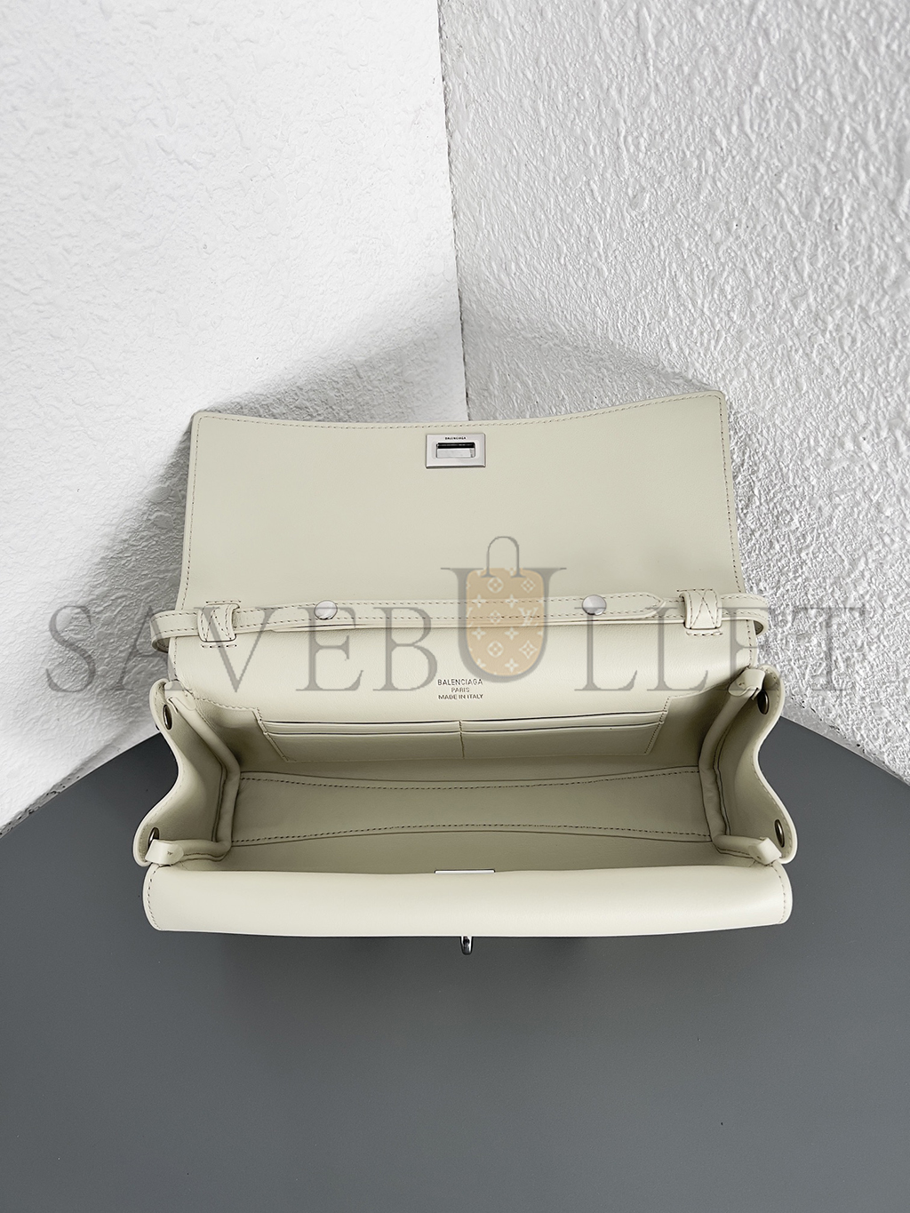 BALENCIAGA WOMEN'S BEL AIR CLUTCH ON STRAP SMALL IN SOY 8349432ABAW3910 (26.9*13.9*5.3cm)