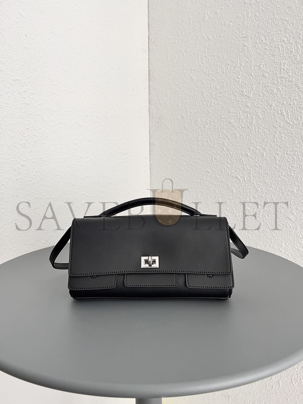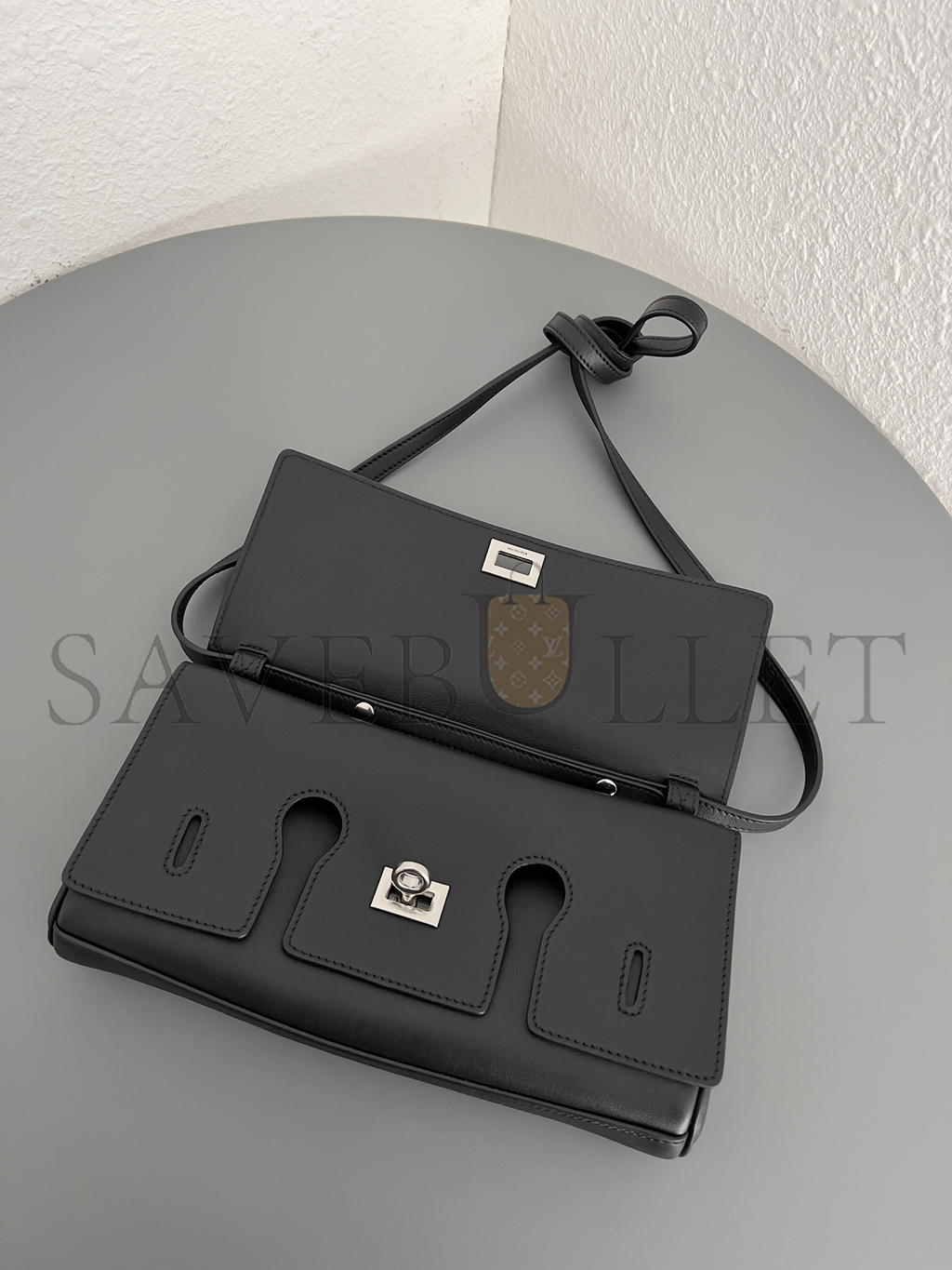 BALENCIAGA WOMEN'S BEL AIR CLUTCH ON STRAP SMALL IN BLACK 8349432ABAV7036 (26.9*13.9*5.3cm)